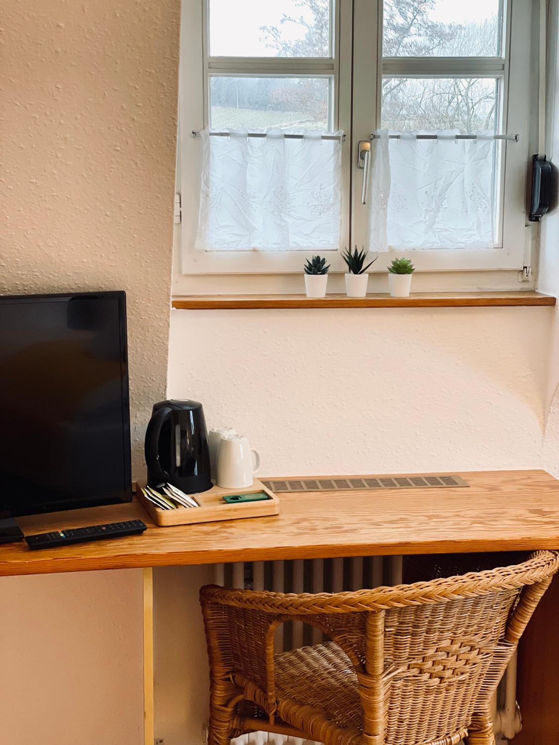 The rooms at Hotel & Restaurant Grüner Baum Merzhausen offer a perfect blend of modern amenities and traditional wooden furnishings, providing a cozy and charming atmosphere for guests to relax in.