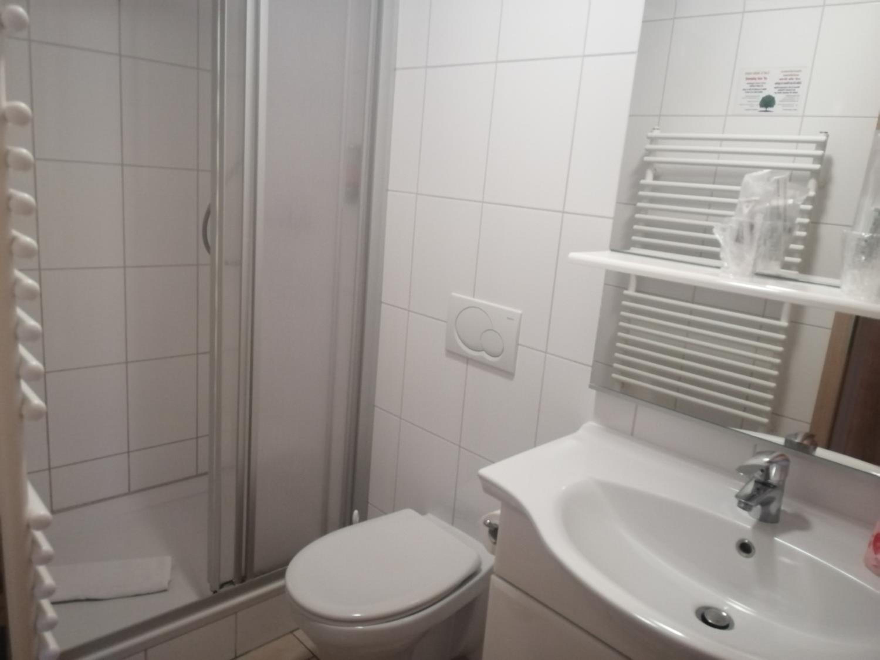 Die Beinfreiheit auf dem WC ist sehr eingeschränkt. Bei 1,8 m Görpergröße sind die Knie am Heizkörper.