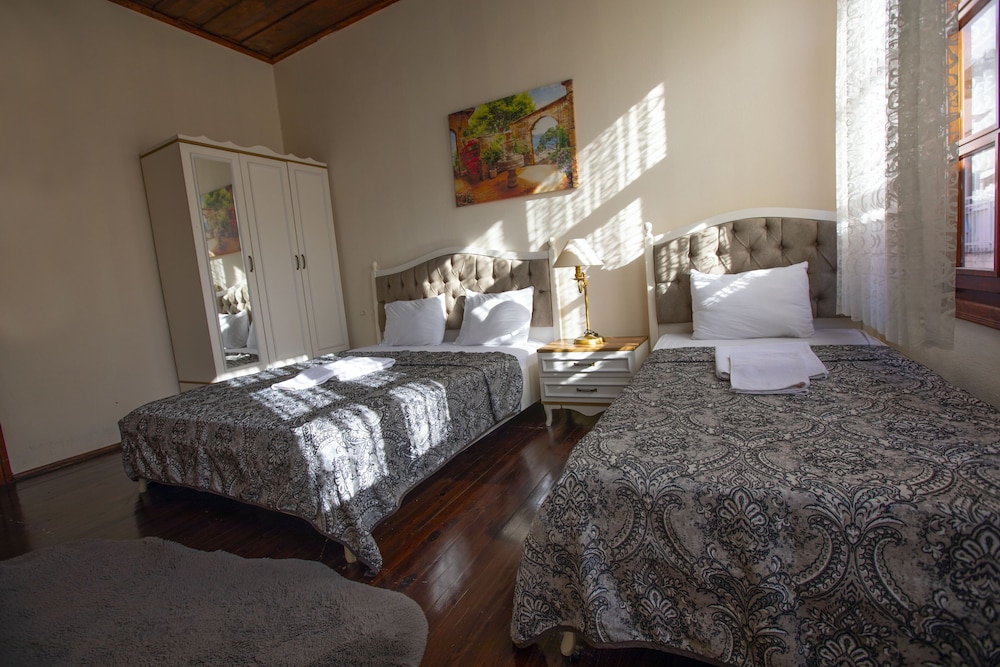 Guzel bir konak. İcinde masalari olan bir alani var biz disardan yemek soyleyip orada yedik.Calisan abiler oldukca guleryuzlu ve yardimseverler. Ancak temizlik acisindan da bir o kadar kotu. Carsaflar pisti ve her yerde killar vardi. Havlu serip yatmak zorunda kaldim. Merkeze yakin degil direkt merkezde. Arka sokaga ciktiginiz an anna caddeye cikiyorsunuz. Fiyati baya ucuz oldugu icin bazi seyler gormezden gelinebilirdi. Ancak hijyenin fiyatla alakali oldugunu dusunmuyorum. Temel hijyeni saglayamayacaksaniz boyle bir hizmet vermeyin lutfen. İnsaniz biz de sonucta saksı degiliz.