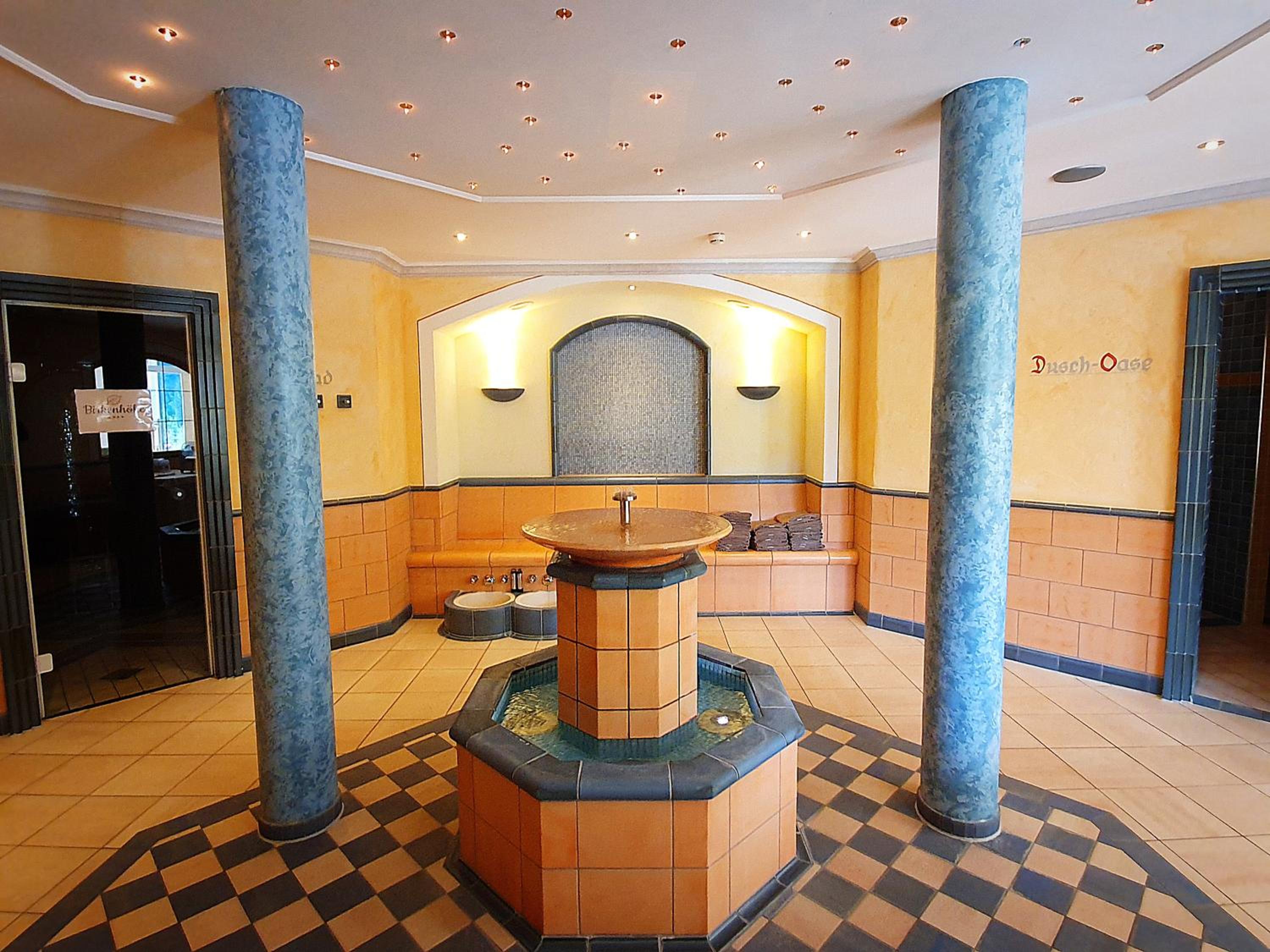 Hotel Birkenhöhe boasts a 650 m² large spa area with an indoor pool, bio sauna, Finnish sauna, and steam bath, all complimentary for guests. The fitness room, relaxation areas, and terrace offer stunning mountain views, providing the perfect setting for relaxation.