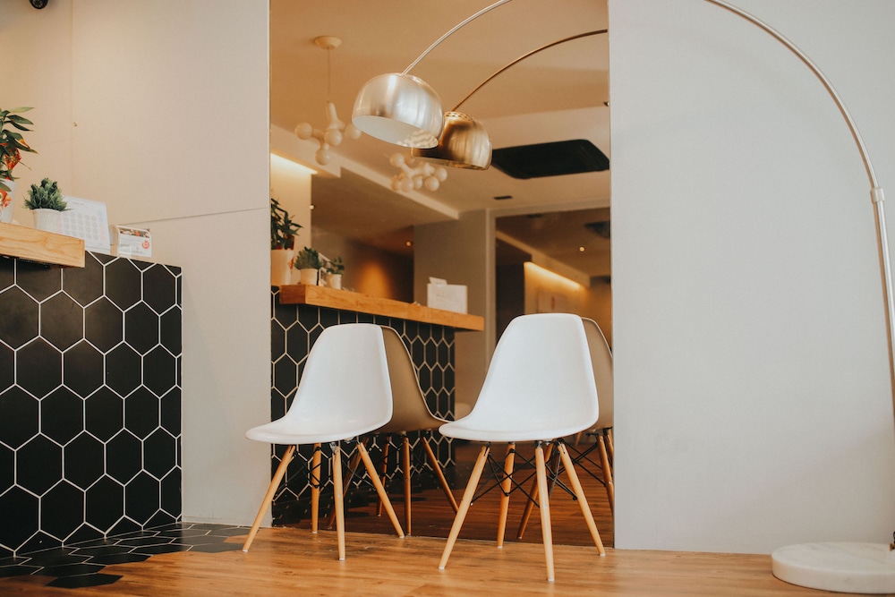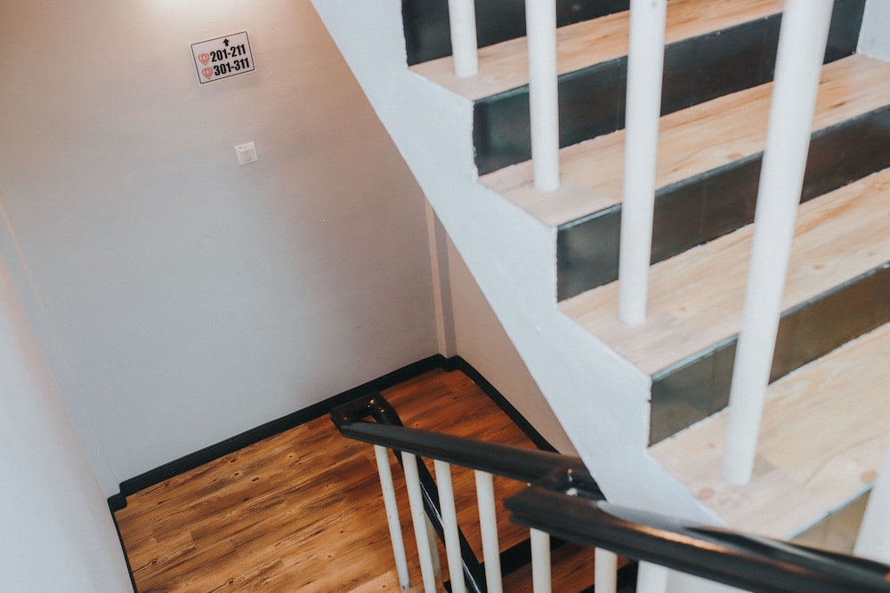 尚未完工的舊翻新旅店,電視不能看、網路在房間不能用、感應門卡故障要用鑰匙開門、公共空間幾天都沒清掃。沒有電梯,房間沒有窗戶,浴室牆面與全部地板都是只在水泥上刷油漆,冷氣會滴水......大概只有地段不錯吧。