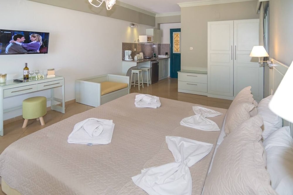 Feel at home in the air-conditioned rooms with kitchenettes, private balconies, complimentary Wi-Fi, and flat-screen TVs.