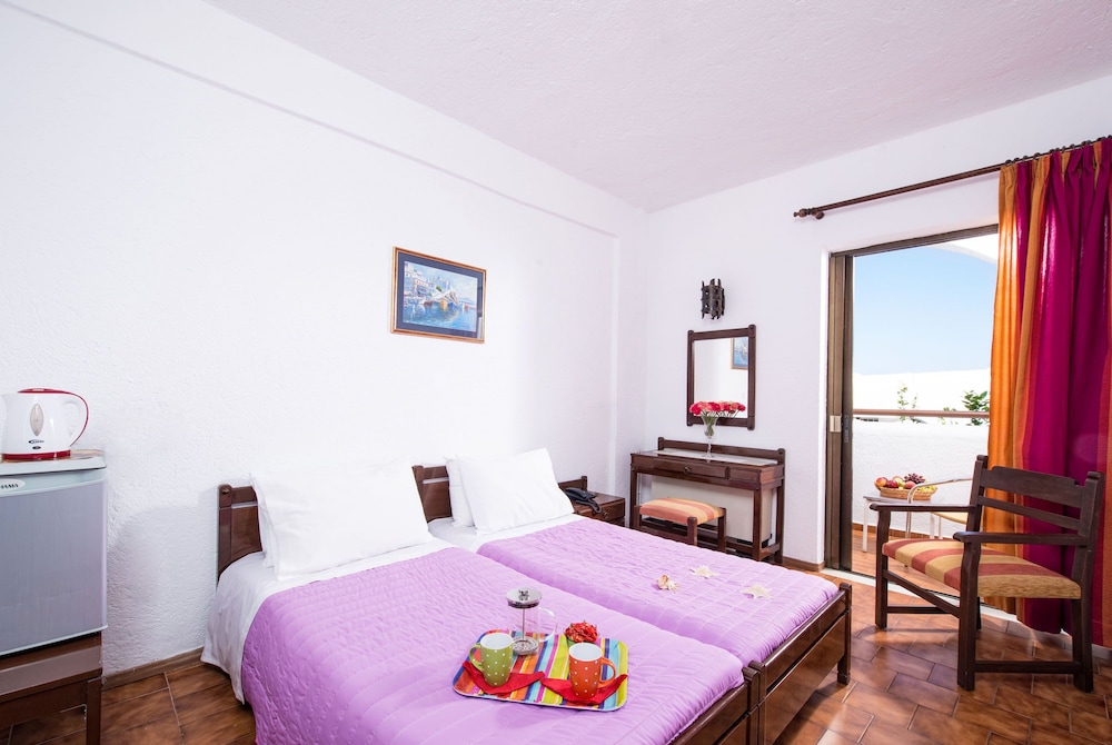 Вернулись вчера с Крита. Проживали в этом отеле 11 дней. Честно говоря в таком безобразном отеле были впервые. Планировали только ночевать, т.к. брали машину на весь период. Но и это оказалось проблематично. В так называемом душе я так и не приспособилась, чтобы можно было нормально помыться. Чтобы пройти к унитазу, надо проделать очень сложные манипуляции. В так называемой ванной комнате постоянно была на полу вода, которой по определению некуда уходить. К концу отдыха мы поняли, что чешемся от постельного белья, то ли стирпют его неизвестно чем, то от качество белья отвратительное. Описала самое ужасное, с остальным ещё можно как то мириться ( завтрак, уборка, местоположение) Отель находится в самом эпицентре всех тусовок, которые затихают только на пару часов в сутках. Вообщем из хороших впечатлений об отеле остались только фото, просмотренные на сайте при выборе отеля.