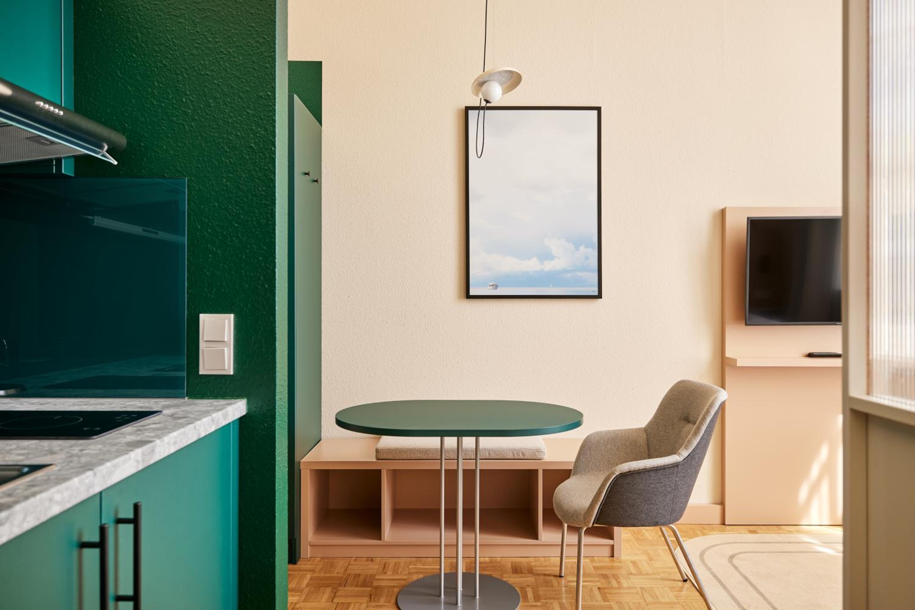 Freshly Furnished Apartments: Gästeresidenz PelikanViertel offers tastefully furnished apartments in various sizes, complete with kitchenettes and optional utensil provisions.