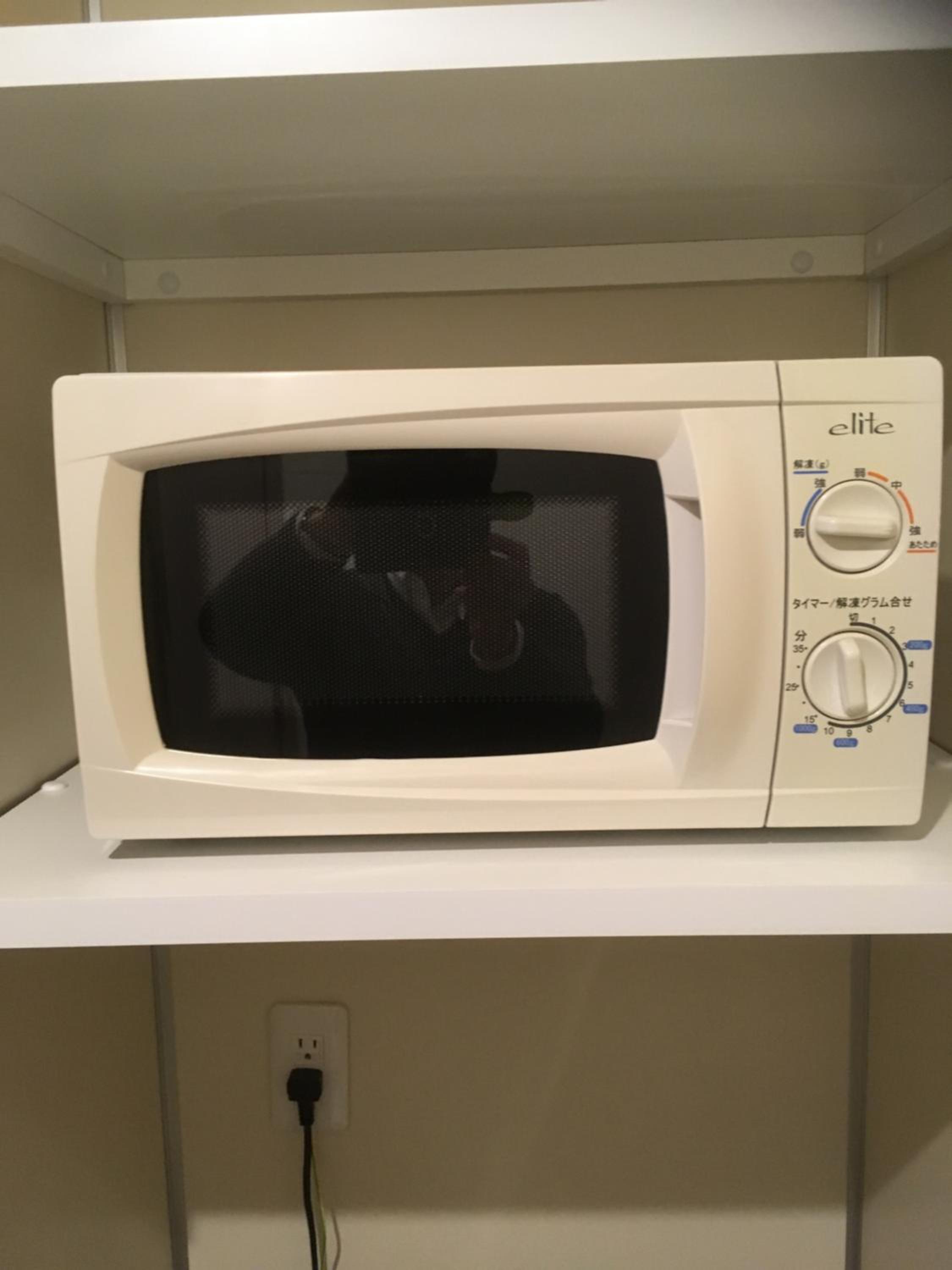 各部屋に古いタイプだが電子レンジがある
