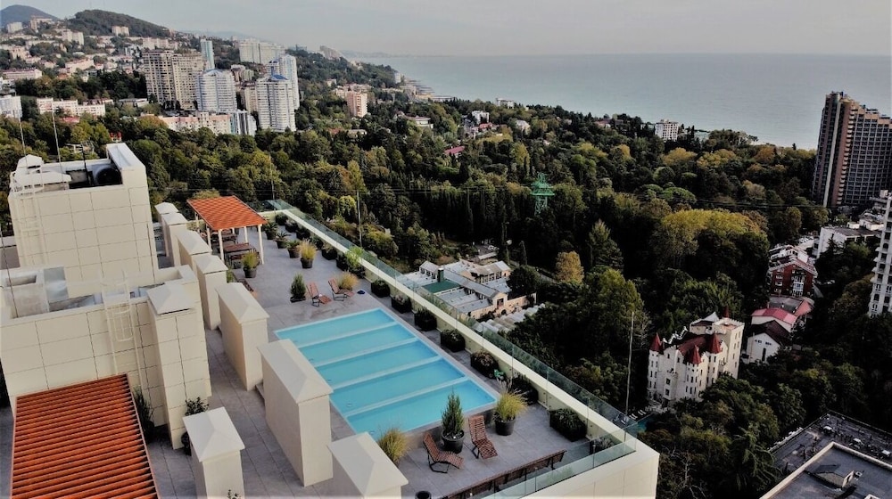 Enjoy the outdoor pool or lounge on the private beach, with complimentary Wi-Fi to stay connected. Benefit from concierge services, continental breakfast, and an array of nearby attractions including Sochi Arboretum and Moorish Gazebo.