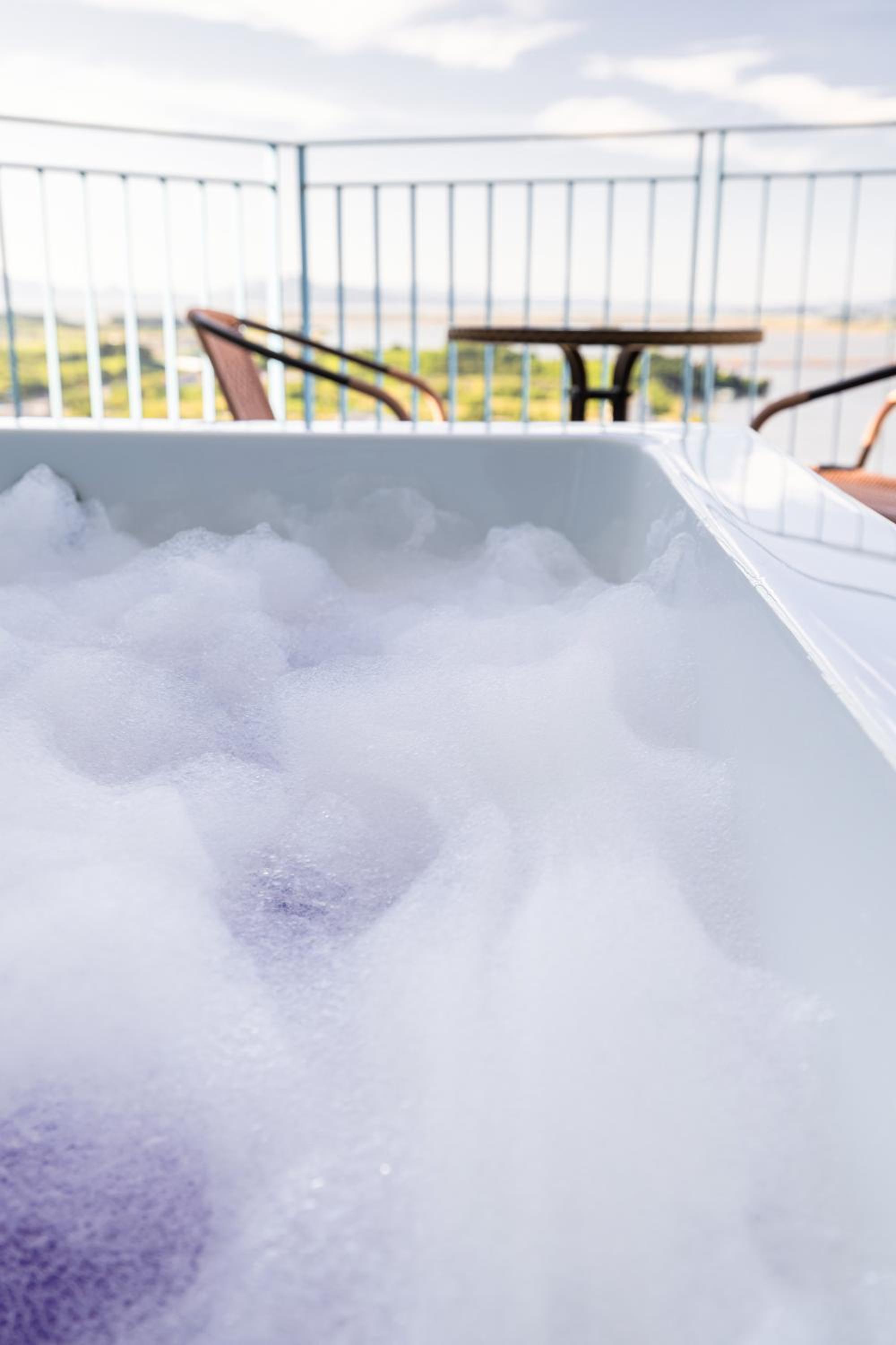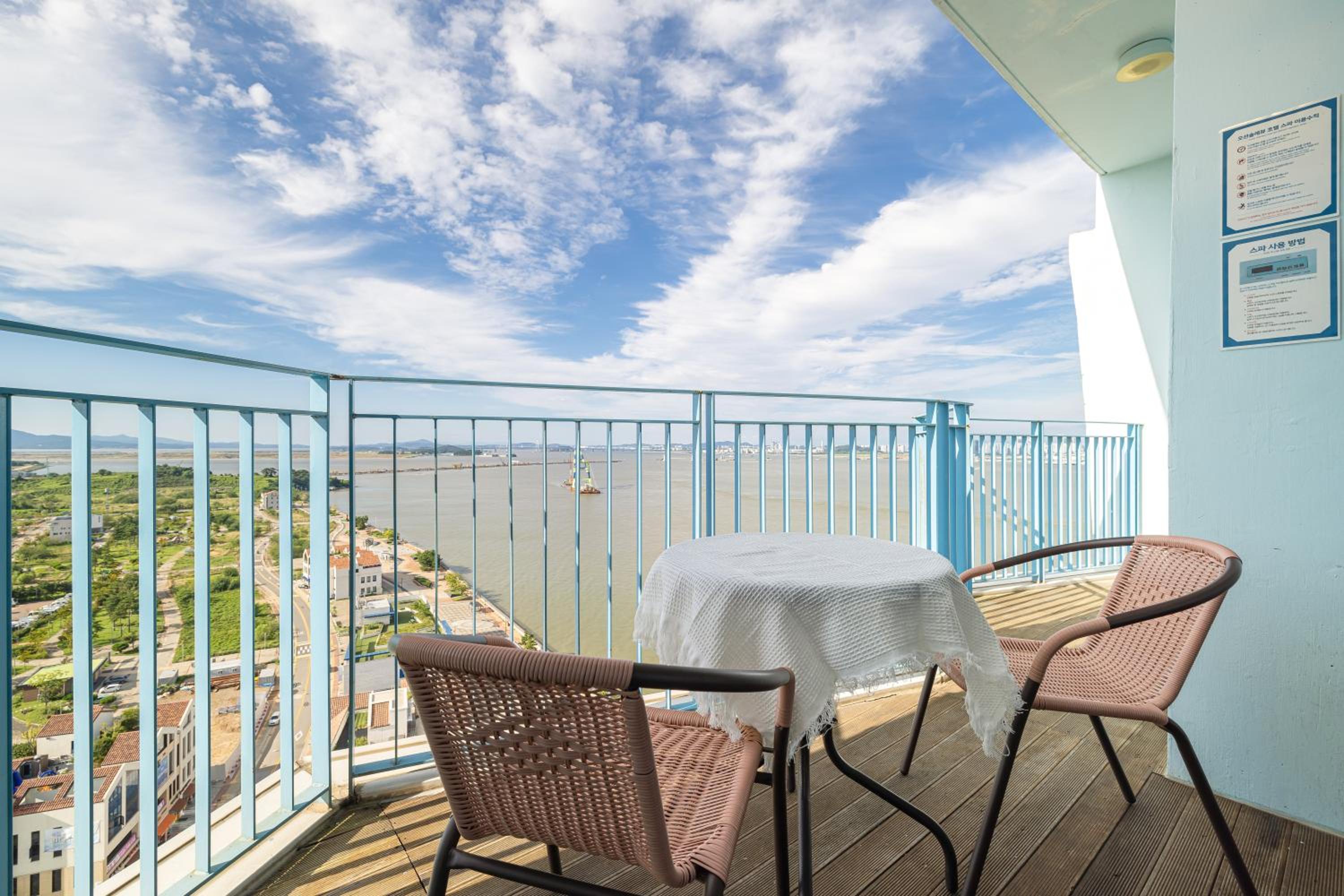 Beautiful views of the harbour and promenade from the balcony. Close to Incheon international airport, close to a huge park and loads of restaurants. The water was lovely and hot, though the pressure was average. It was fun to watch the barge coming and going, and all the seagulls off the bow.