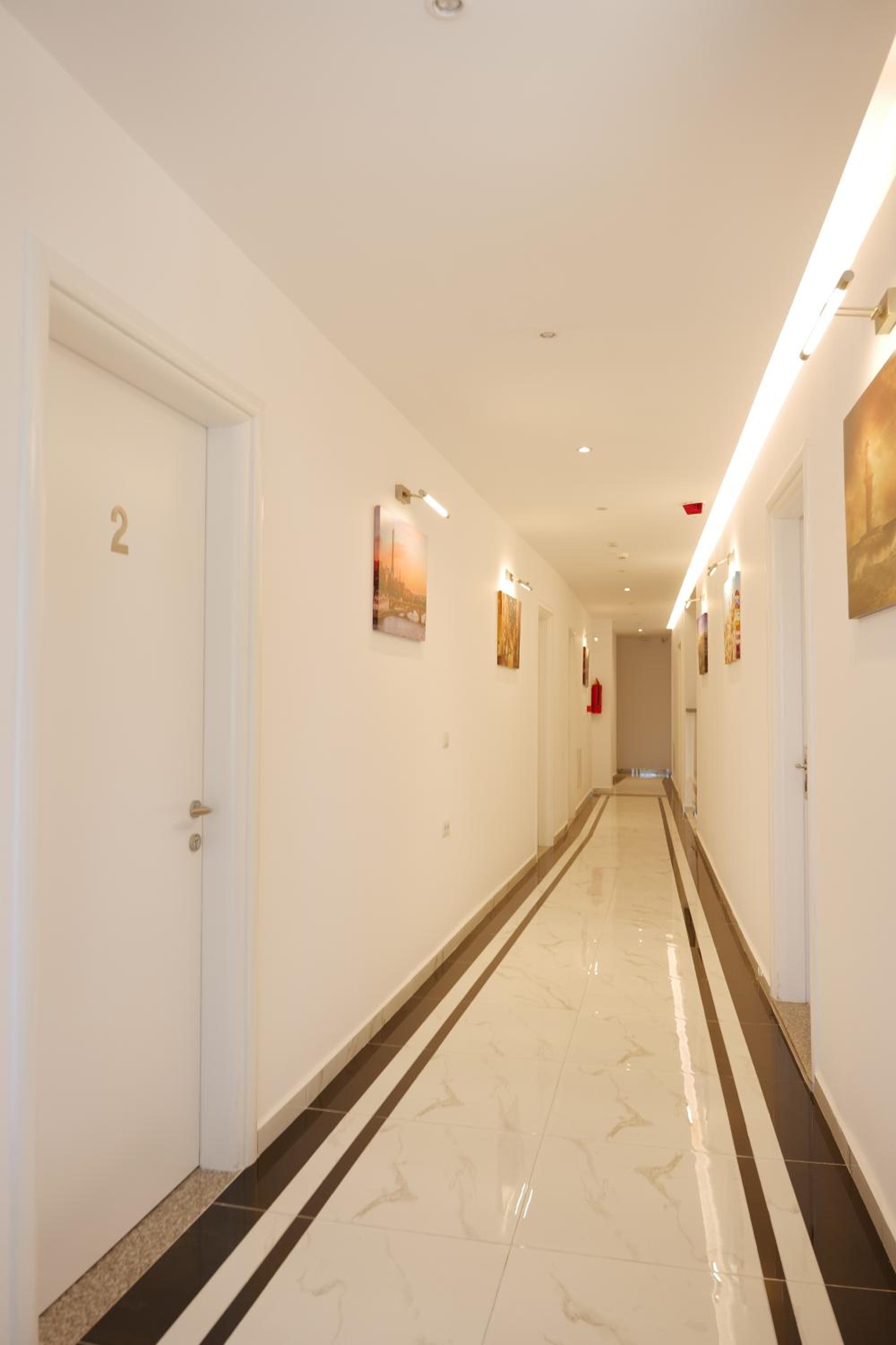 The family that run the place is very helpful and friendly; we were impressed by how many languages the nice young girl spoke (Albanian, Italian, Greek, Spanish, English, ...), which is always handy when running this sort of business. The rooms are large and there's everything you need. Breakfast was varied, there were lots of savoury and sweet delicacies, but make sure you arrive at the time they tell you: we arrived a bit late and it was all cold :( but still tasty, so we didn't complain. We didn't use it but I think it's worth mentioning that there's also a car workshop - run by them as well - attached to the hotel, in case you come by car and need anything fixed!