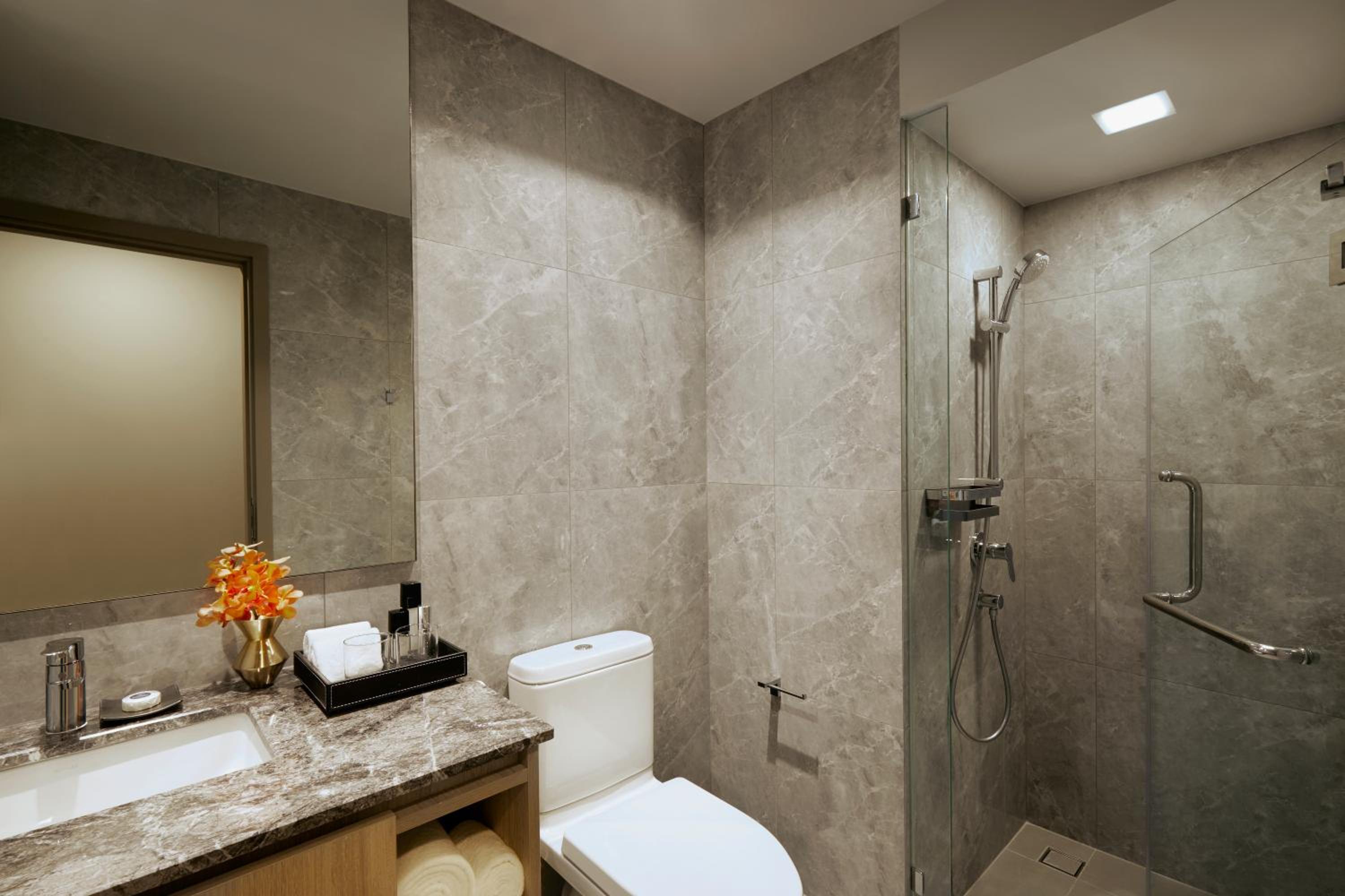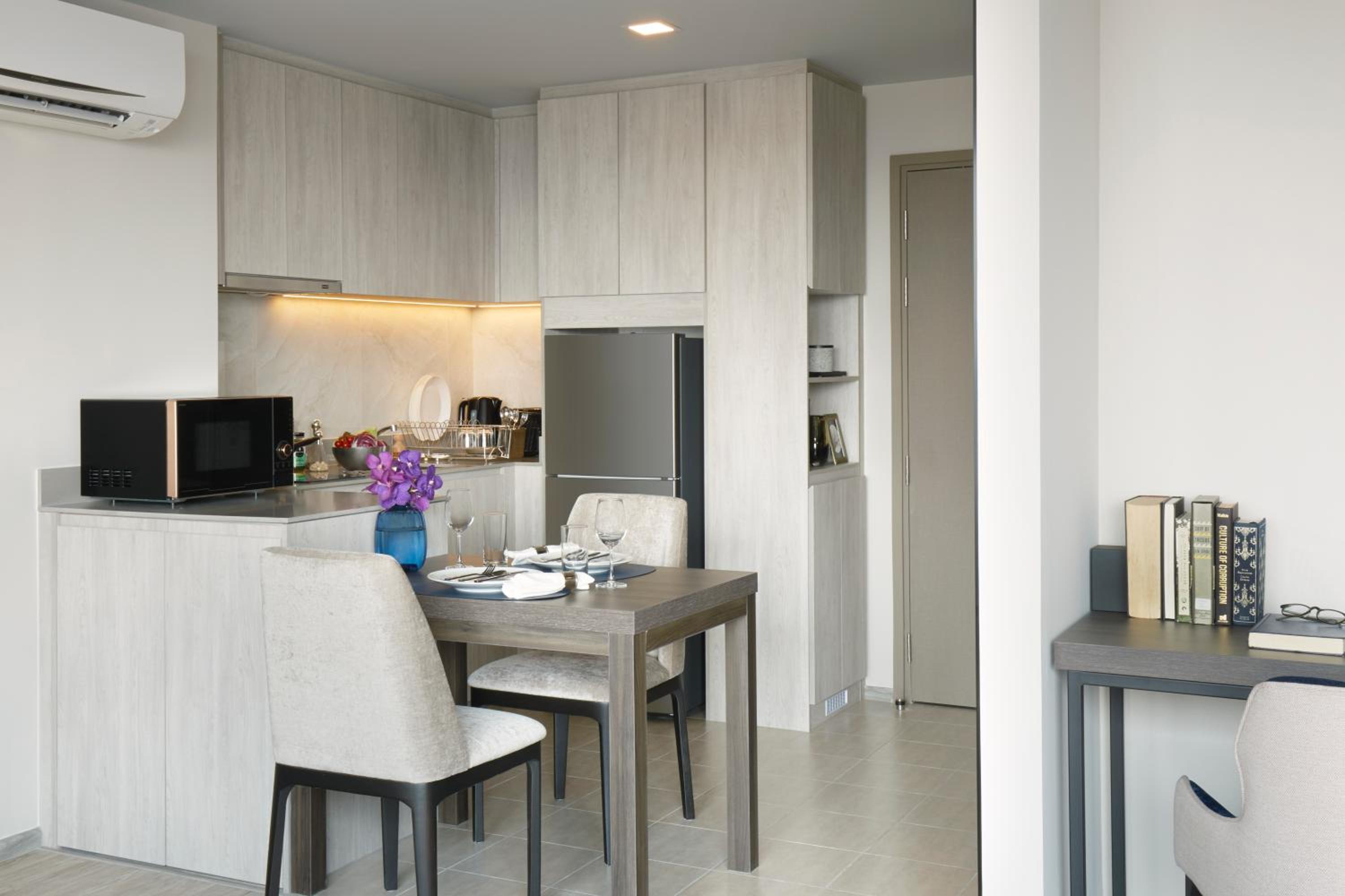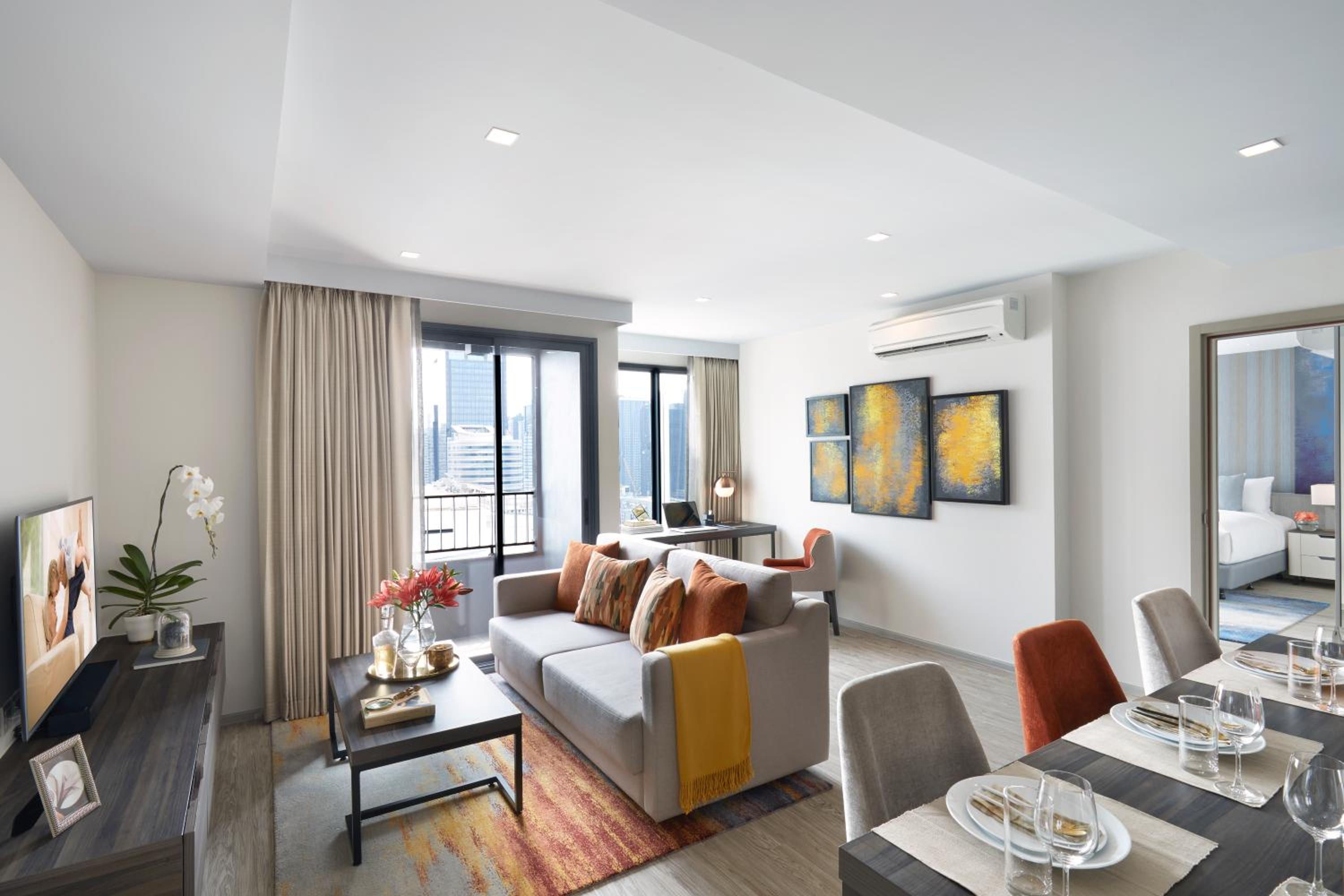 Indulge in city views from each room at Somerset Rama 9 Bangkok - SHA Plus Certified. Enjoy the convenience of a kitchen in select rooms, along with a flat-screen TV, safety deposit box, and a private bathroom stocked with premium toiletries.
