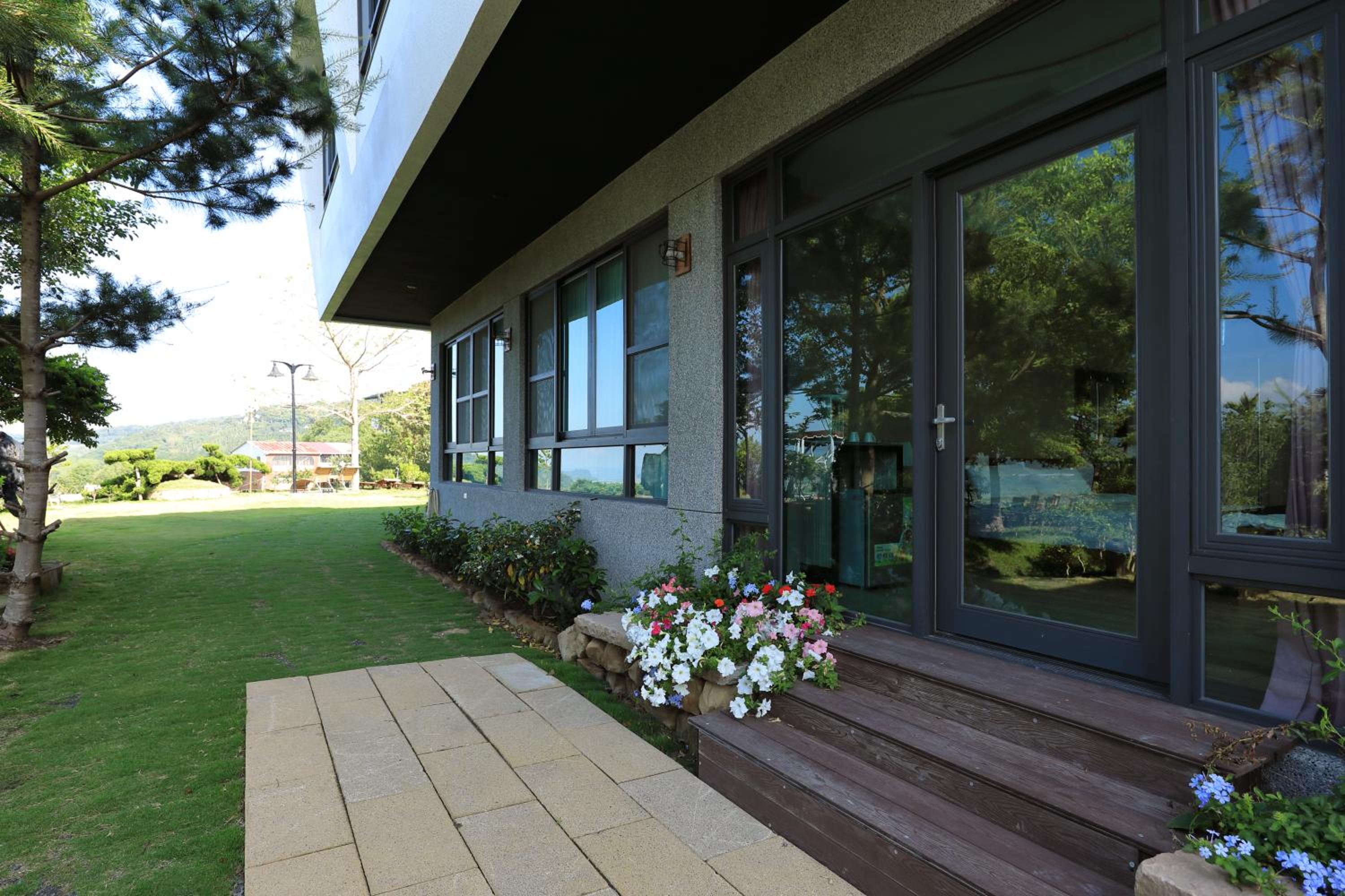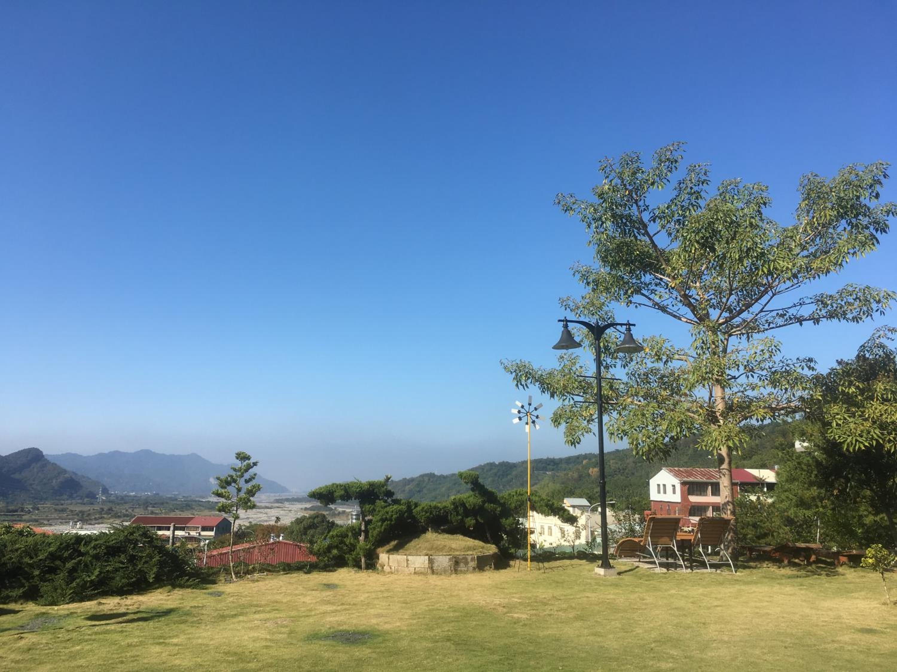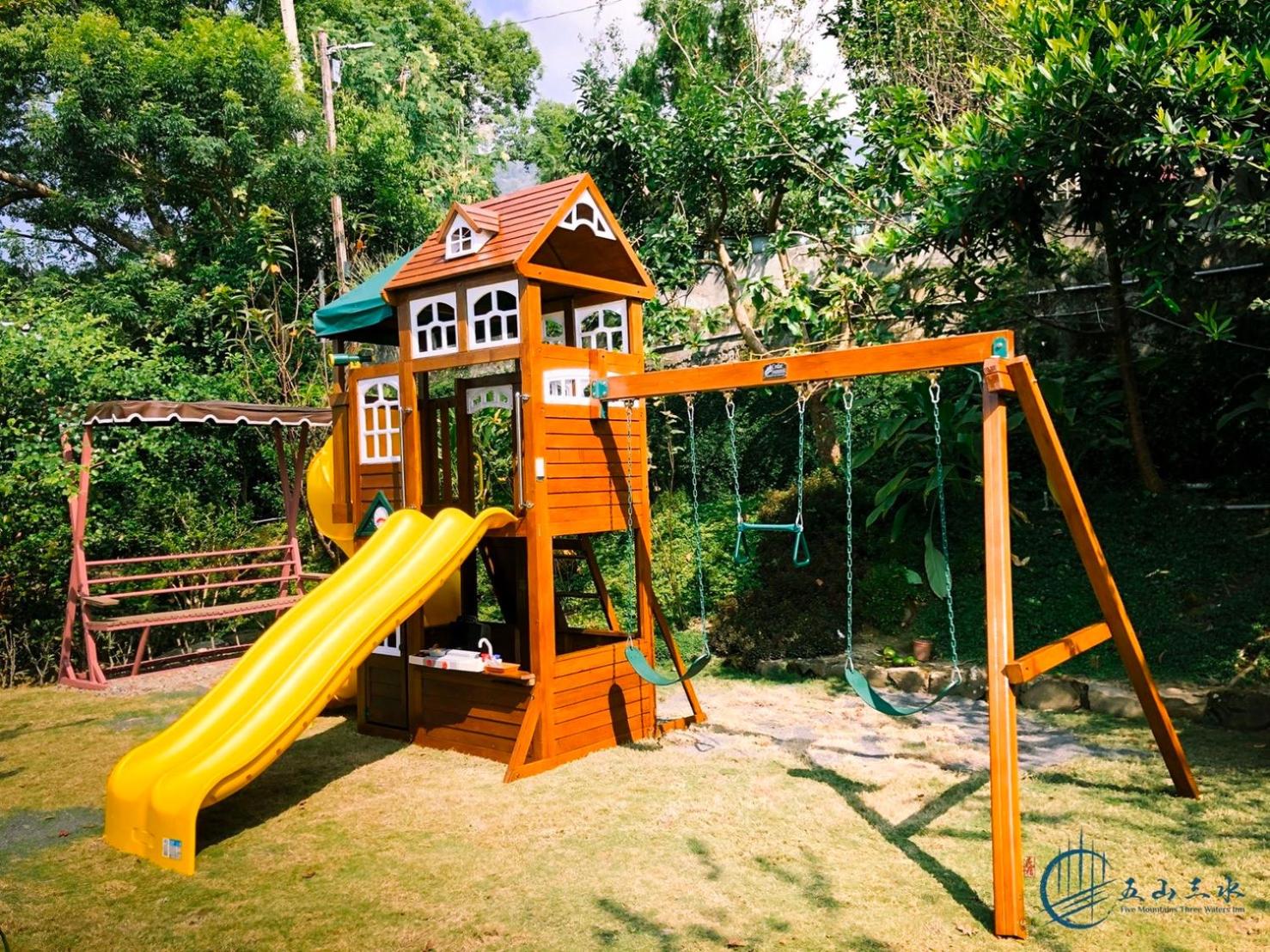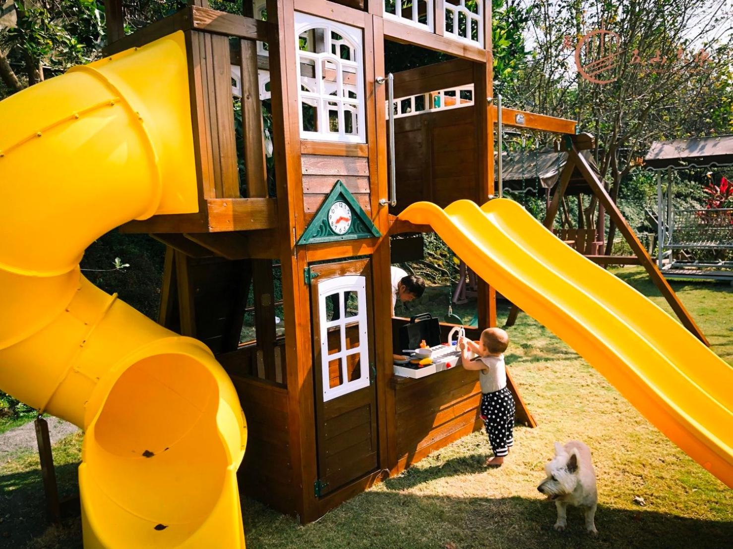 戶外草皮照顧得很好,幾乎沒有蚊蟲,遊樂設施也維護得很細緻,孩子玩得開心又安全。民宿位置看得到美麗山景,但離市區不遠,交通方便。
