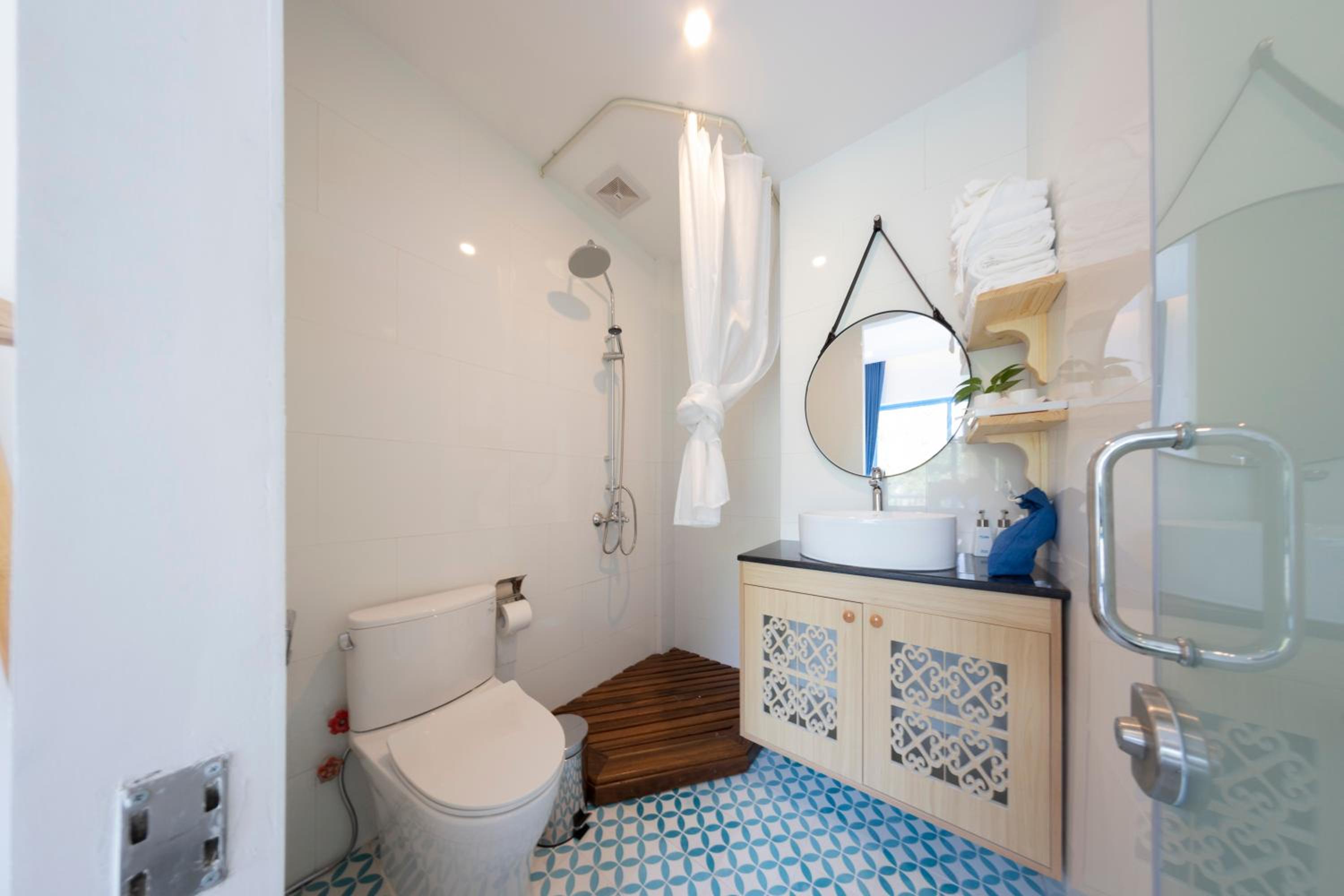 Nước ở vòi sen hơi yếu. Thoát nước ở sàn chậm