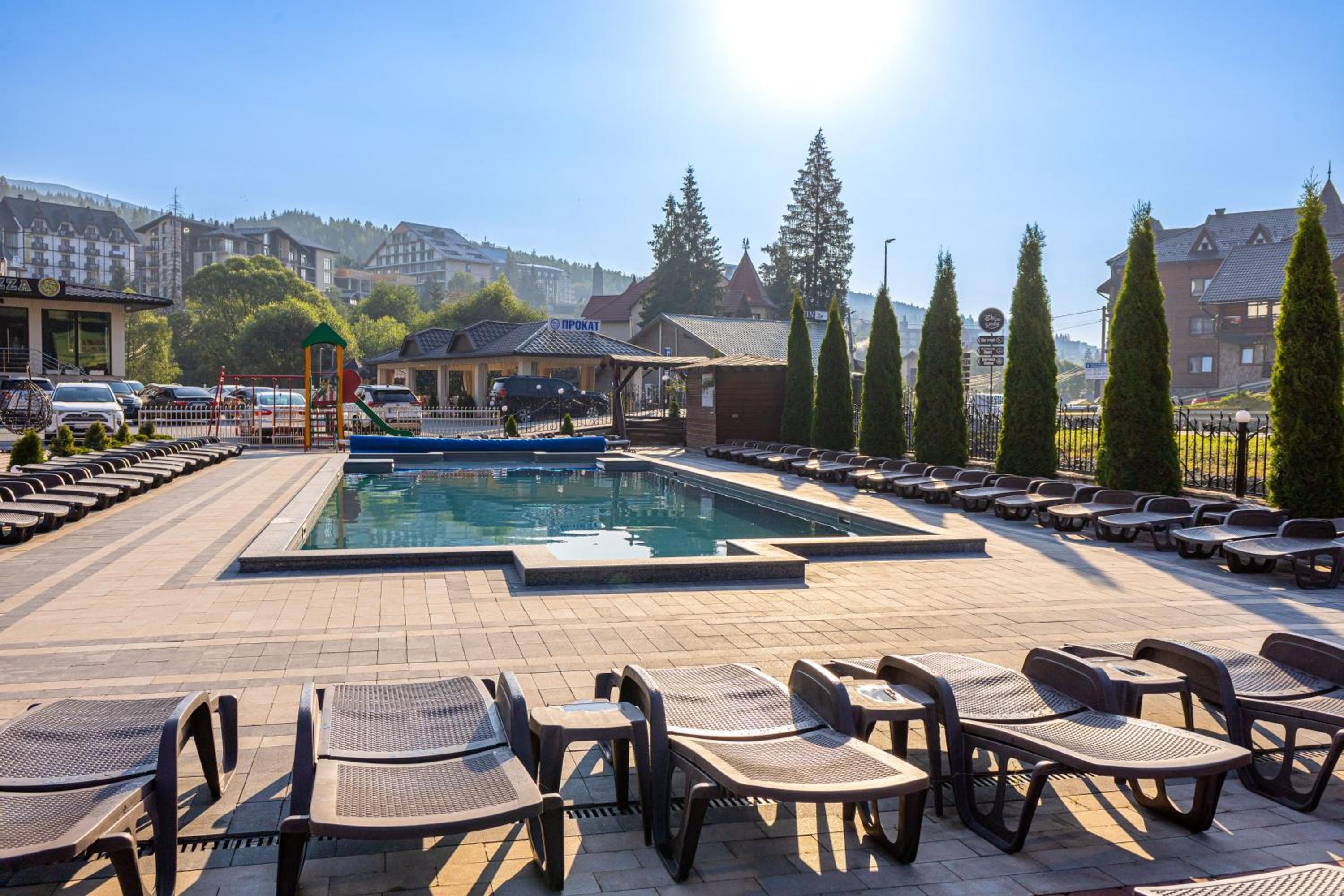 Enjoy breathtaking mountain views from the comfort of your room's balcony, or take a refreshing dip in our seasonal outdoor pool.