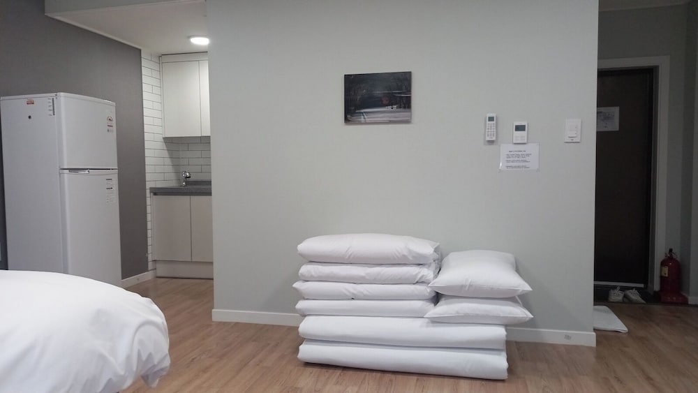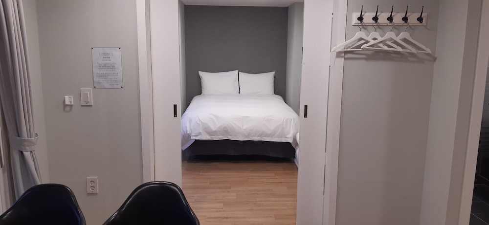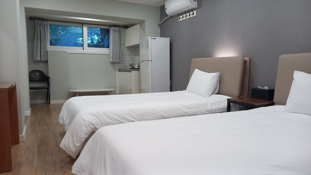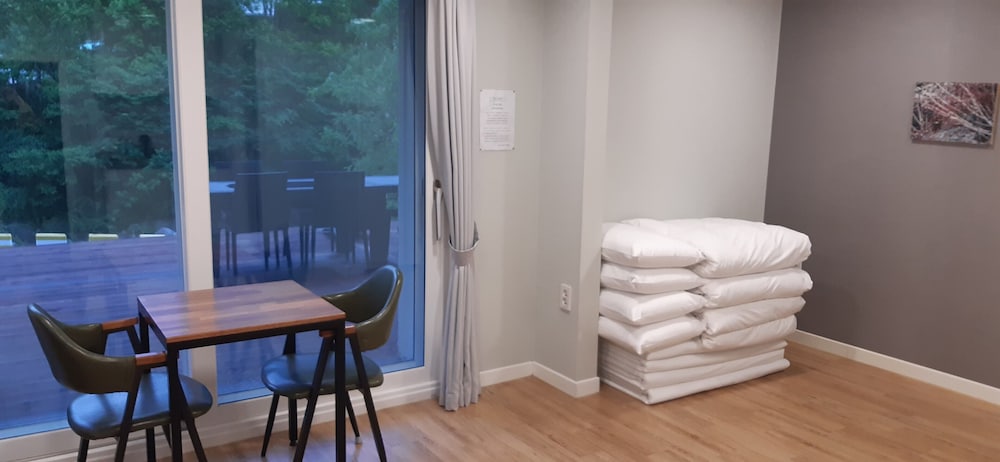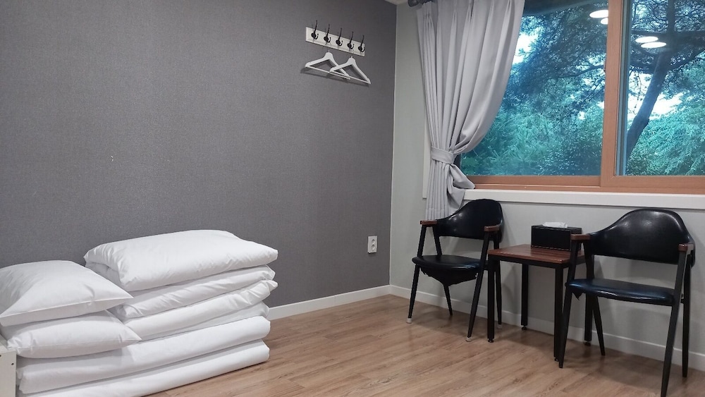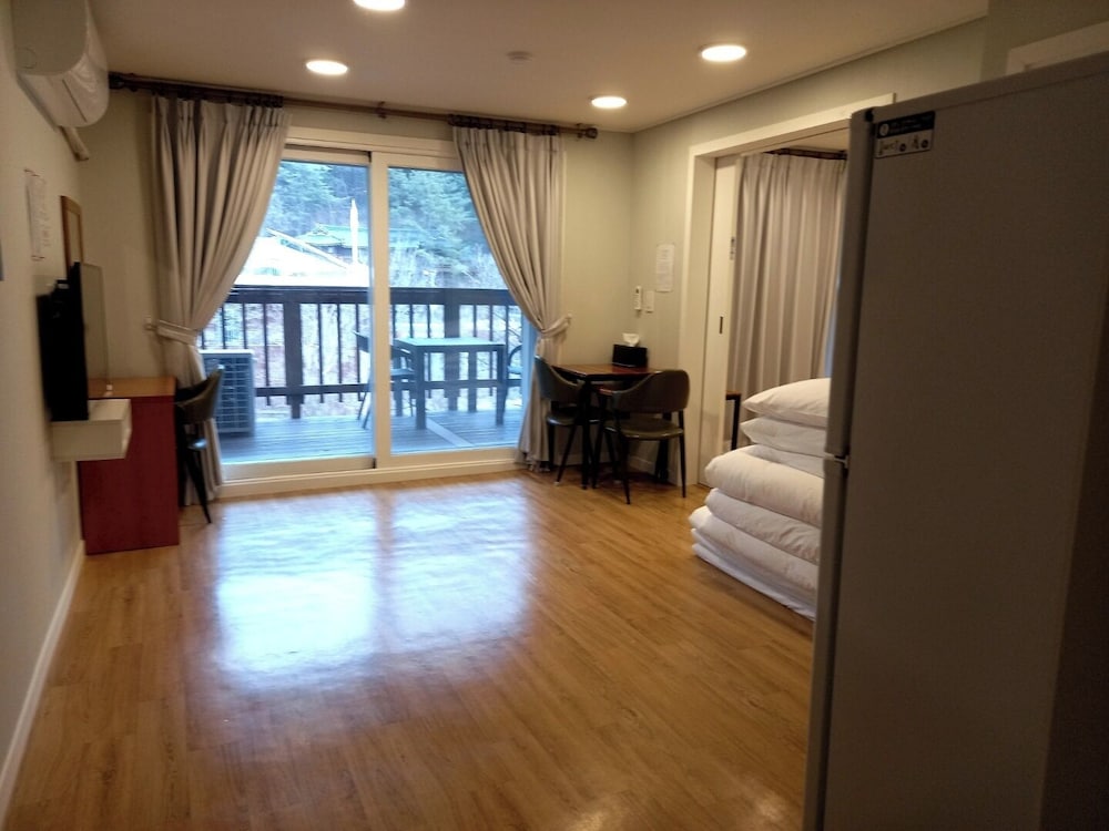 Trรจs bien situรฉ ร quelques minutes en voiture du temple Hwaeom-sa. Excellent accueil avec un tout petit peu d'anglais. Belle et grande chambre, confortable avec balcon vue riviรจre. Parking gratuit sur place. Quelques restaurants ร proximitรฉ mais ils ferment tรดt. Dommage au cafรฉ de l'hรดtel il y a trรจs peu de choix.