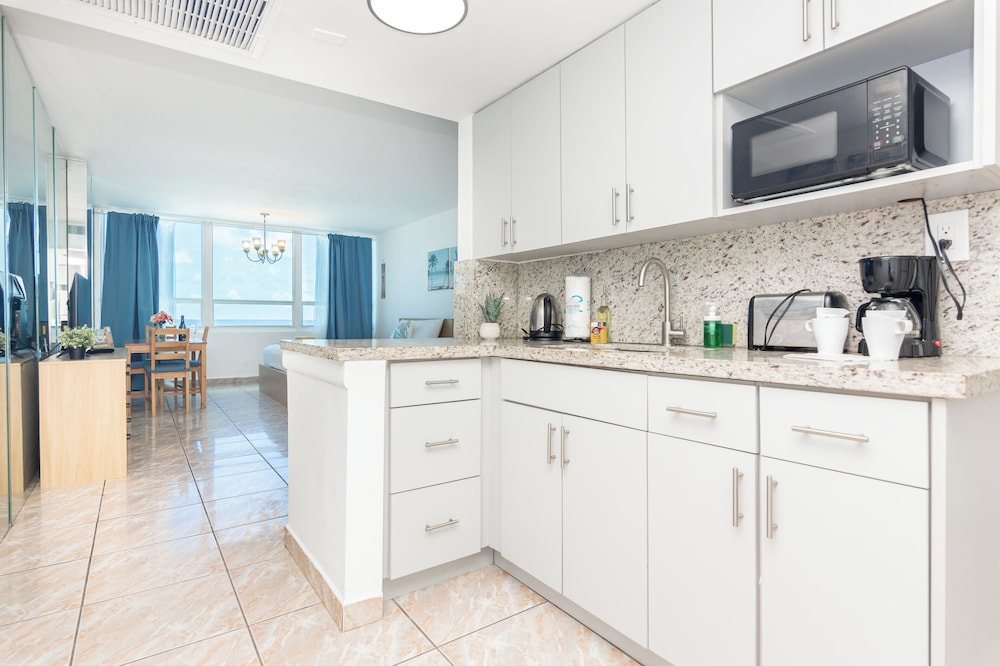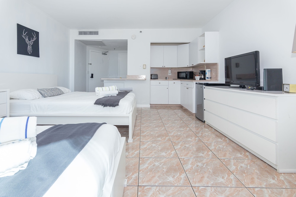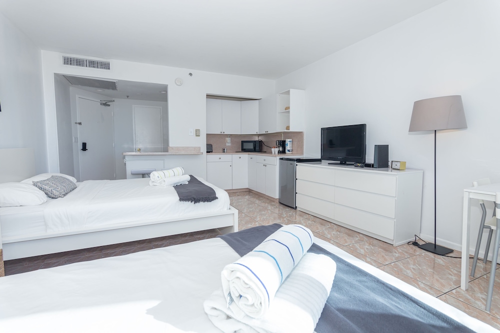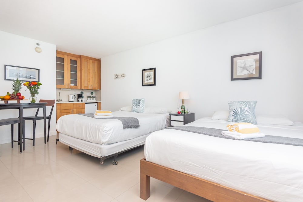 With 46 uniquely decorated guestrooms featuring kitchenettes, you can enjoy the luxury of cooking your favorite meals while relishing your Miami getaway. Each room is equipped with a 32-inch LCD television and offers separate sitting areas for your comfort.