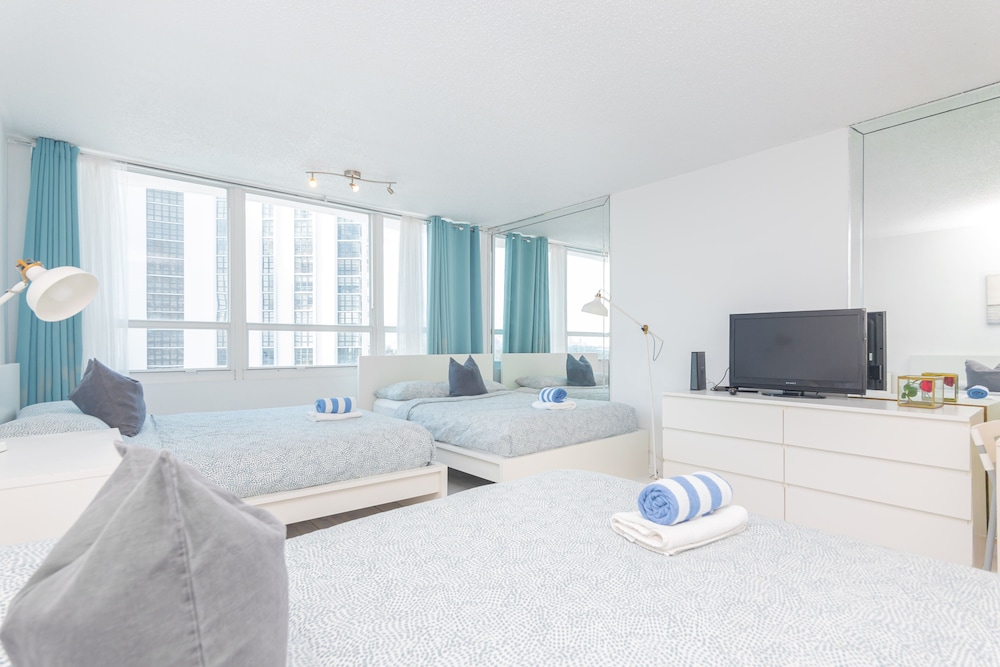 It has nice locations, parking facilities is nice, all staff members are supportive, views are amazing , just across the beach but property conditions was average, had to keep tap on for 10-15 min to get warm water (yes warm water), due to rain there was water leak in apartment at few places, management did offer another place to stay overnight until they fix next day but it was smaller and had bay views, management did try to help me but never agreed on refunds for the issues I faced, furniture had some issues like broken, damaged parts, beds were comfortable, bathrooms were good in size.. overall I would give 1 or 2 stars. However as per mail received from property management, if we give 5 stars, they can also return 5 star to me however I will be honest that with that price tags, there can be other options.