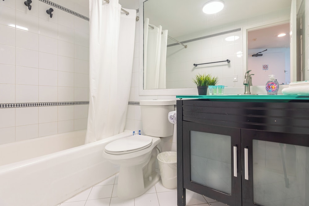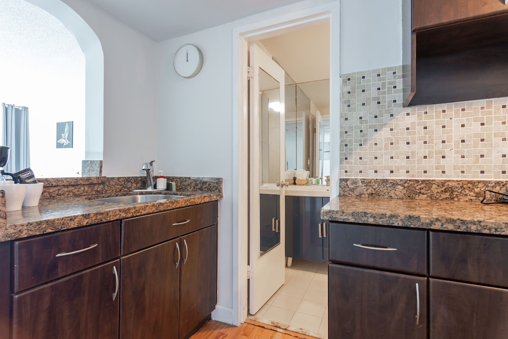 Room was questionable in cleanliness. Every single area in the bathroom (floor tile, bathtub, faucets, door jam) were painted over. This makes me wonder how it can possibly get cleaned after each stay. The view was NOT as pictured in the listing (even after identifying the same room), all we could see is the top of the roof. We got put into the wrong room thanks to Expedia’s incompetence, however I think this property management team needs to closely monitor their standards because this room was disgusting.