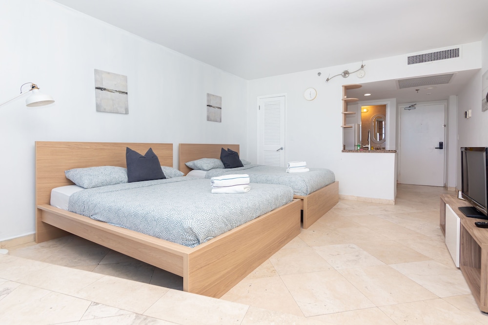 The shower appeared to need some touching up visually (some peeling paint, shower head leaking, etc.), and the “ocean view” advertised for our room was mostly overlooking the roof. However, aside from those two things, the room itself was great. A slight nitpick though - the soaps in the bathroom smelled like burning chemicals, almost like the type of chemical used in perms at hair salons. Outside the room, the property was very busy most times of the day, making the elevators and car valet services difficult to utilize without crowding and/or long waits. With that in mind, overall the stay was very good, especially for the price. The aforementioned hiccups should just be kept in mind if planning to stay here.