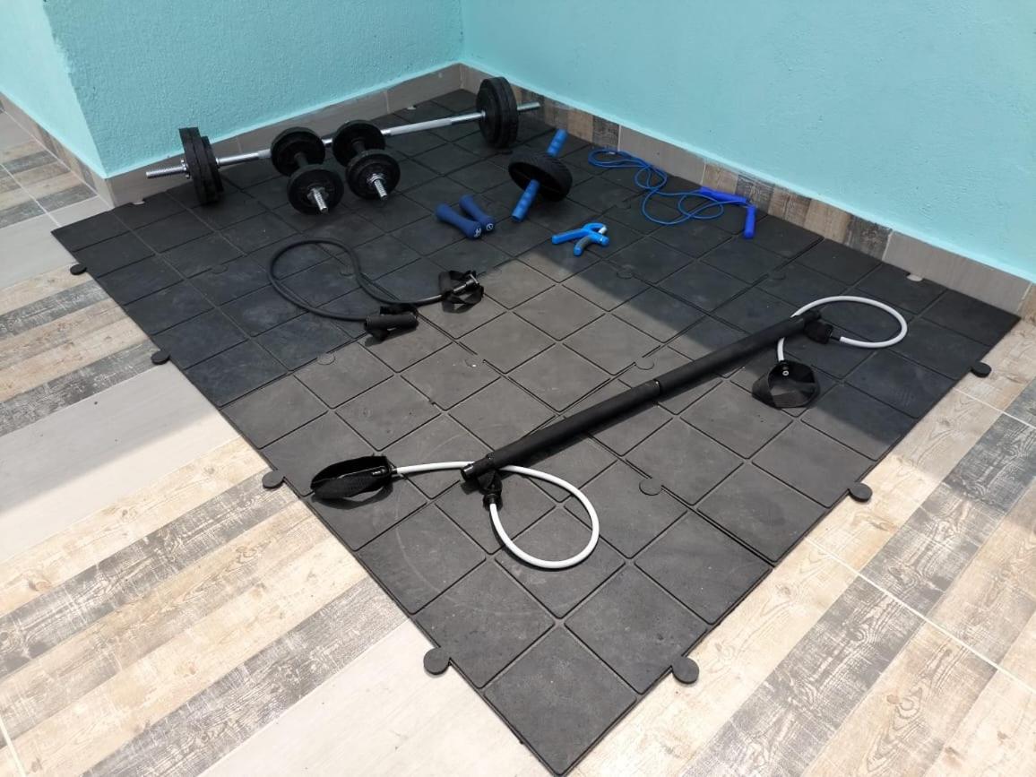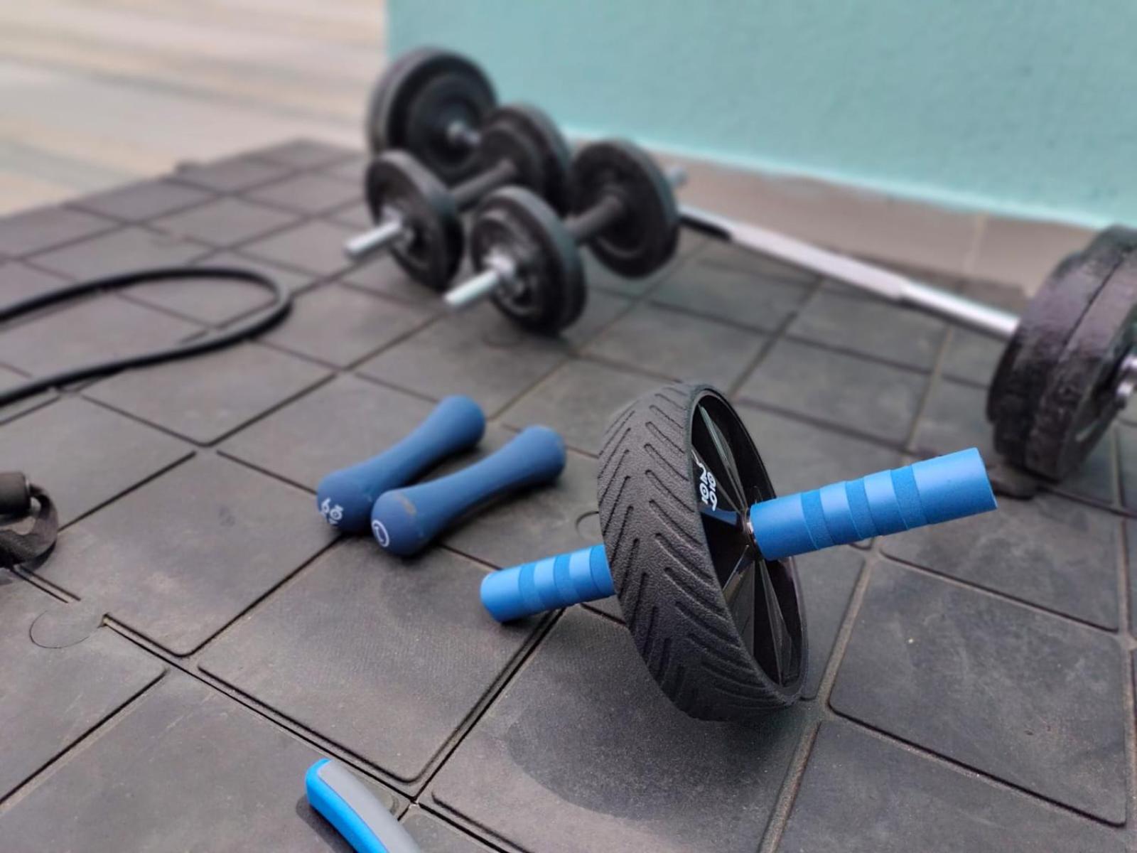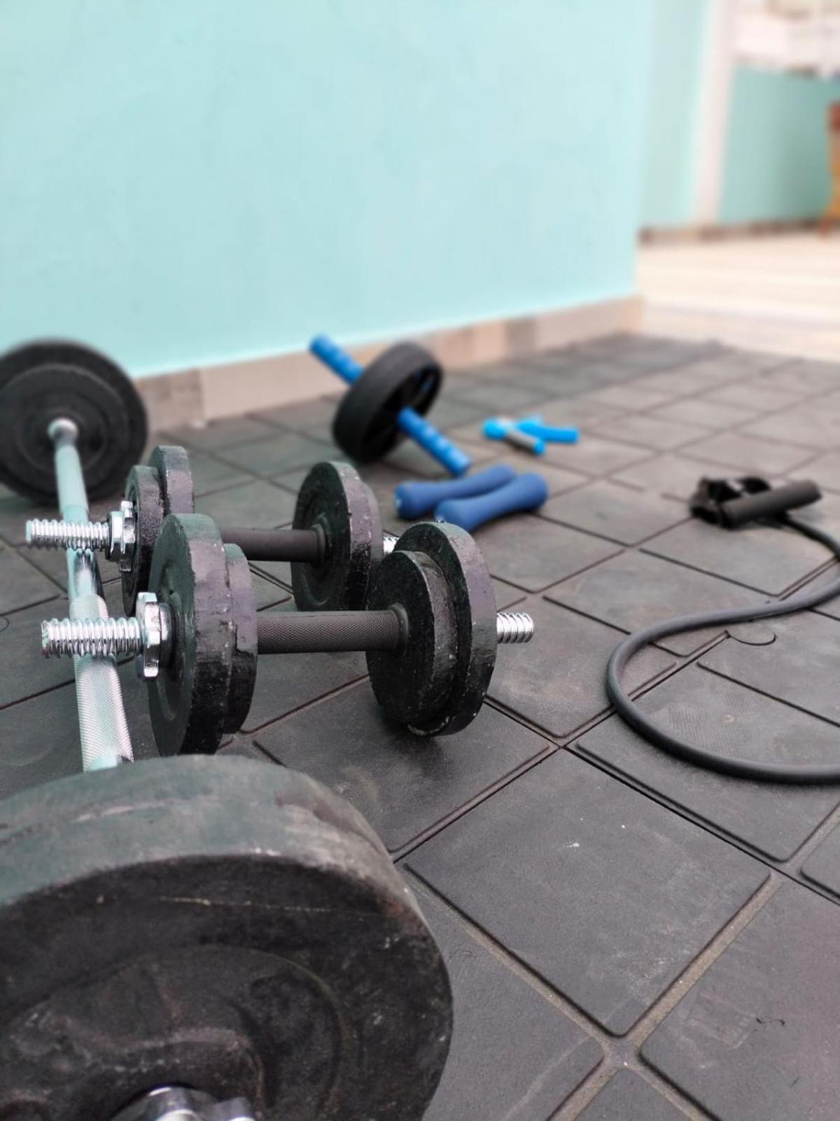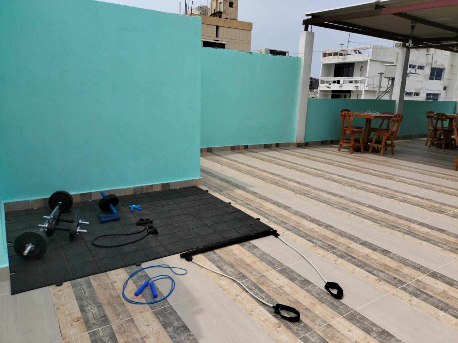Dachterrasse und Balkon öffentlich waren okay. Hantel auf der Dachterrasse.