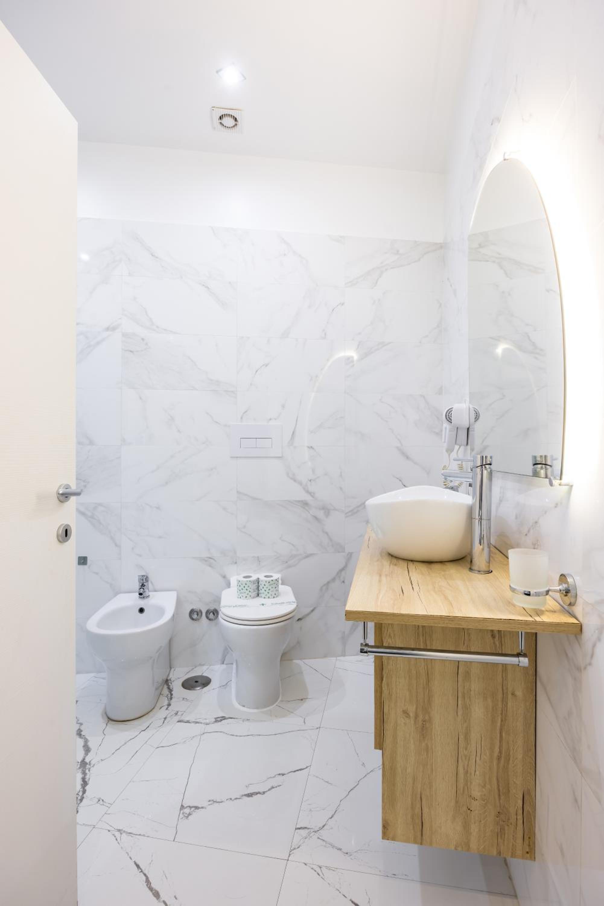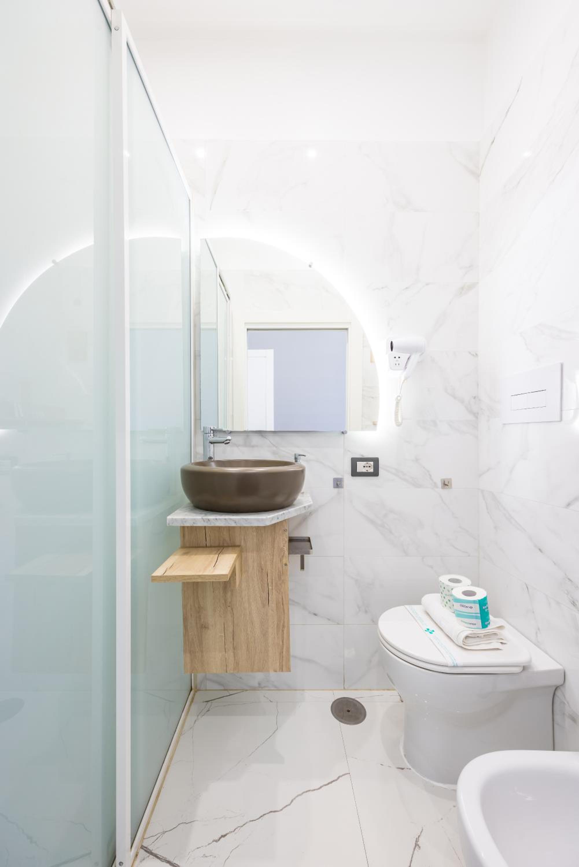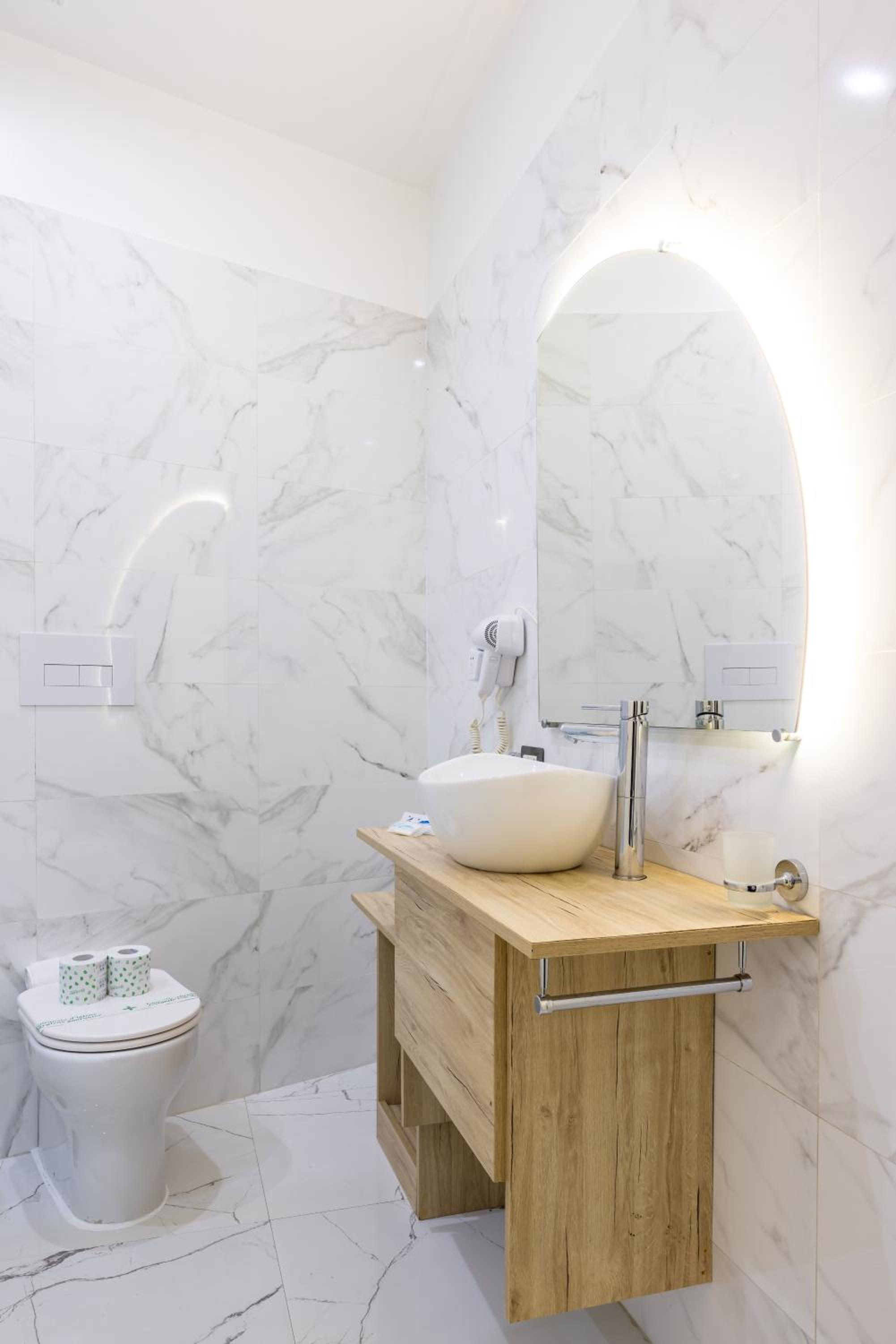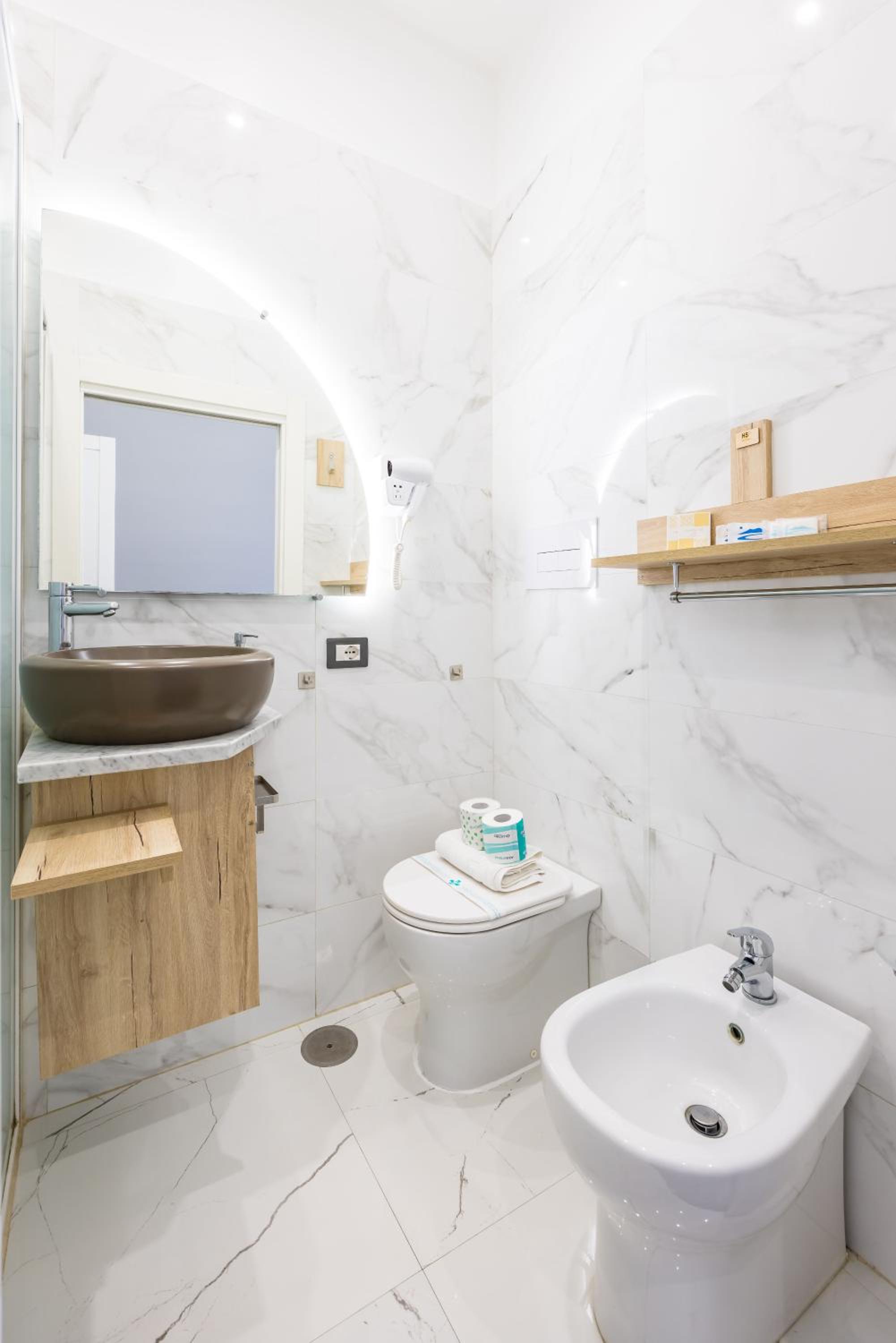 There was a hairband and a stripe of hair on the wall of the shower, this is why I didn't give a 10 to the cleanliness. Also , the furniture of the bathroom couldn't fit anything around the sink.