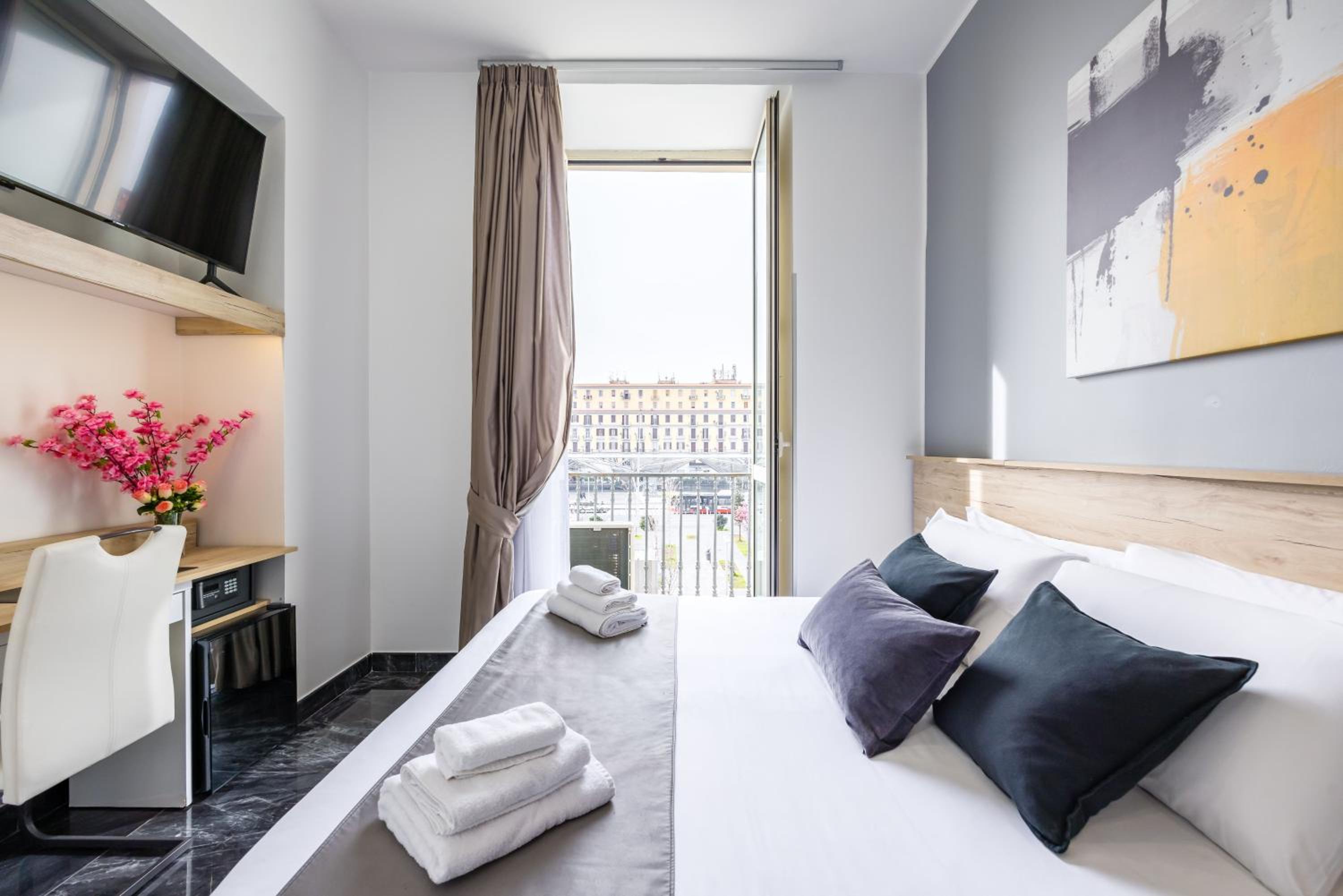 Swietna lokalizacja , na samym placu Garibaldi , boczny widok na plac co bylo super bo nie bylo halasu z ulicy glownej . Pokoj od ulicy dobrze wyciszony . Personel extra . Pomimo zakwatwrowania dopiero po godz 15.00 ( bylo wczesniej o godzine ) , po przyjezdzie ok 9.00 rano dostalismy sniadanie powitalne za darmo + butelka wina na powitanie - wspaniałe powitanie , dziękuję . Dostep z hotelu do wszystkich rodzajow transportu o kilka krokow. Wszelkie bary i restauracje na wyciagniecie reki . Pokoj sprzatany codziennie + wymiana recznikow - brawo ! Pokoj czysty . Dostep o kazdej porze . Bardzo wygodne lóżka materace lekko twarde na ktorych bardzo dobrze sie śpi . Pokoj dośc duzy . Na duzy plus wszystkie potrzebne startowe kosmetyki w łazience ( szampon , pasta do zebów itp.) Swietne śniadania - duzy wybor dań i smakolyków do darmowej kawy i soków . Obsluga na najwyzszym poziomie . Cały personel miły i uśmiechniety
