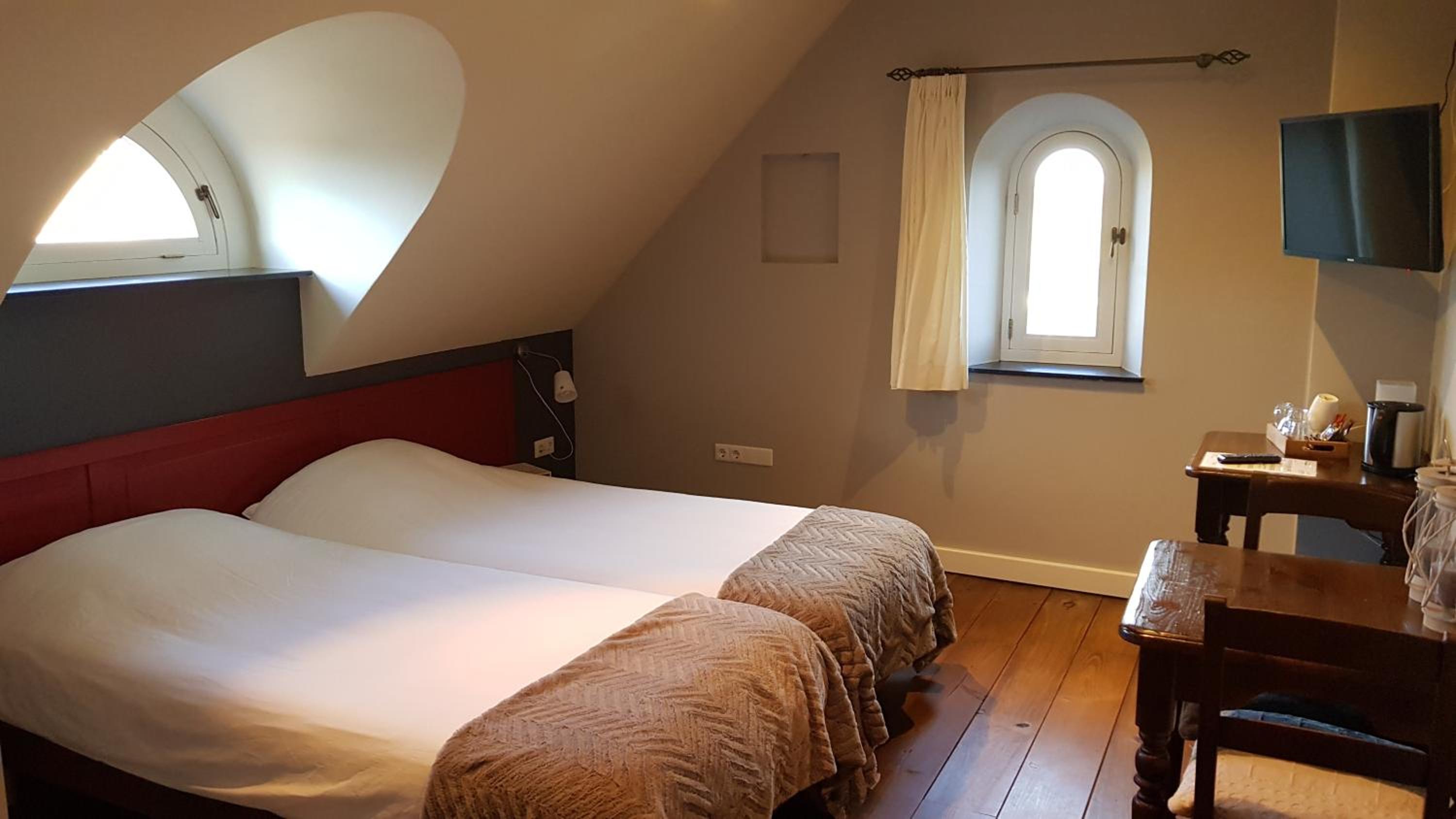 Twee bedden hadden wat kuilvorming in het matras. Uitgebreid ontbijt maar er miste een sapje.