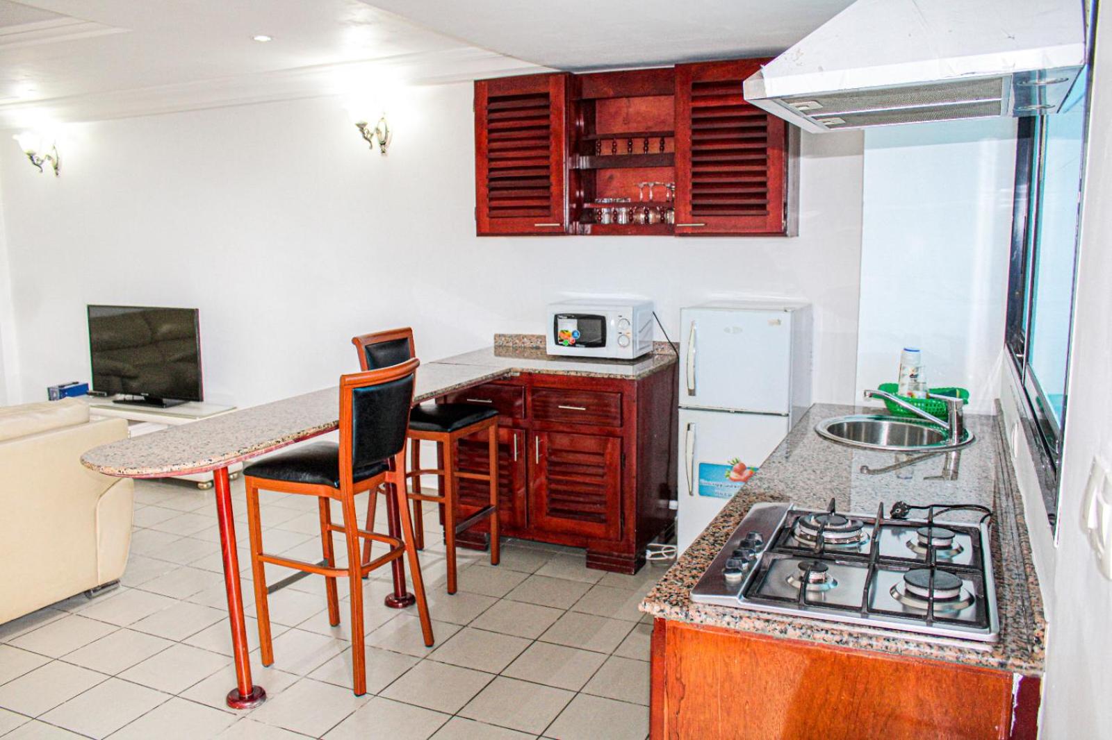Our air-conditioned units feature a well-equipped kitchen with an oven, microwave, and more. Stay entertained with a satellite flat-screen TV, and stay secure with a safety deposit box provided in each unit.