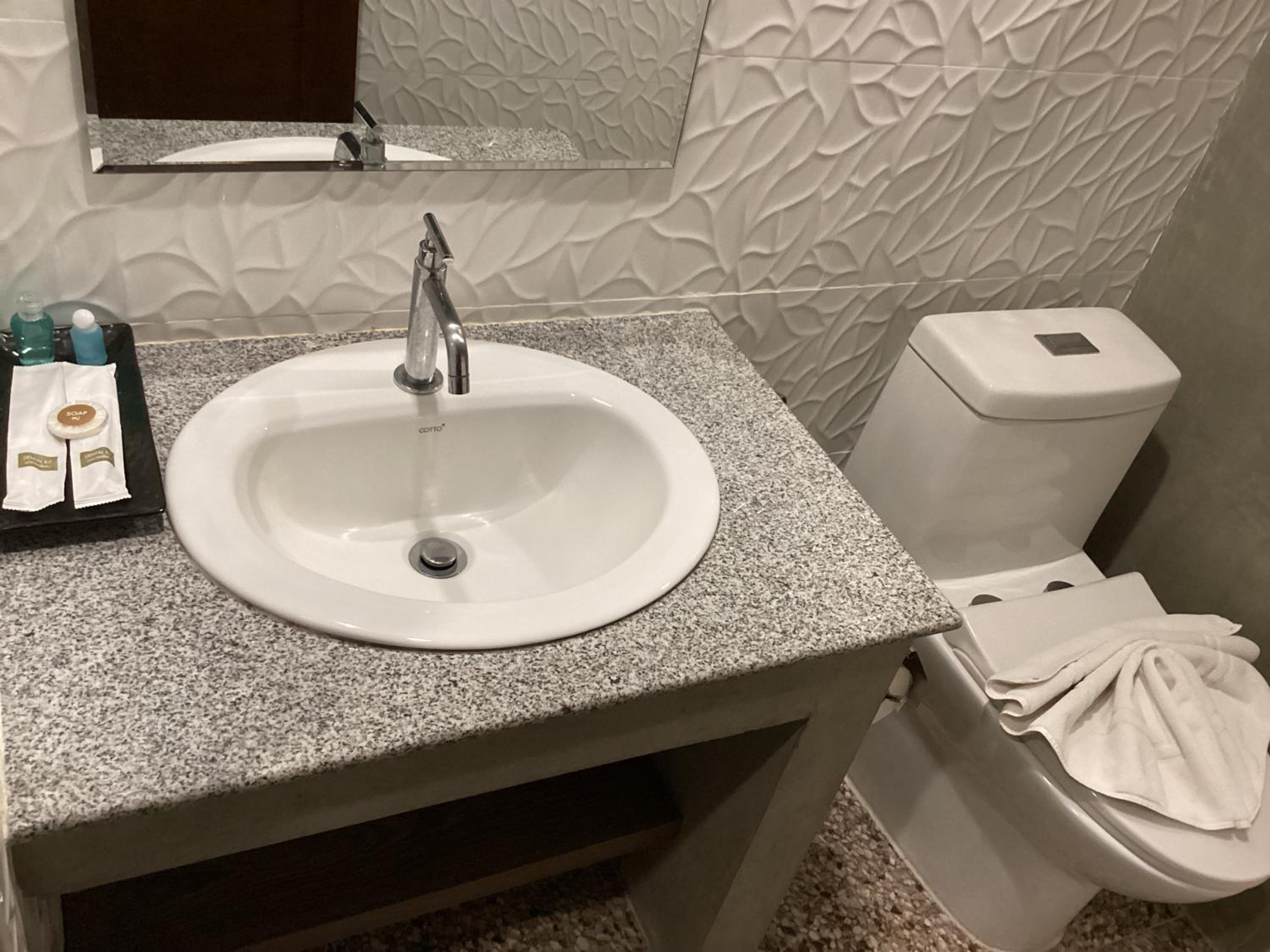 The bathrooms and shower are in the same room as the beds so the second you get into the room you smell this awful smell and it stays all the day. The cleaning woman comes to clean the room and sprays air purifier but the smell is so strong it doesn’t help. Only for that I will not return.