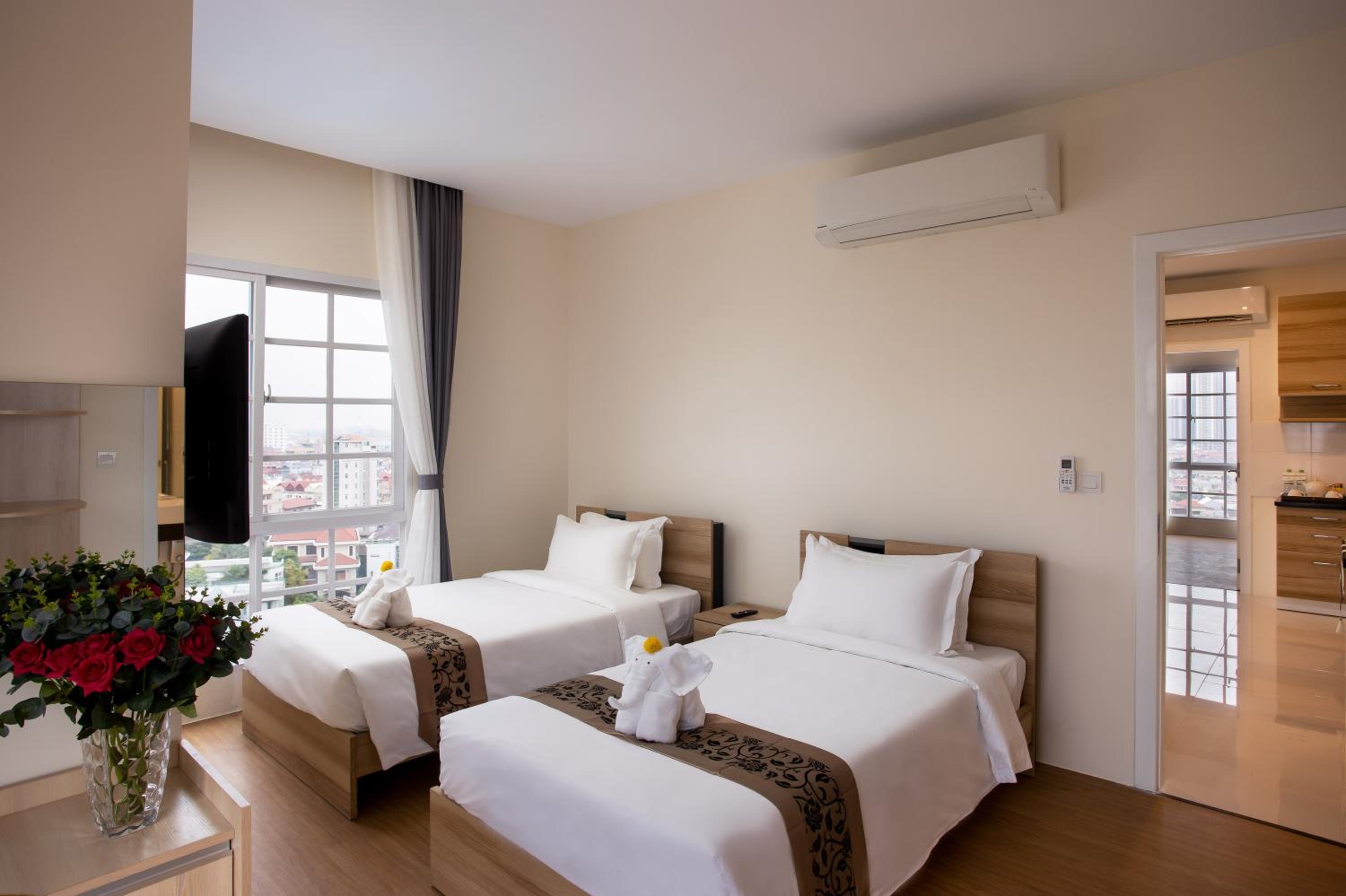 The rooms are spacious, air conditioned and most (all?) have a magnificent city view. The front desk staff are helpful and available. I love the location with dining options within a brief walk, and it is well-situated for moving about Phnom Penh.