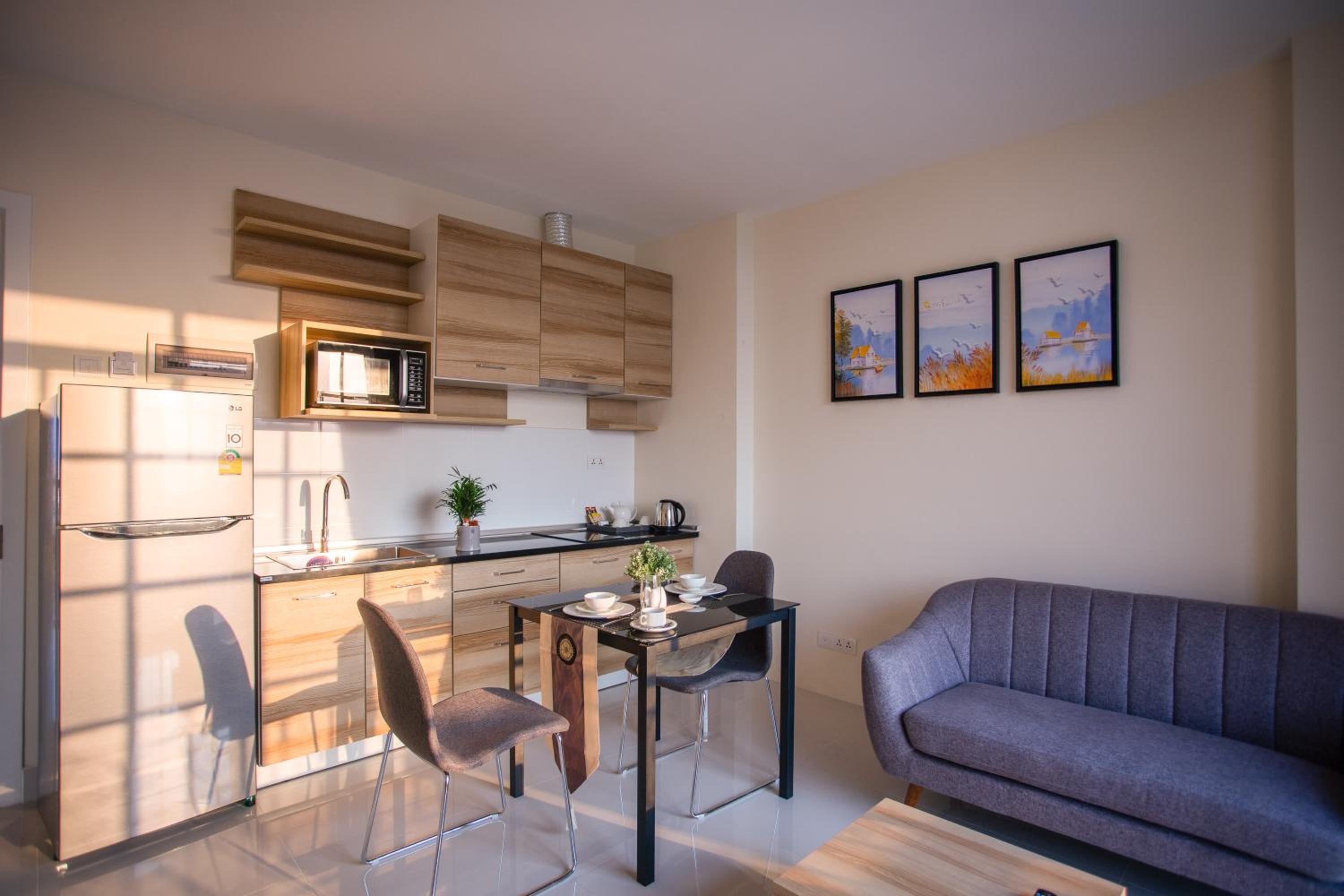 In general the staff work hard to make your stay a pleasant one. They will clean your room well, but the corridor floor was not so clean. The pool is on the rooftop, so you don't want to use it during the day, as it is very hot. It is kept greatly clean and I wanted to use it though I didn't have the chance. There is a convenience store and a 24H supermarket nearby, so you can get things from there. There is no dish, cutlery, or pans so you cannot really cook in the kitchen. There is a pot and microwave. The fridge turns off when you leave room.