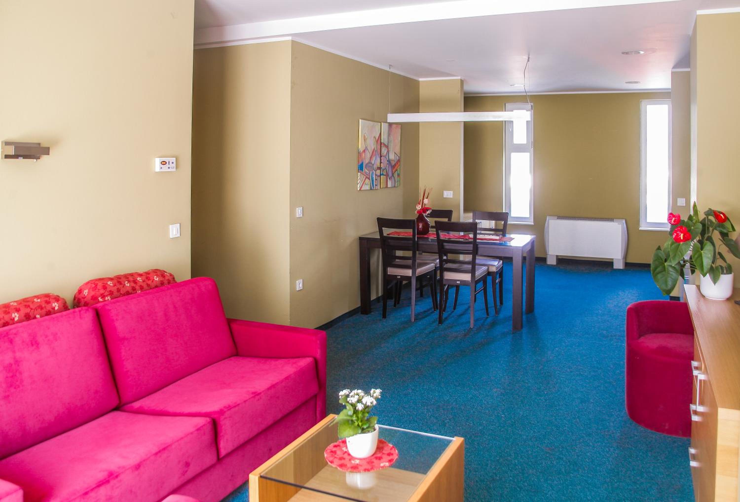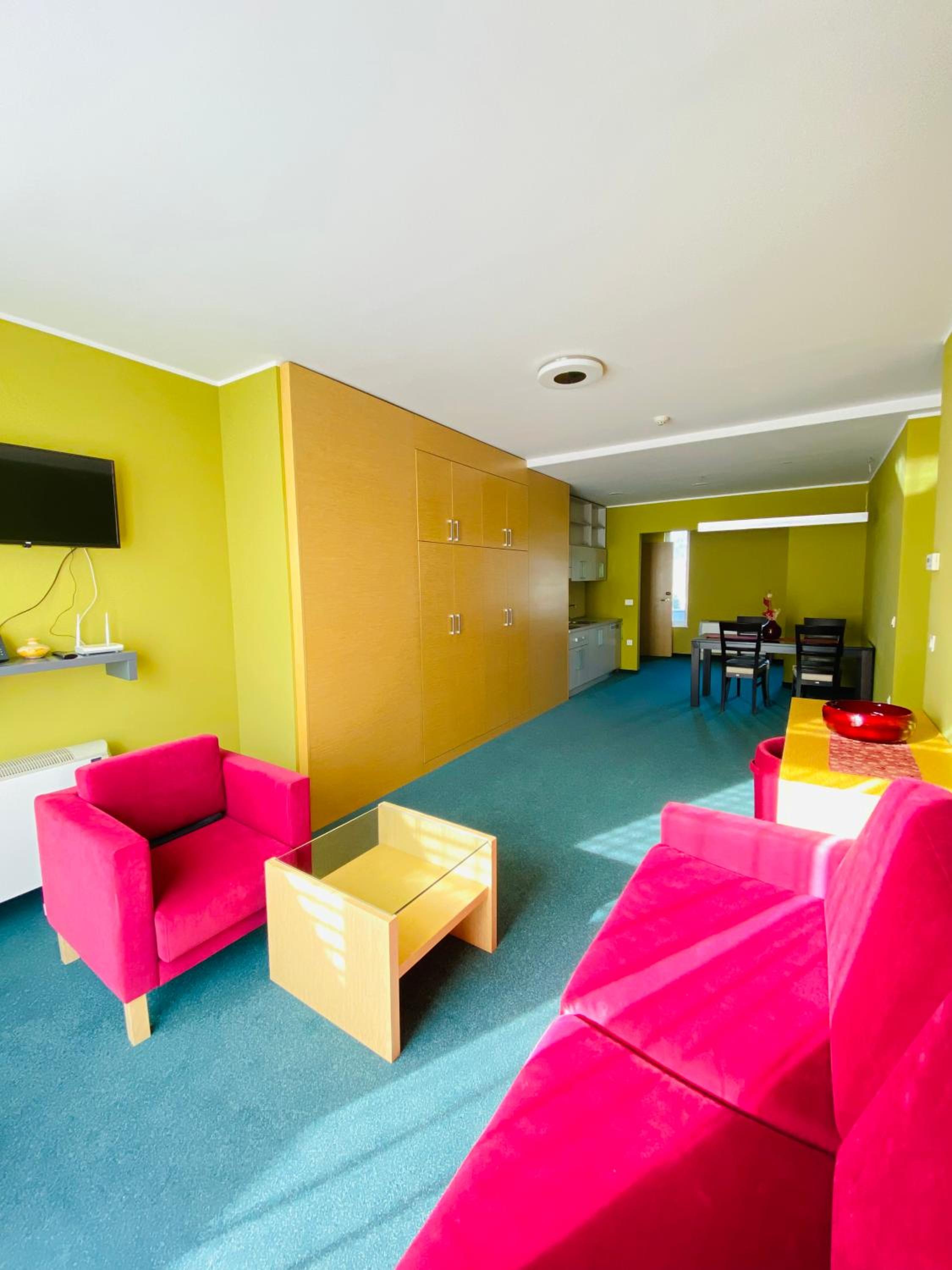 From basic hostel rooms to luxurious apartments, Hotel Veter caters to a diverse range of guests. The colourful and harmonious interior design, featuring wooden elements, creates a cozy and inviting atmosphere for all visitors. Whether you are traveling solo, as a couple, or with family, there is a suitable accommodation option for everyone.