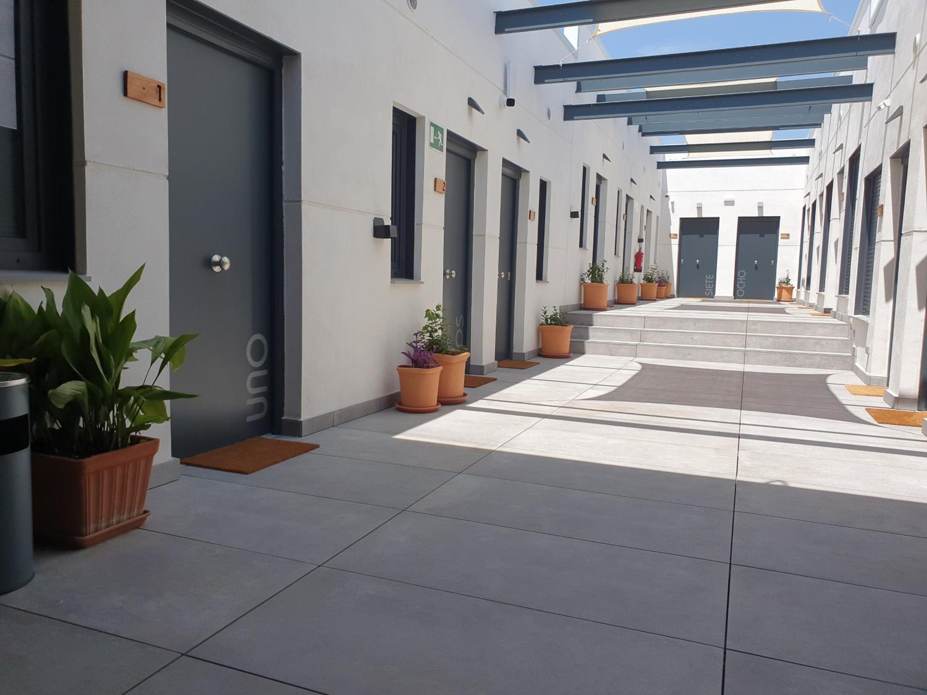 El pasillo de las habitaciones está al descubierto, llovía y nos mojábamos cada vez que salíamos de la habitación. Esta ubicado en un polígono pero los precios son del centro de Madrid, la autovía pasa al lado y se oyen los coches por la noche.