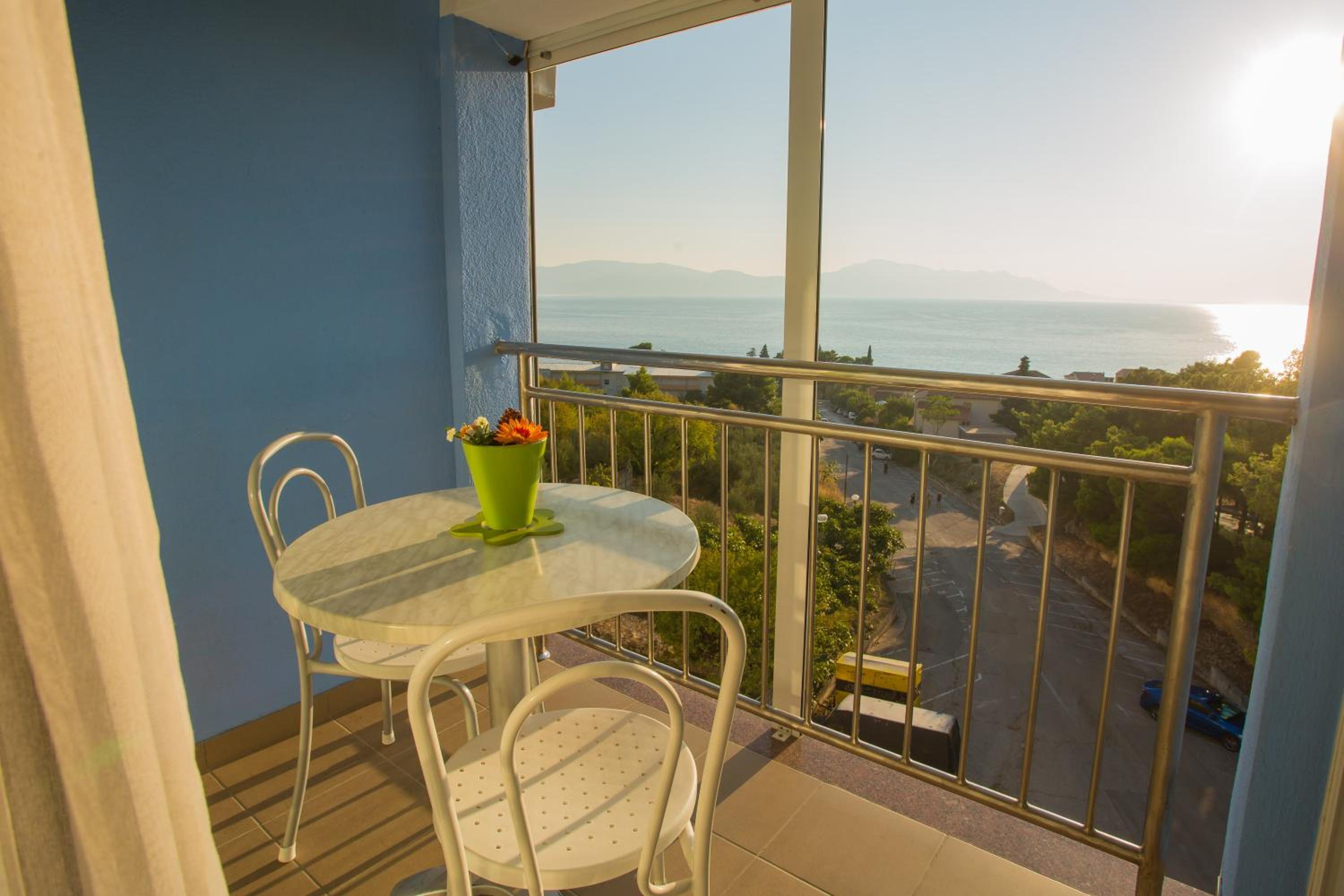 Een prima studio met een heel mooi uitzicht op de zee. We hoefden maar een klein stukje te lopen naar de boulevard waar leuke restaurants waren. Leuk plaatsje! De eigenaresse of de beheerster was zeer sympathiek. De prijs kwaliteit was erg goed.