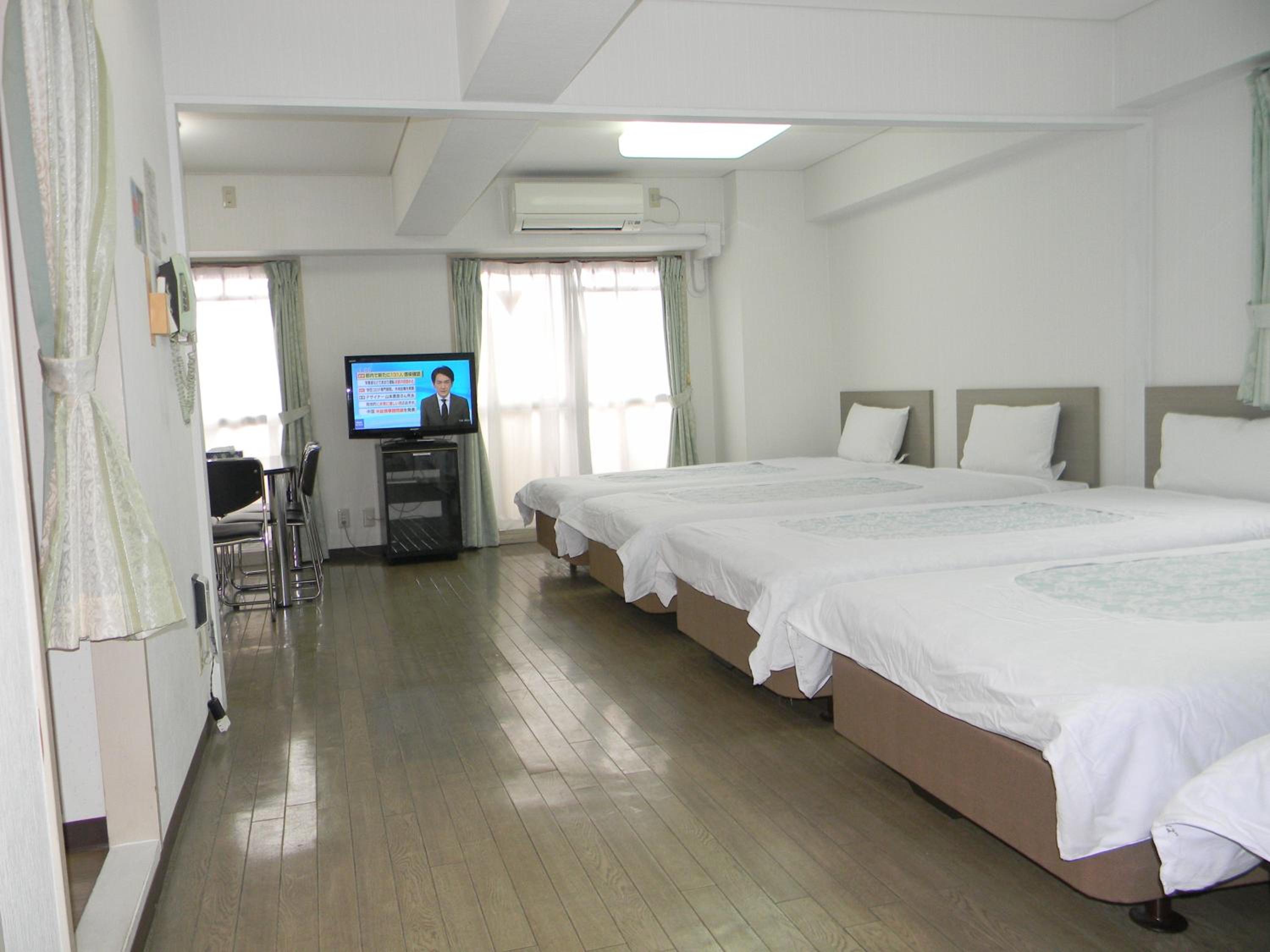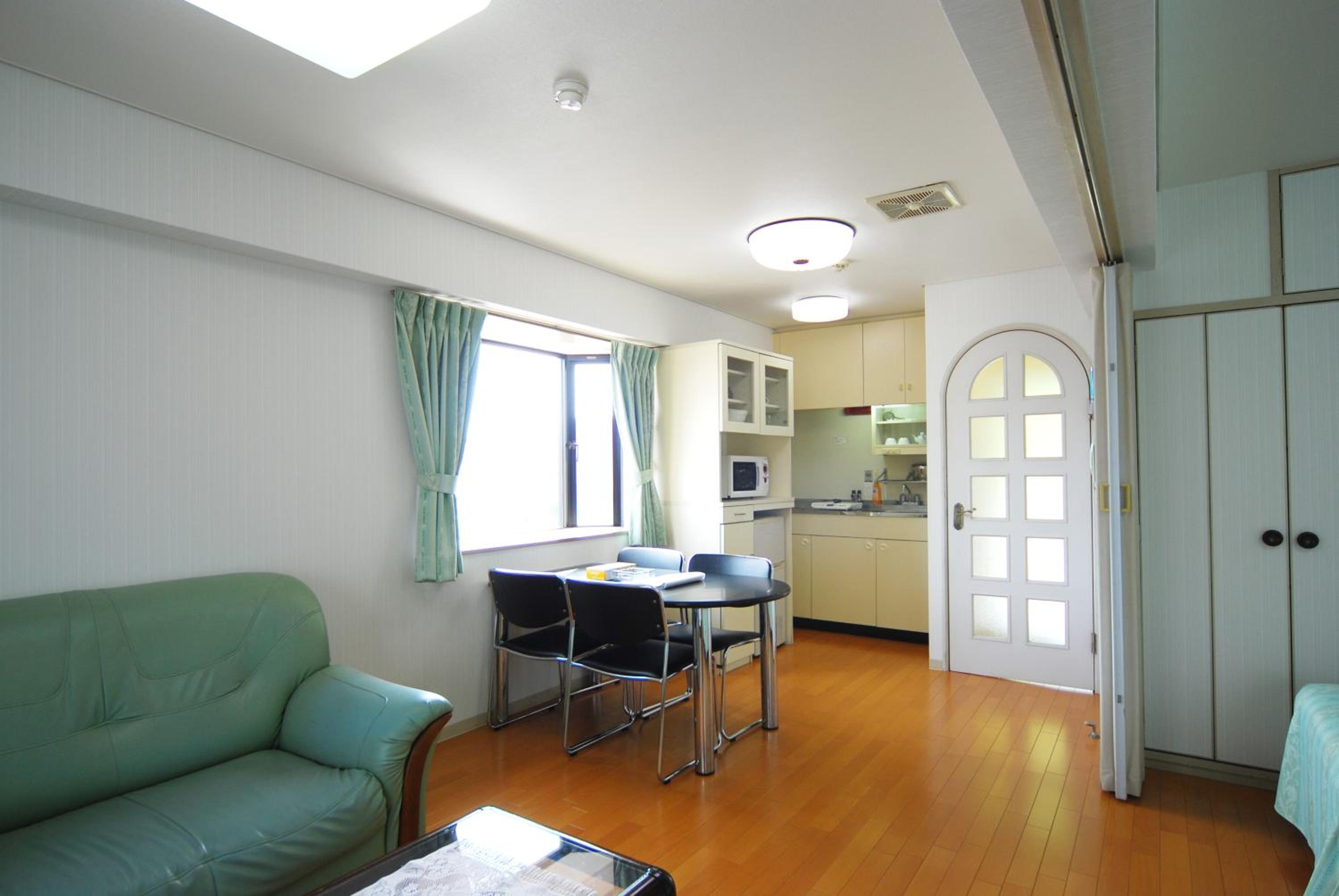 Convenient Amenities: Weekly Green In Namba offers fully furnished apartments with kitchenettes, allowing guests to prepare their meals. The air-conditioned rooms include a dining area and fridge, providing a comfortable stay.