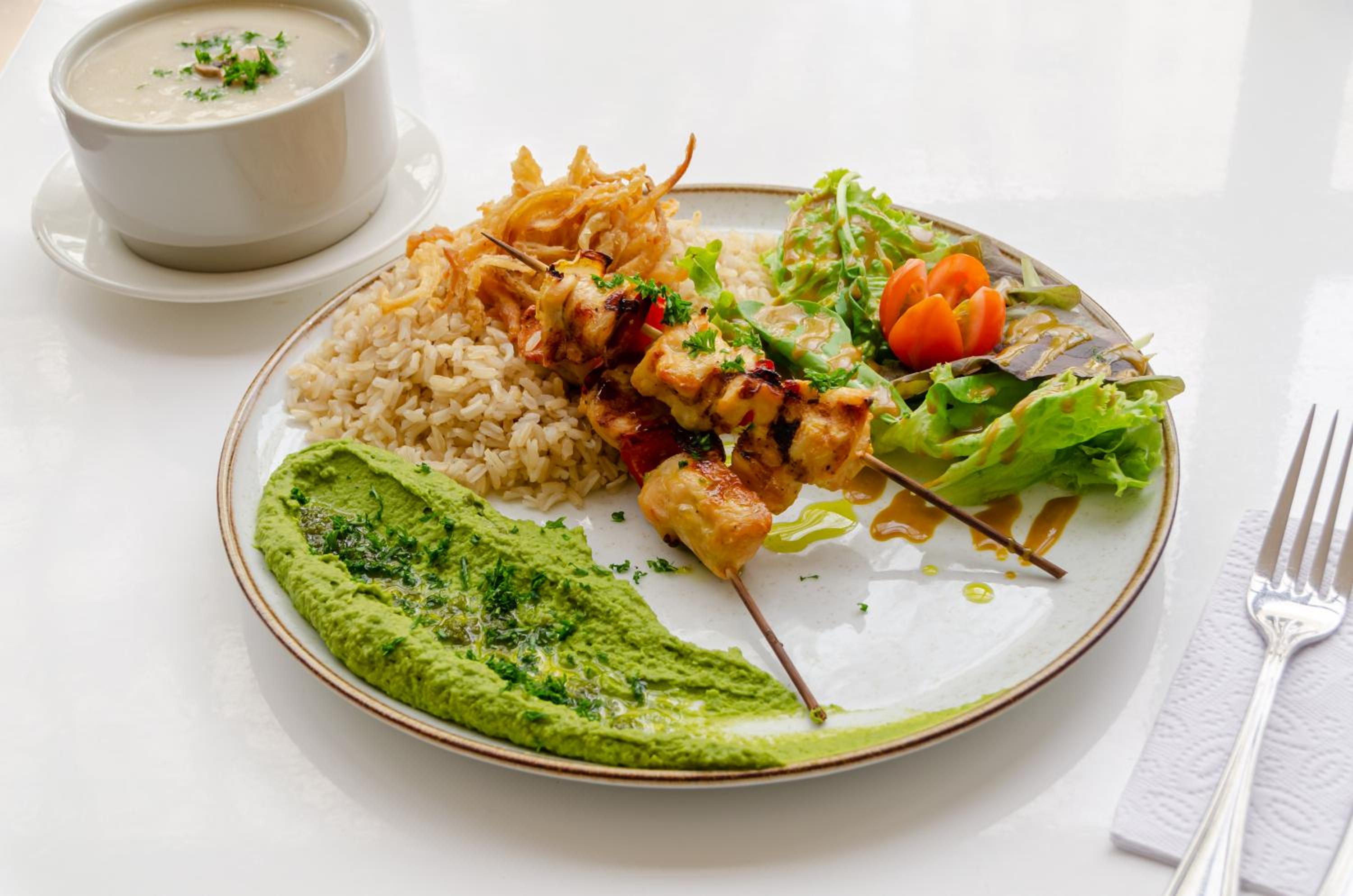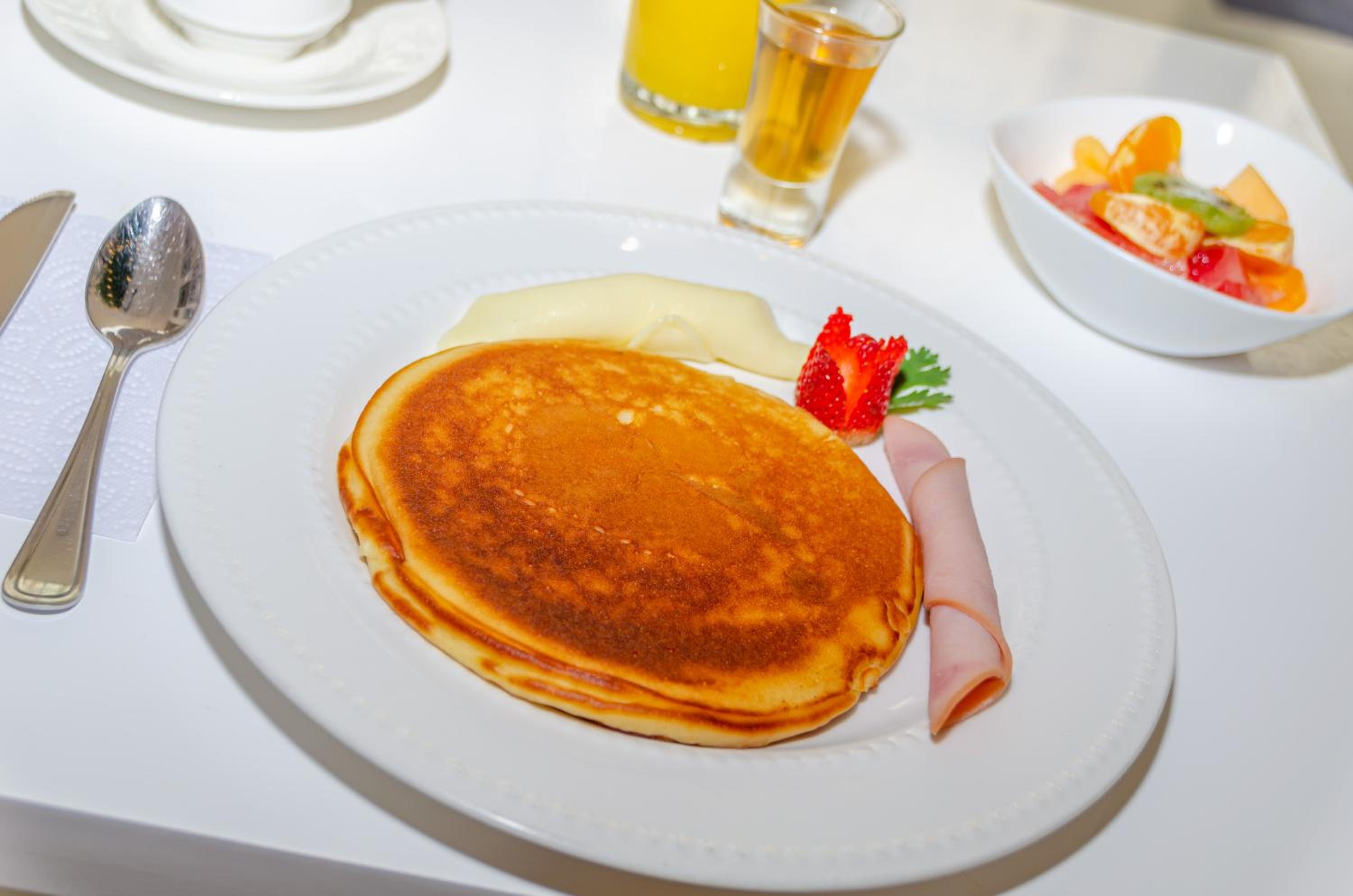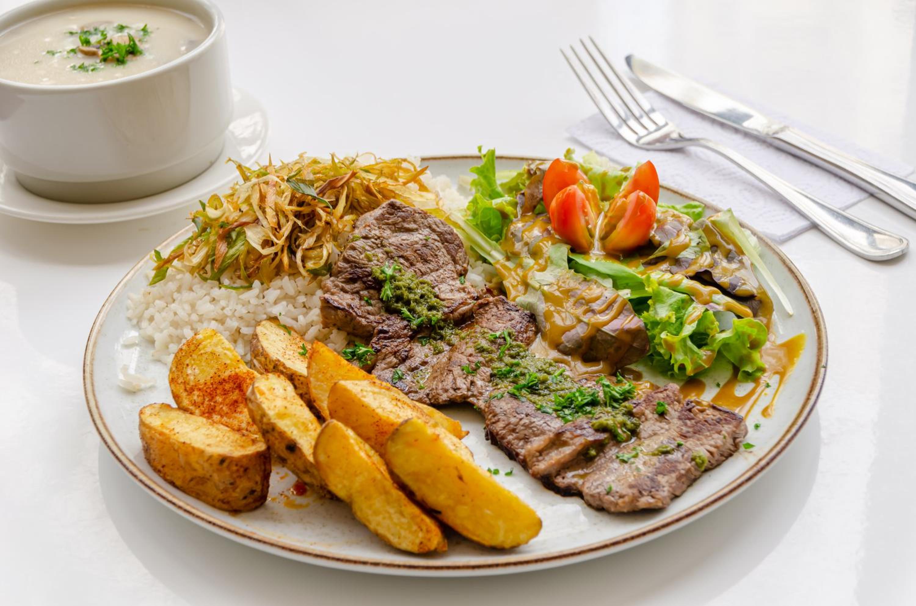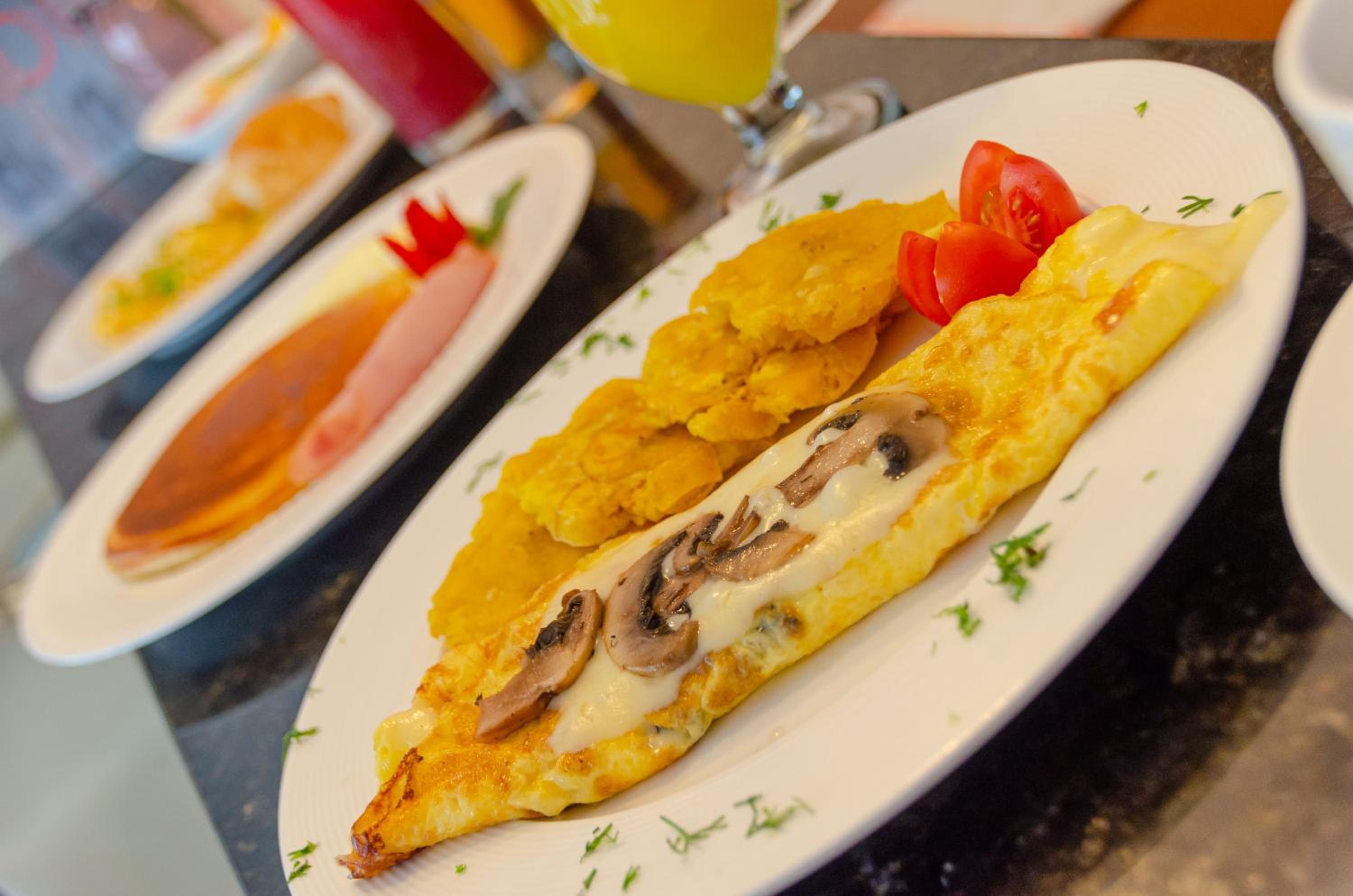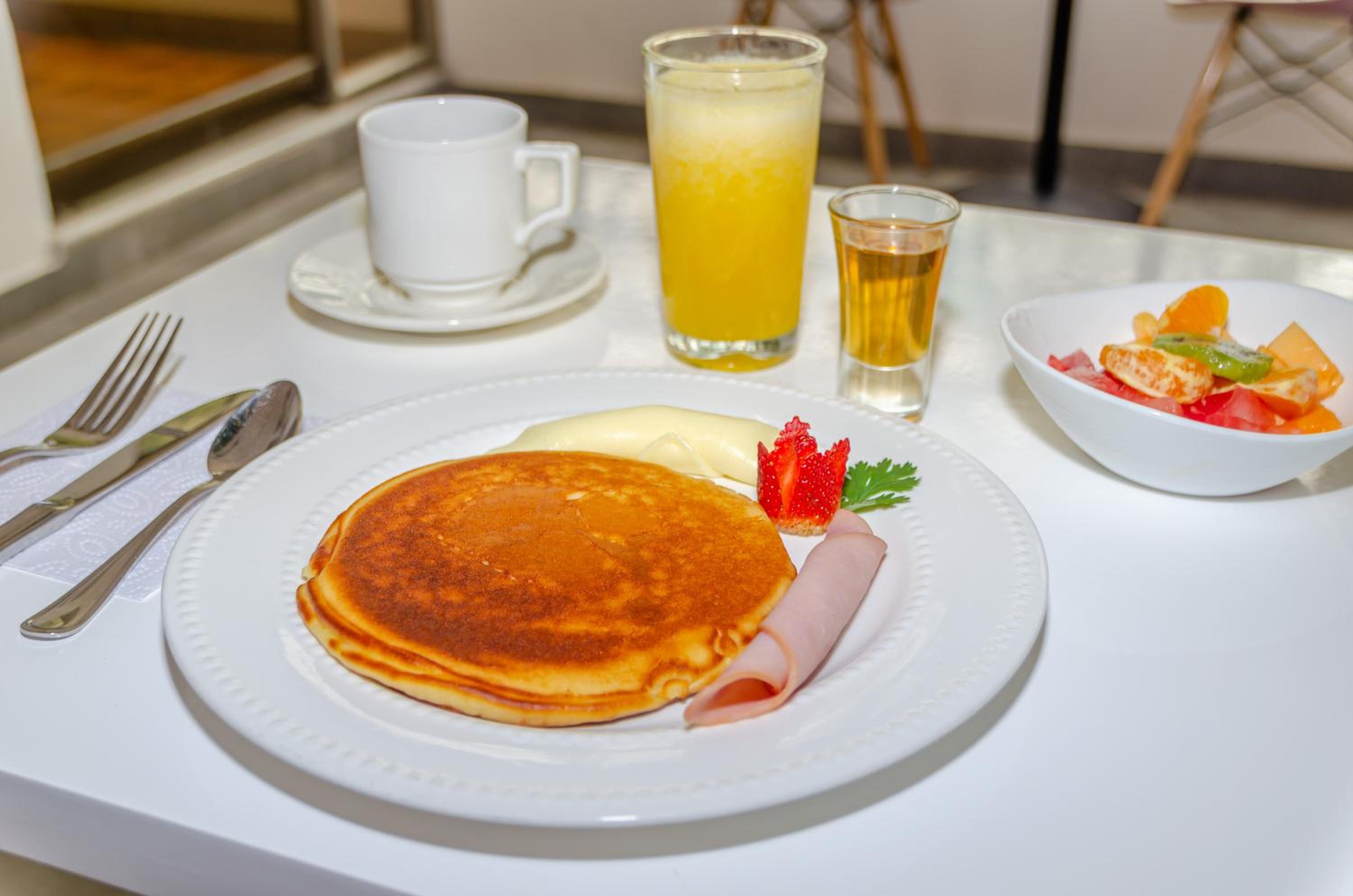Banheiro pequeno, café da manhã ruim, poucas opções e vem o prato montado.
