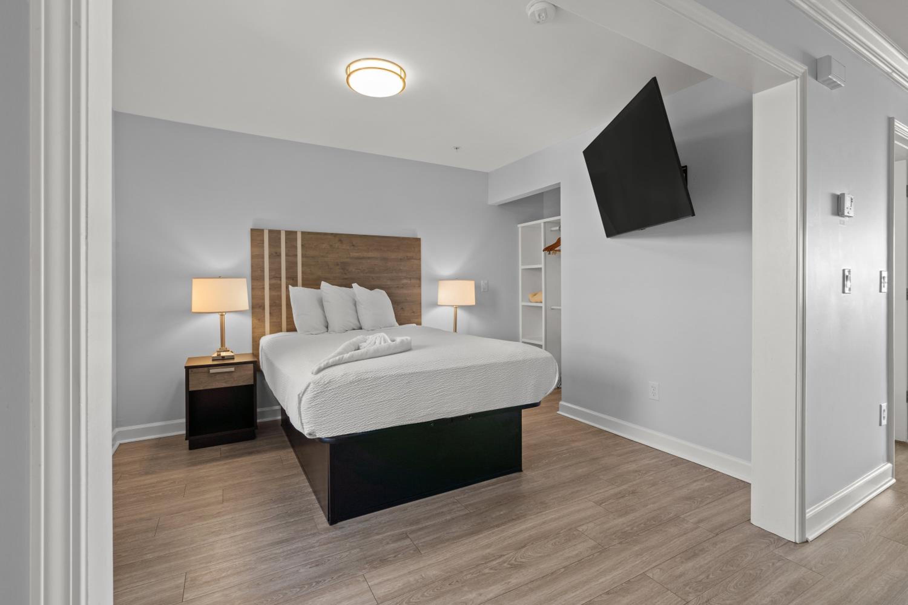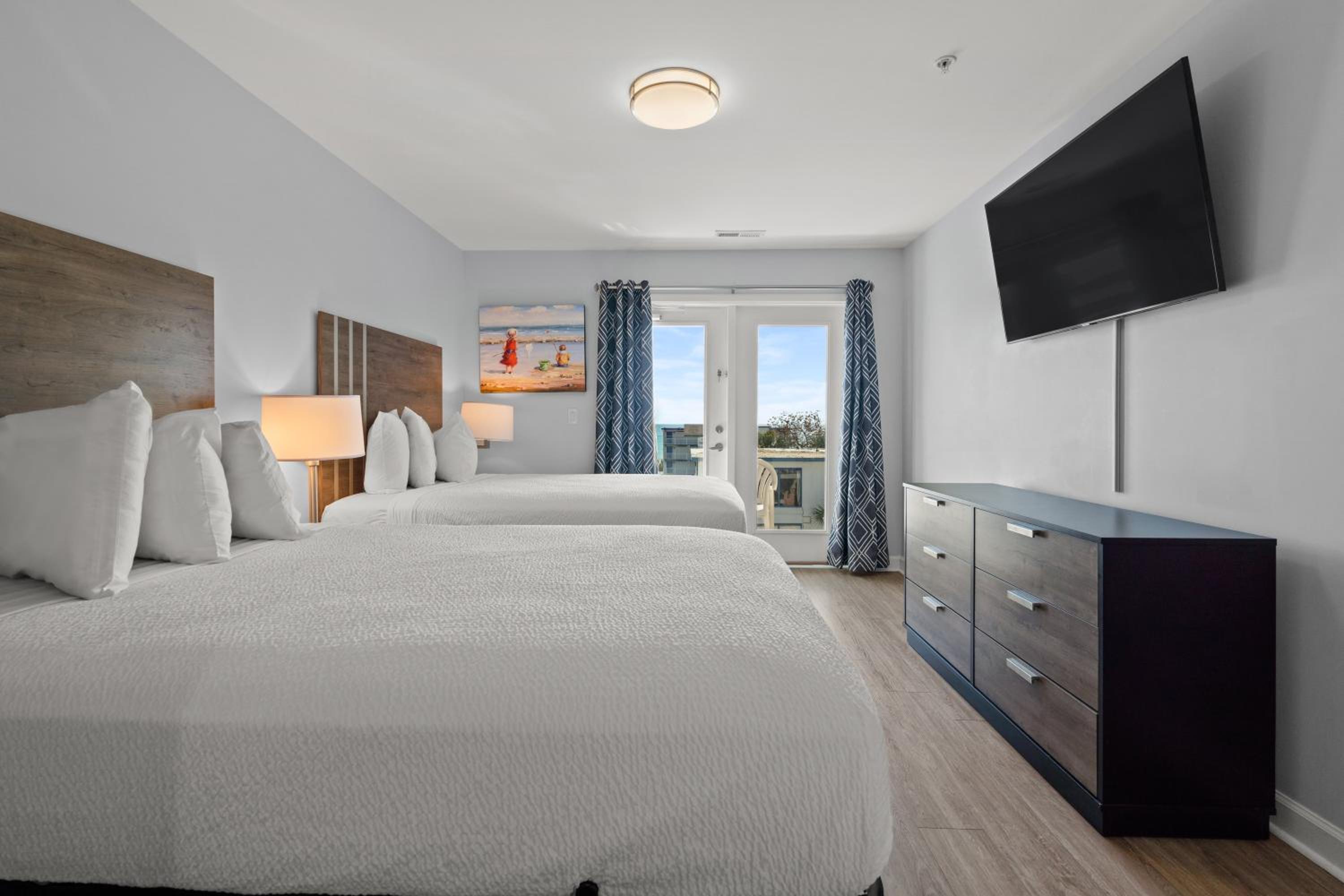 This room was perfect for my mom’s birthday! Renovated , upgraded appliances, beds were comfortable! Very spacious for 4 adults, a 5 month old and a 7 year old. It’s a partial ocean front because the ocean is across the street we were on the 3rd so we seen it between the vacant hotel! I really didn’t like how you have to check in at landmark resort! Without known until you pull up and read the sign on the door! We didn’t get any water park or pool wrist bands after front desk stated it would be in the room! They do not provide paper towels , a dish cloth or extra wash cloths.. you only get one! They do not have an ice maker and the ice trays they provide sucks! Outside wasn’t noisy just heavy foot traffic from the local night walkers and salesman’s! IFYKYK! That was our entertainment! Lol but it was NOT a problem. Small things to a giant , overall nice room , I hope next time we will get to experience the waterpark! But I will definitely stay again because it’s a very nice room and area!