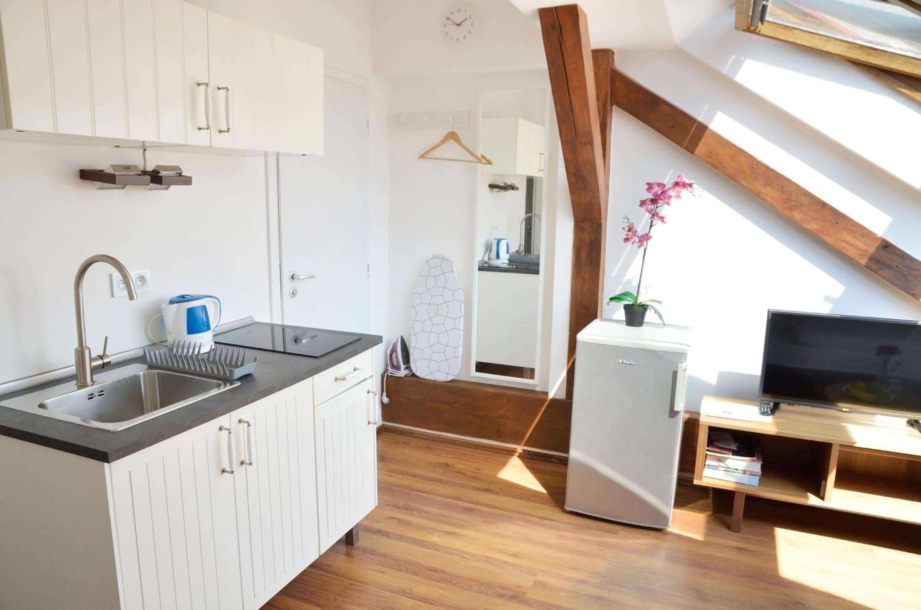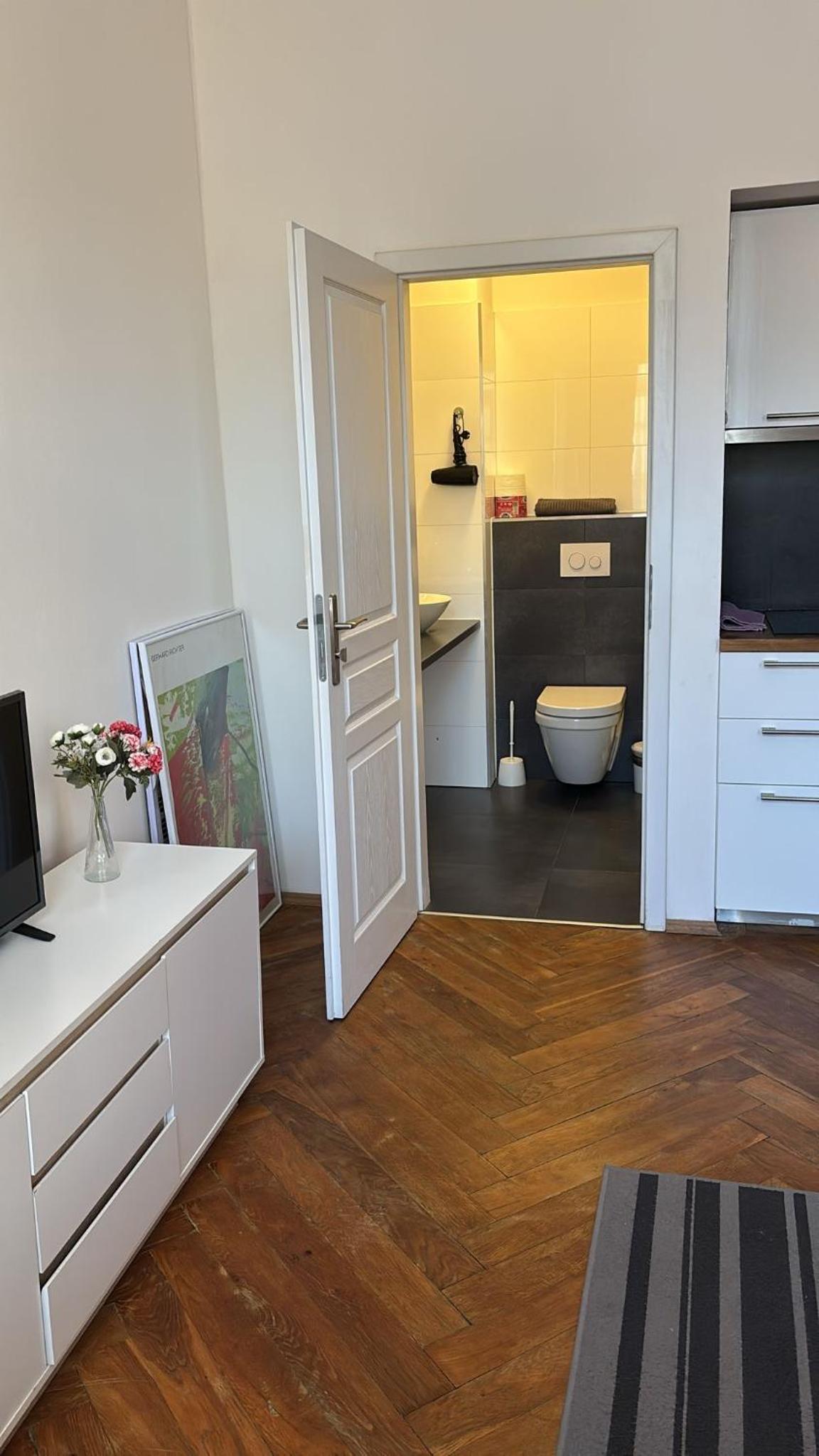 La amabilidad de Jan nos dejo mucho que desear. Viajábamos mi pareja y yo, debido al mal temporal en Praga se nos retraso el vuelo cuatro horas. Inmediatamente se lo comunicamos a Jan y nos informo que existían tarifas nocturnas para la entrega de llaves las cuales no estaban publicadas en booking. Llegamos antes de las 23.00 horas y debido a la extorsión ejercida por Jan, a pesar de que nosotros le pedimos que ese recargo se nos hiciese a través de la plataforma de booking, nos vimos obligados a buscar un cajero para retirar el dinero porque la persona que vino a entregar las llaves nos dijo que se tenia que ir ya. Y no nos ofreció ninguna otra alternativa. El apartamento cumple las expectativas de ubicación, excepto por el hecho de que no es un apartamento, si no una habitación con vitrocerámica.