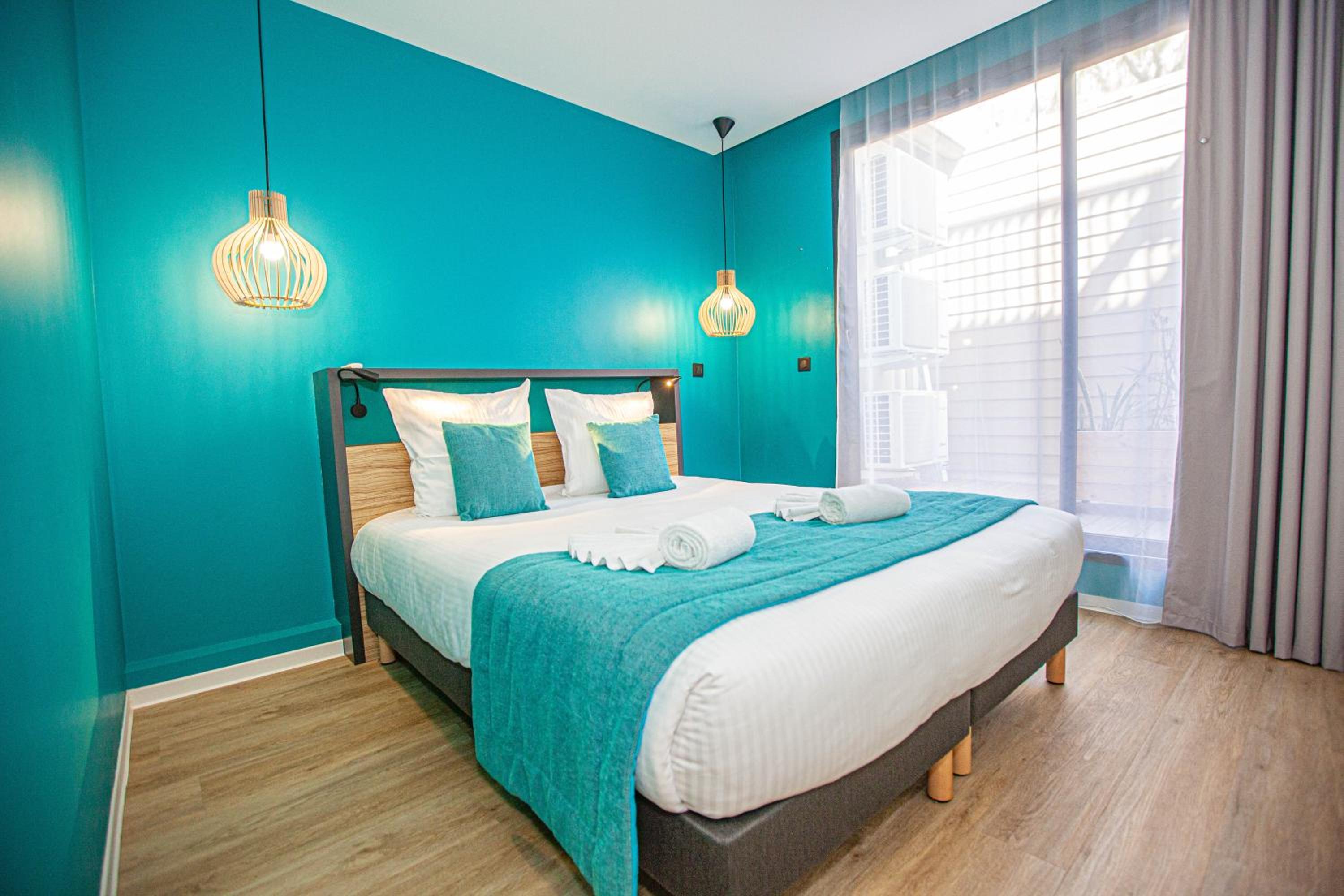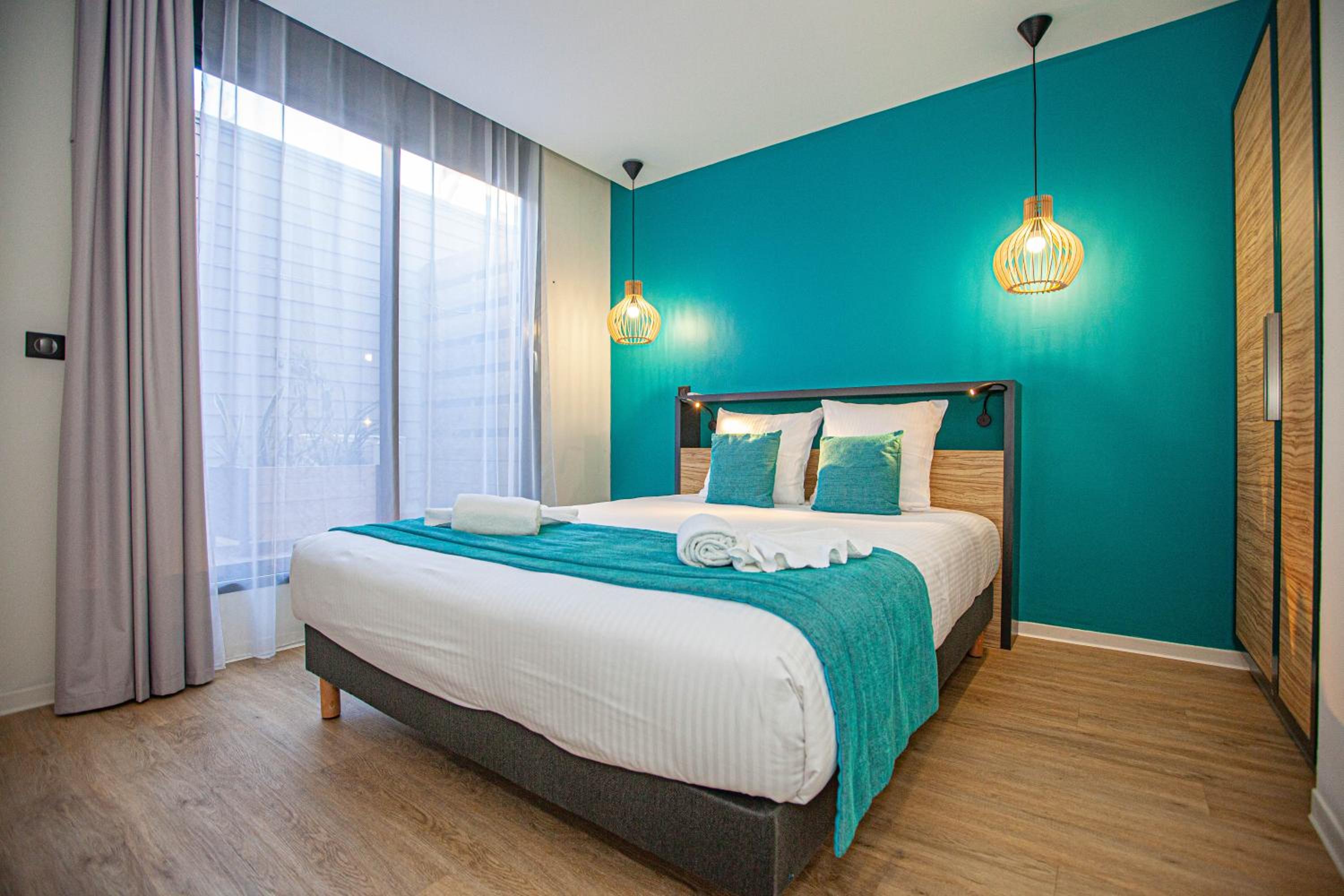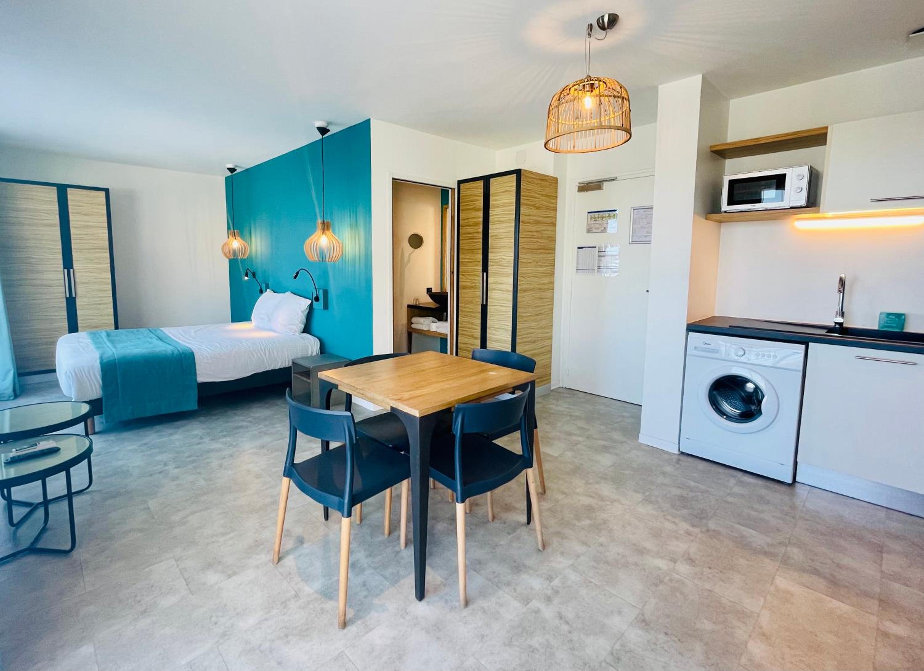 Appartement donnant sur la route, des clients de l’hôtel bruyants, manque de transat près de la piscine, parking payant , chambre de l’appartement un peu vieillot par rapport aux autres pièces