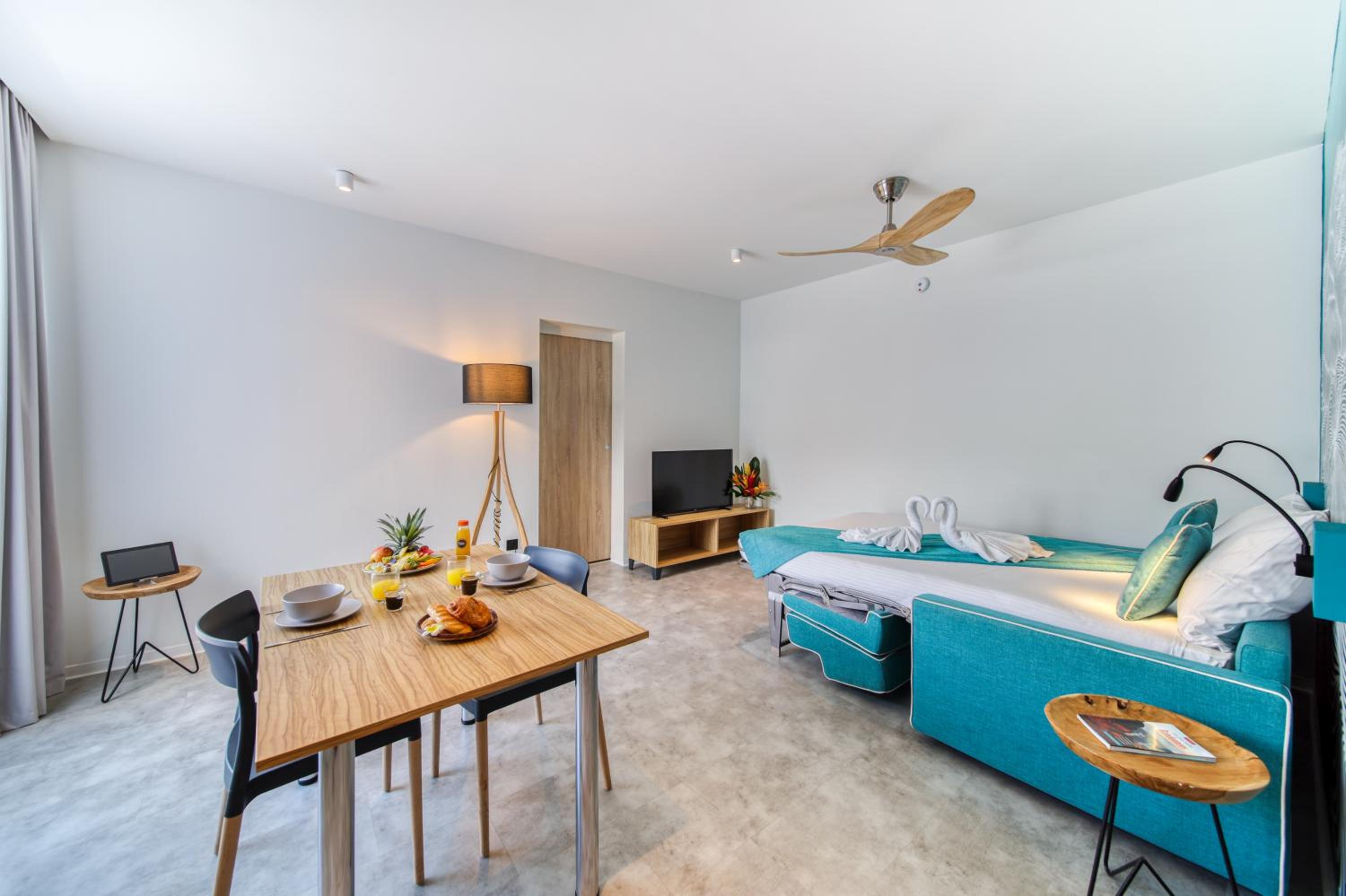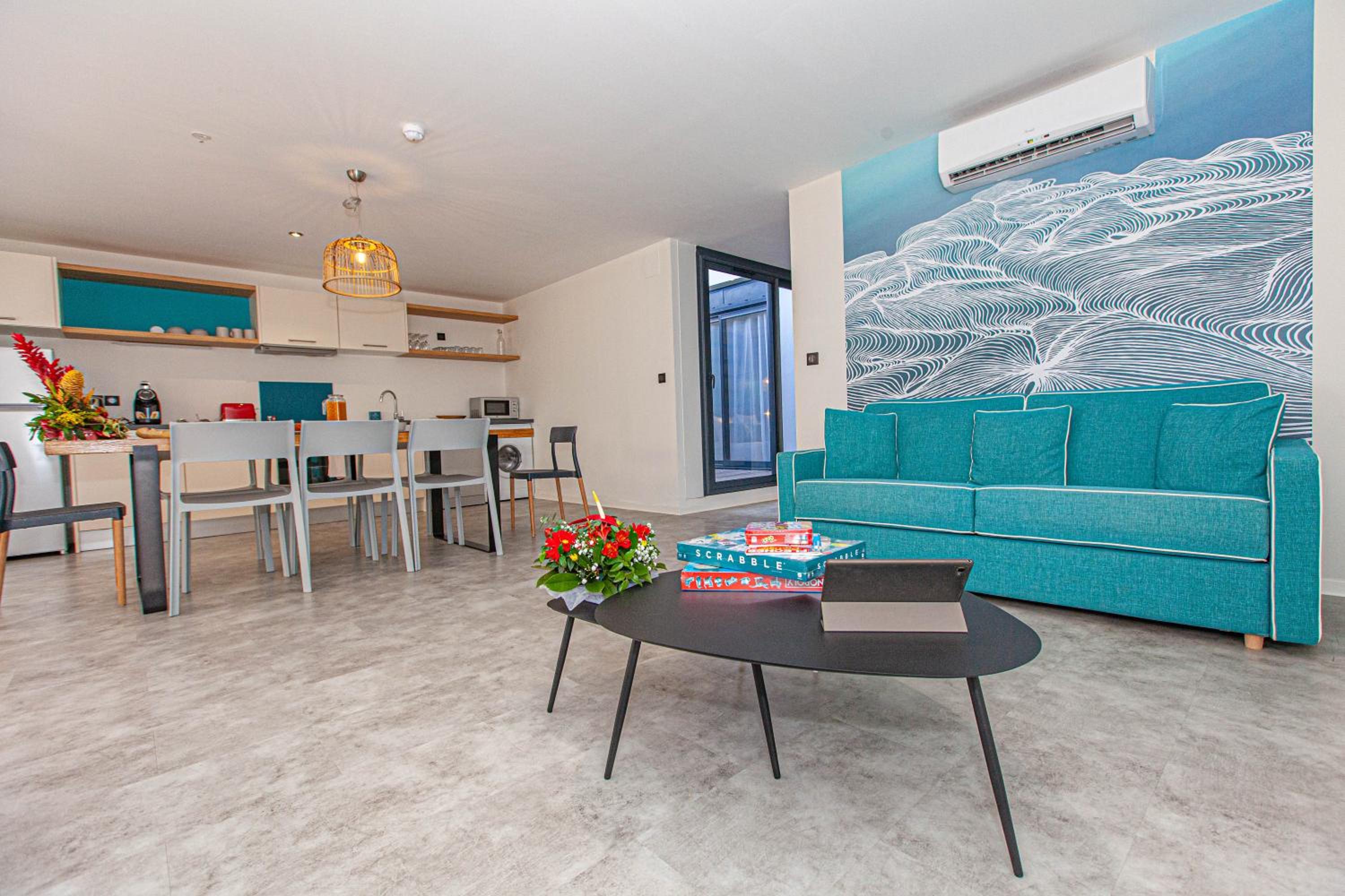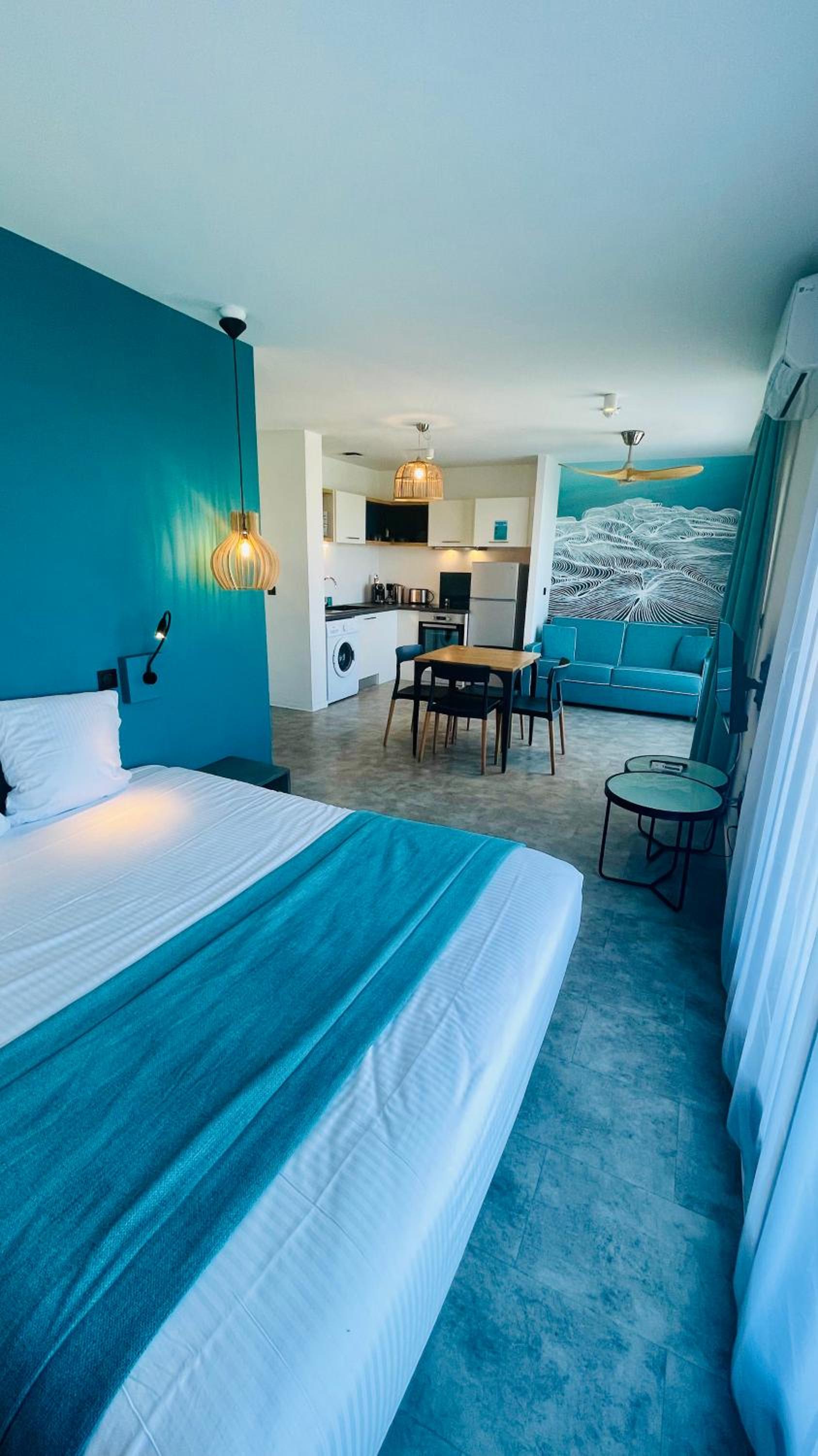 Appartement donnant sur la route, des clients de l’hôtel bruyants, manque de transat près de la piscine, parking payant , chambre de l’appartement un peu vieillot par rapport aux autres pièces