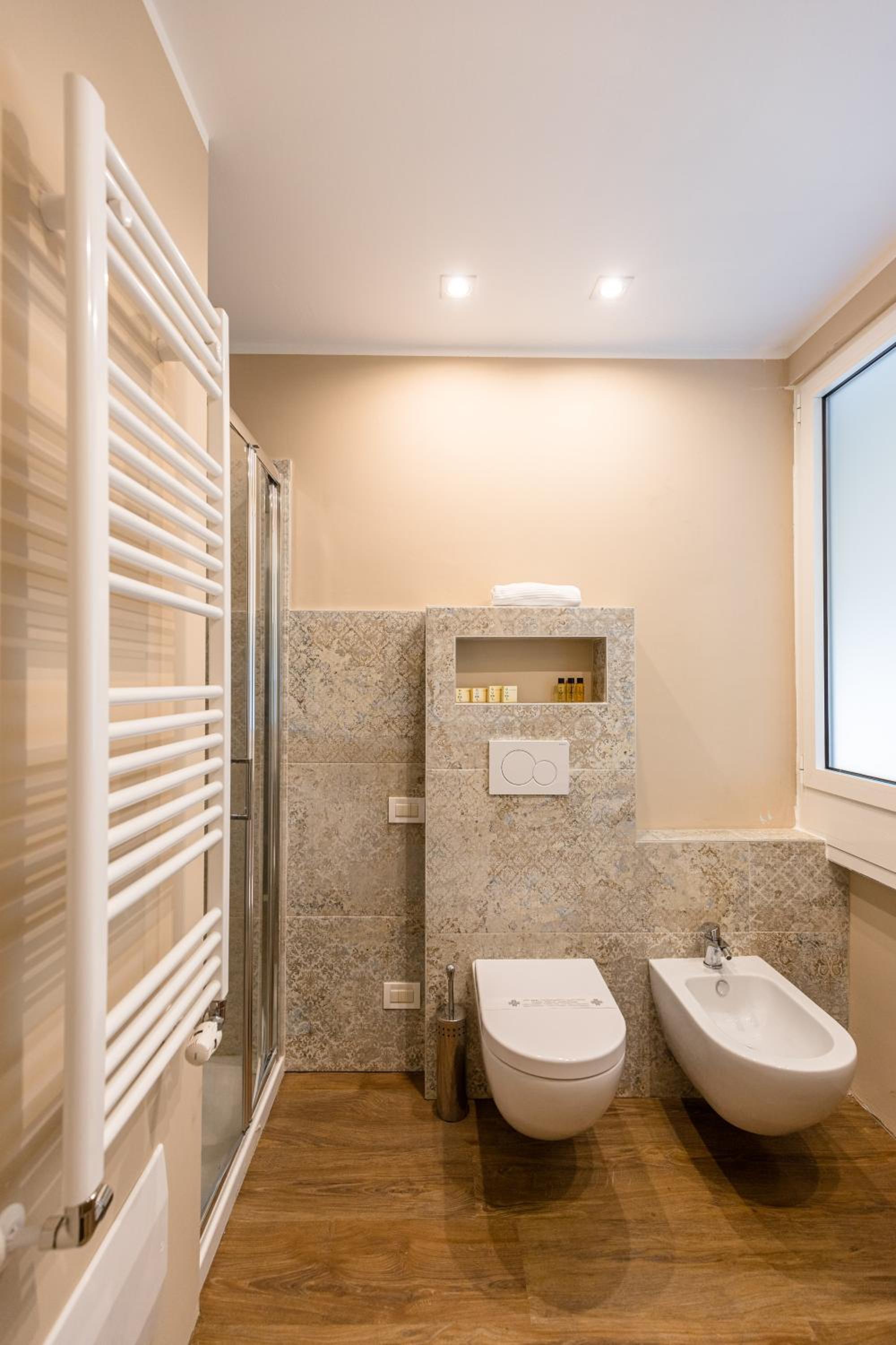 The hotel features 2 parkings: one is located in front of the hotel at cost of Eur 12 per day, reservation is needed.