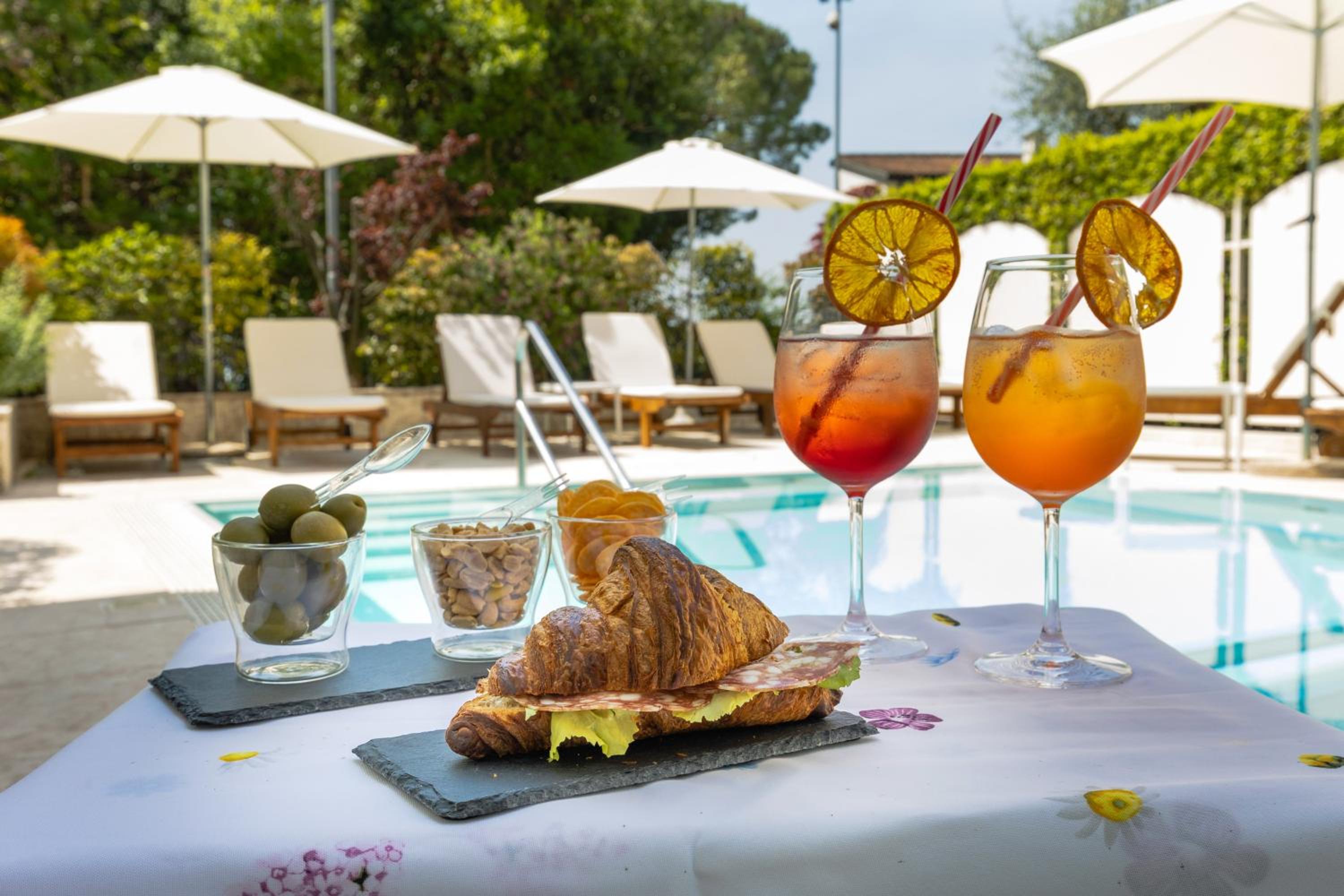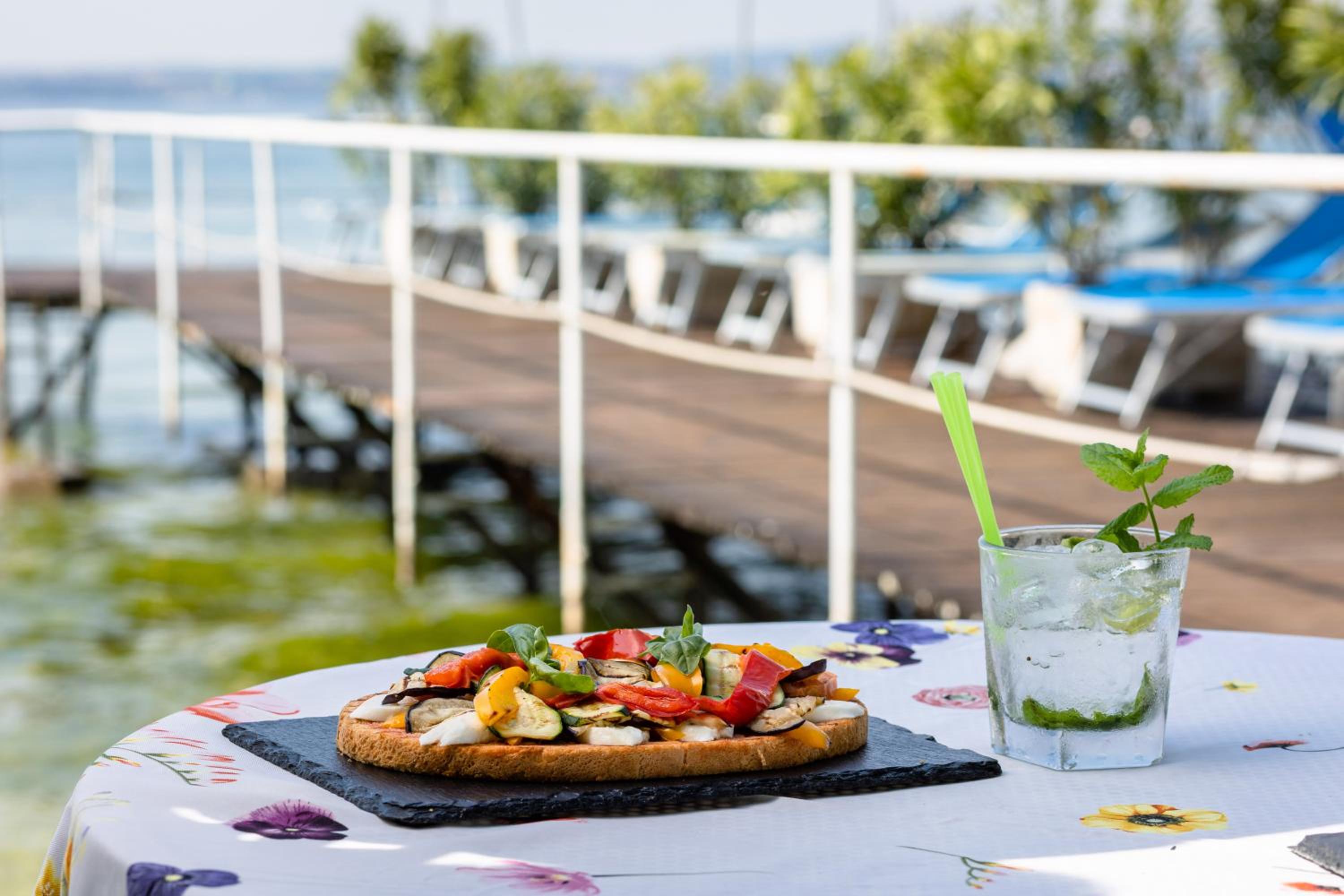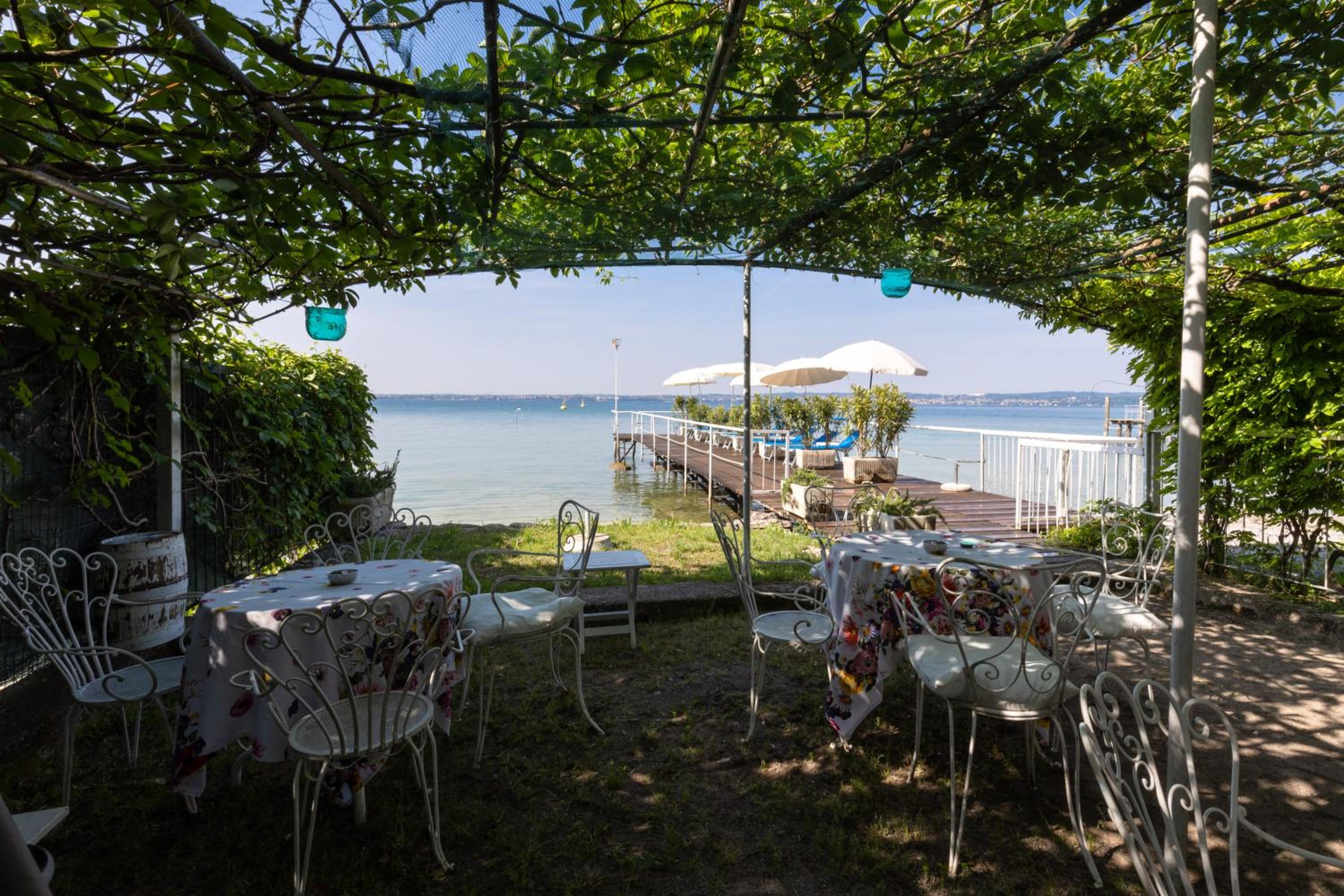 Surrounded by ancient olive trees, guests can relax by the swimming pool, stroll through the garden, or enjoy the picturesque pier on Lake Garda.