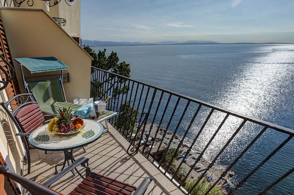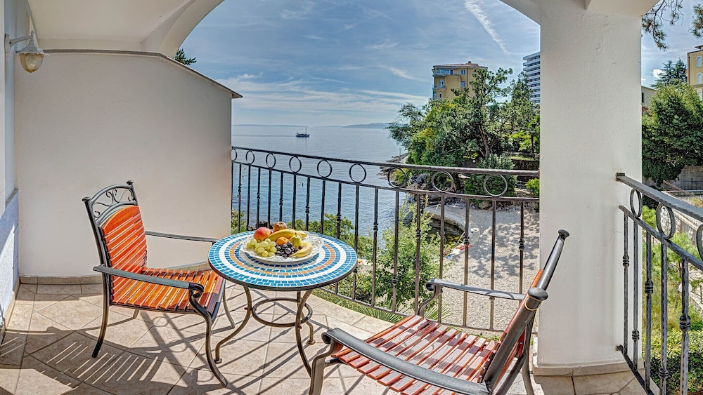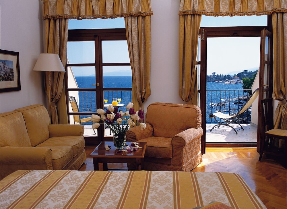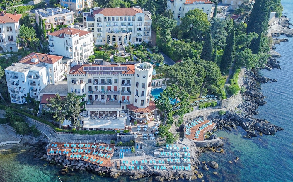 Отель расположен в замечательном месте, на променаде лунгомаре. Вправо пойдешь - 10 минут придешь в Опатию, влево- в деревеньку Волоско.Сам отель состоит из нескольких зданий. Мы жили в здании N1 в великолепном номере с видом на море. Номер просторный, с довольно большим балконом, правда чтобы выйти на него надо было либо протискиваться в неполностью открытую дверь (Из-за встроенного рядом шкафа дверь открывалась не полностью) или открывать обе дверцы, но тогда возникает маленькая проблема. Кондиционер сразу выключается и, чтобы его включить надо закрыть обе двери на все защелки. В остальном к номеру претензий нет. Завтраки и ужины потрясающие. На завтрак можно заказать блюда из яиц , плюс шведский стол, стандартный для европы. В меню есть также тонкие блинчики либо с ягодами, либо с шоколодам. Очень рекомендую. Ужин- по меню из 5 блюд. За неделю ни одно из блюд не повторилось. Все вкусно, красиво и с великолепным видом на море. Практически каждый вечер живая музыка. Великолепный бассейн с морской водой и с достаточно большой территорией с лежаками, а вот сам пляж оставляет желать лучшего. Небольшая платформа с тесно стоящими друг к другу лежаками. Большой плюс, что не надо ничего занимать заранее. Каждое утро надо подойти на рецепшен и на плане выбрать себе лежаки на следующий день, очень удобно.Спуск в воду по лестнице, море потрясающее. Отель в основновном для пожилых австрийцев, всё на немецком языке, по запросу есть англ.яз. В СПА не ходили. Мы обязательно вернемся.