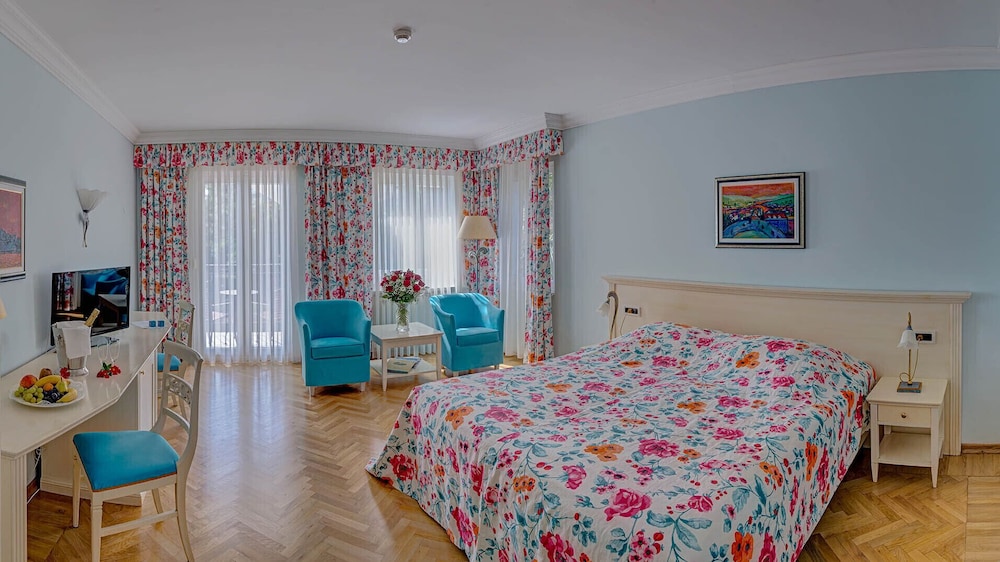 Wunderschönes historisches Gebäude mit paradiesischem Garten, mehrere Wellnesslandschaften, eigener Privatstrand, wunderschöne komfortable Zimmer mit Balkonen und Meeresblick, Gratis E-Tankstelle, sehr freundliches deutschsprachiges Personal, fantastisches Frühstücksbuffet, hochwertige Abendgastronomie im Preis inklusive. Abendprogramm mit klassischer Musik, Schlager etc. Urlaub wie zu Kaisers Zeiten 👌