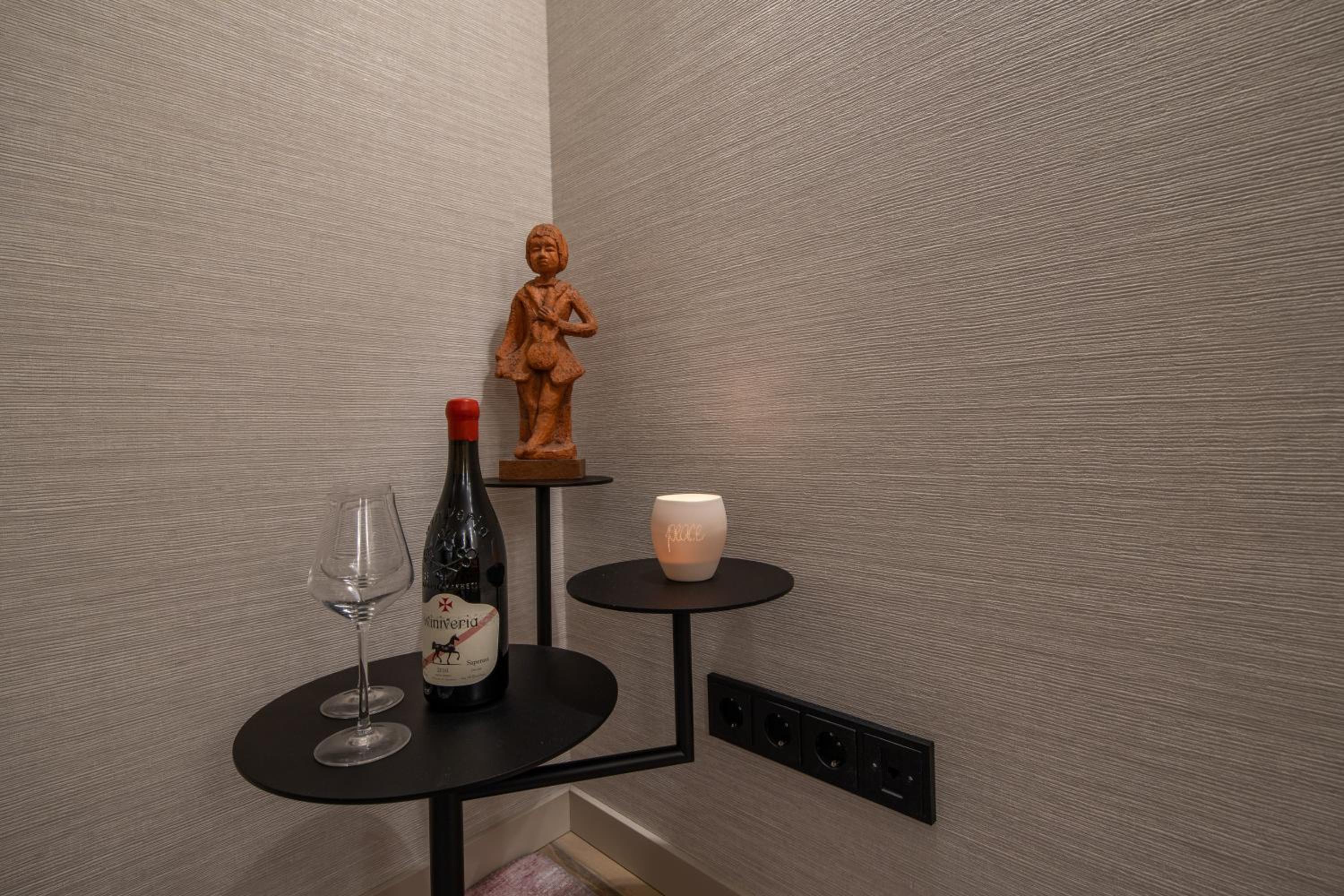 Le personnel est au petit soin, souriant, sympa. Le minibar avec des boissons et snack compris dans le prix, les petits chocolats sur les oreillers, le petit déjeuner avec des produits frais et très goûteux! Le lit très confortable. Bonne isolation phonique. Nous avons eu une chambre au rdc avec un mur commun avec le salon/ salle de petit déjeuner mais nous n’avons pas été dérangés malgré notre crainte.