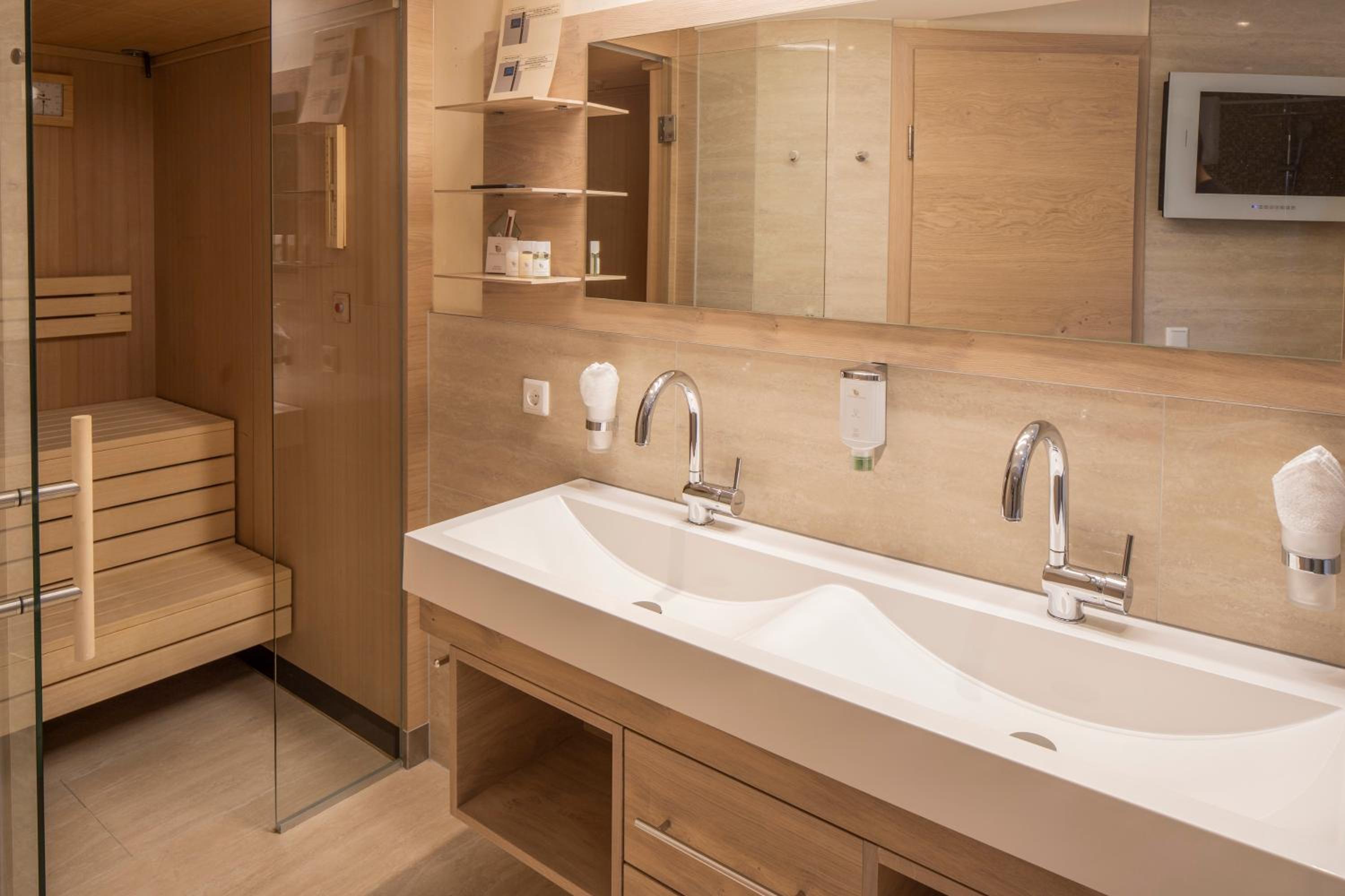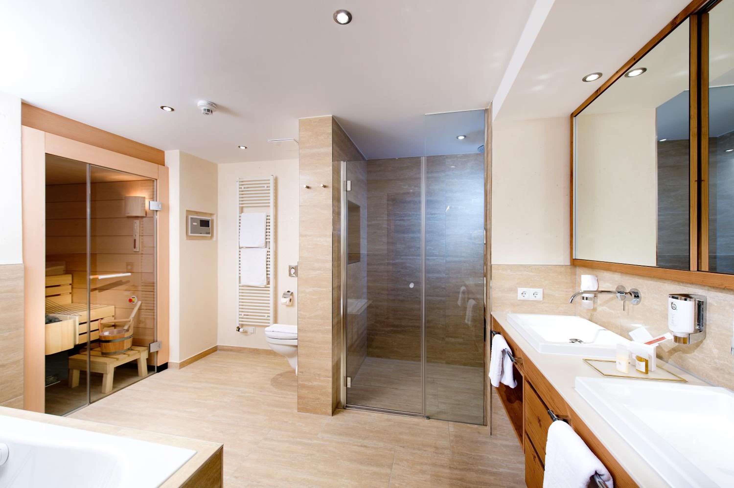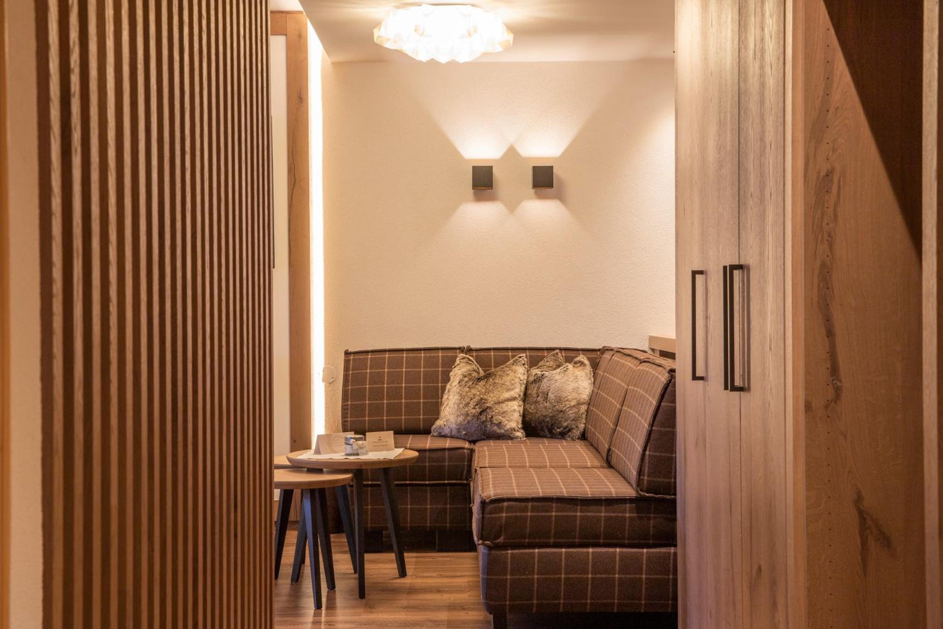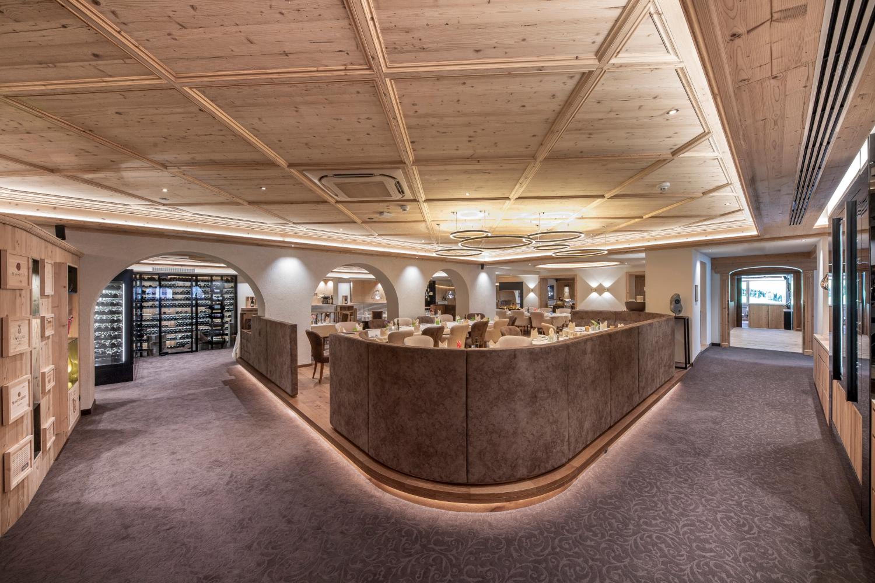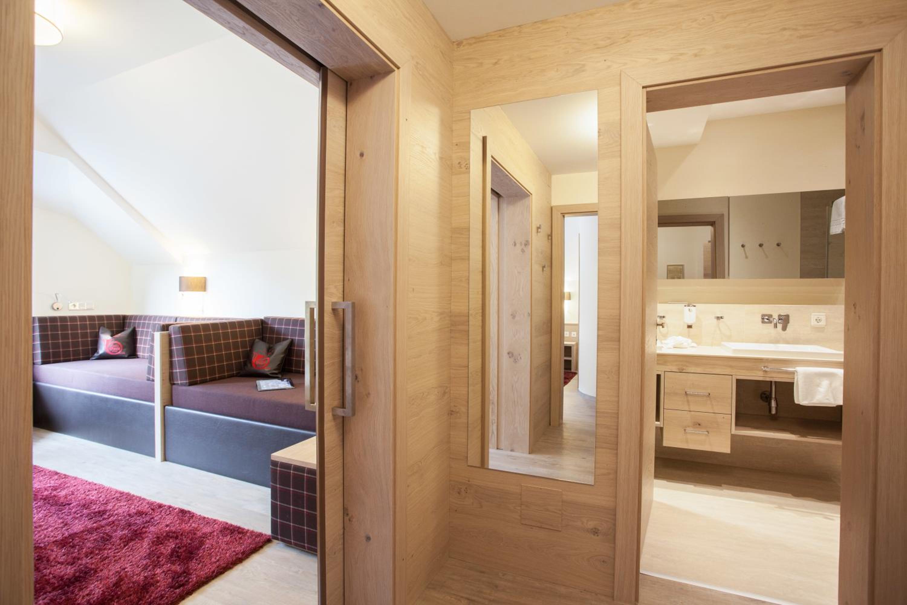 The hotel is conveniently located a few minutes walk from the gondola station. Our room was very spacious and had plenty of storage space. The bed was very comfortable and the room was spotlessly clean. The food in the restaurant was delicious and extremely well presented and all the staff members we met were very friendly, helpful and professional. The hotel bar area was comfortable and a nice area to relax in after skiing! The hotel pool was lovely and the spa area excellent. The ski/boot room was also of a very high standard and ski passes can be bought at the hotel reception. Ski equipment can be hired at Brundl Sports, opposite the hotel. The hotel even has its own ski guide!