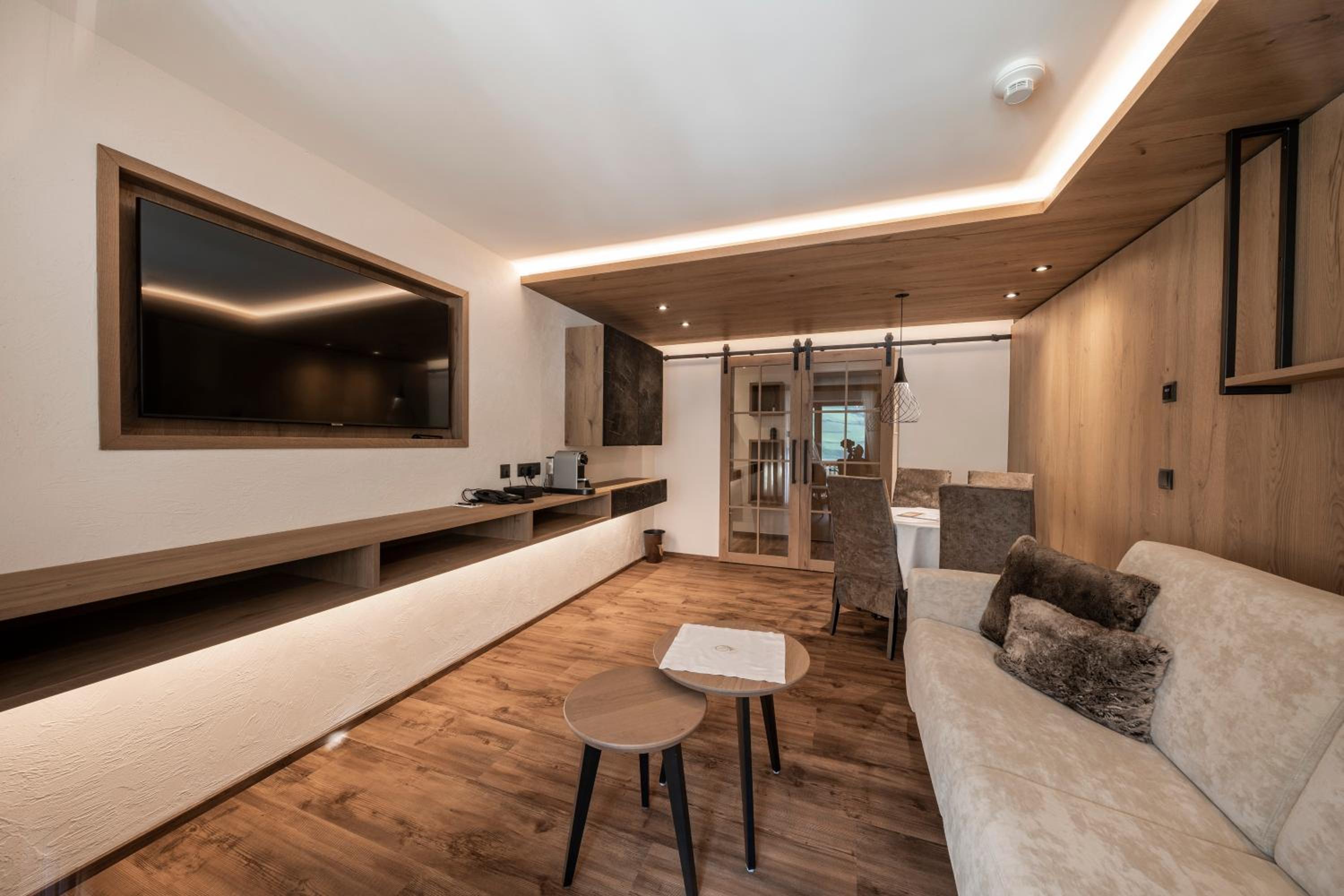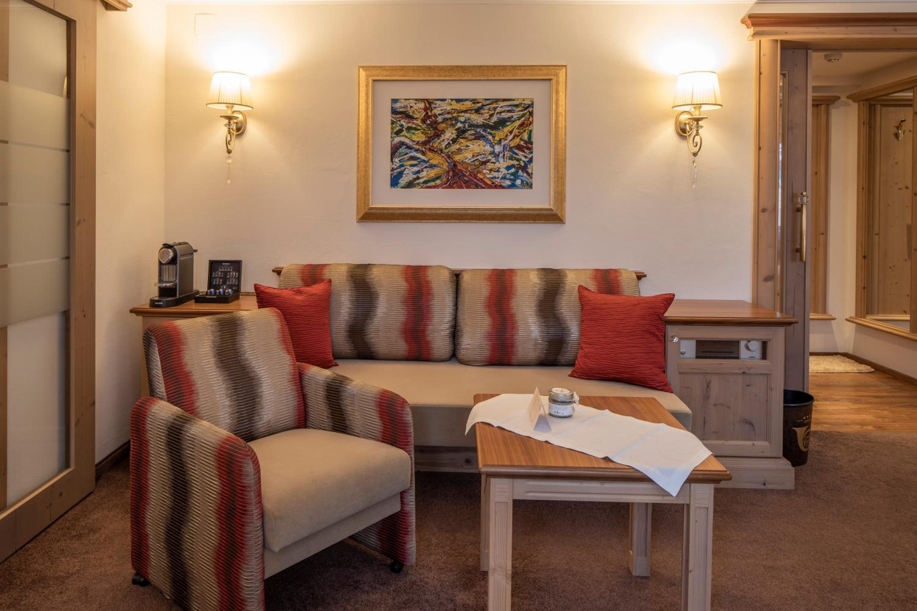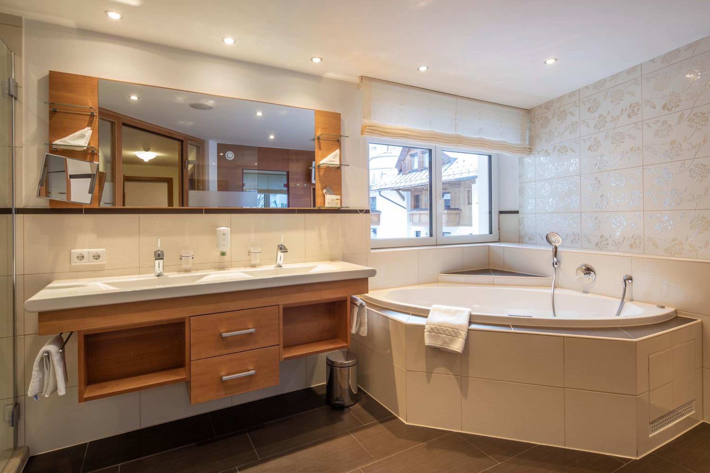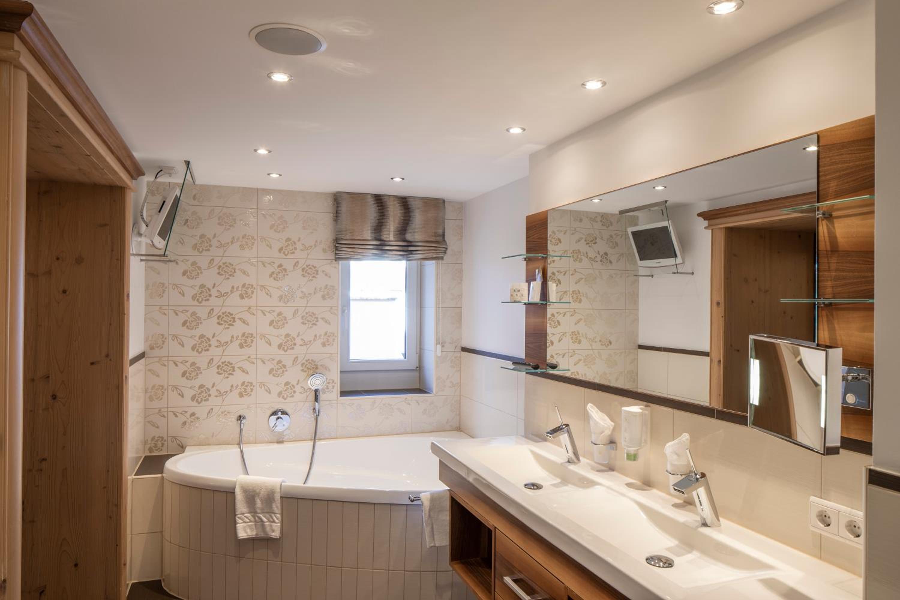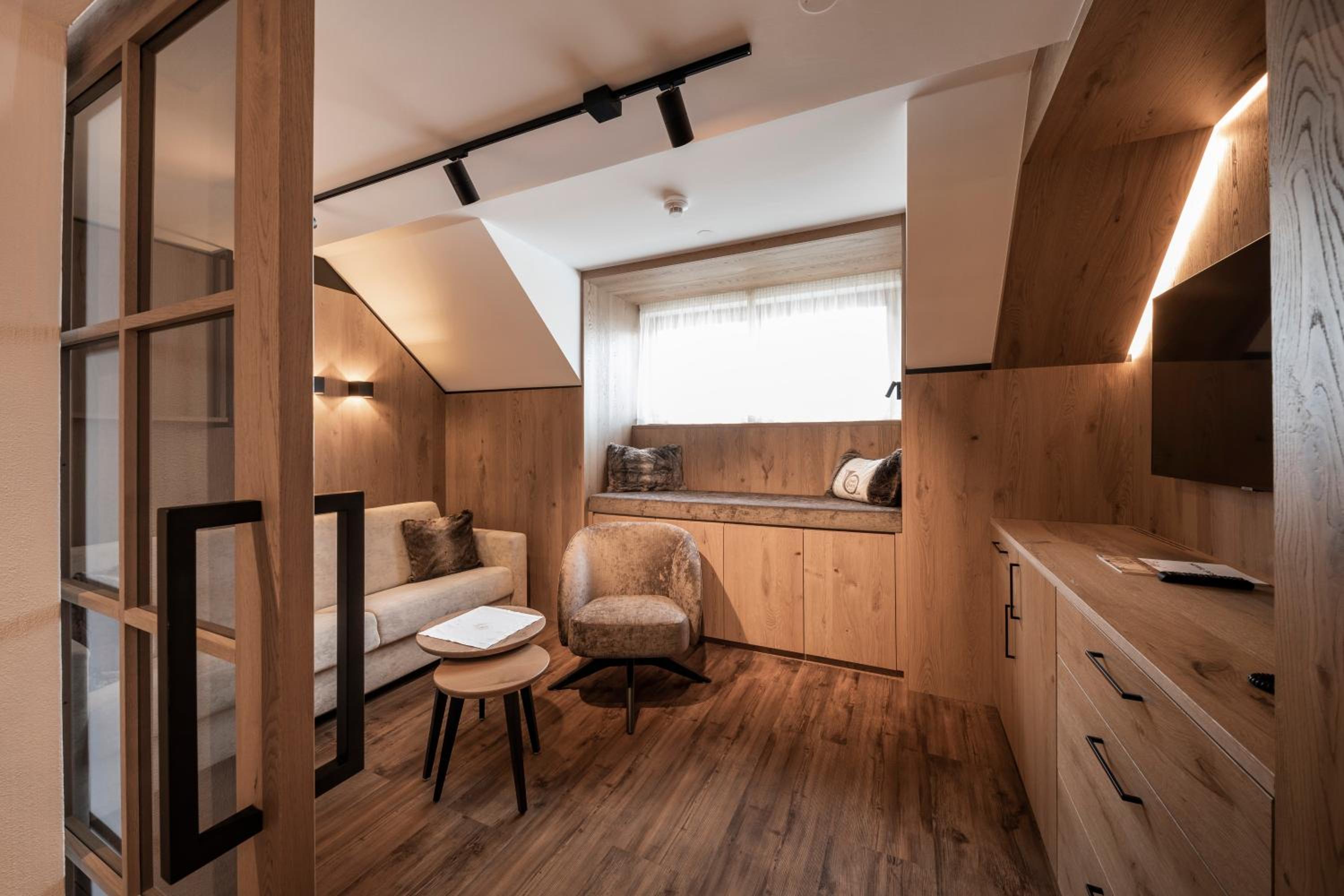 The hotel is conveniently located a few minutes walk from the gondola station. Our room was very spacious and had plenty of storage space. The bed was very comfortable and the room was spotlessly clean. The food in the restaurant was delicious and extremely well presented and all the staff members we met were very friendly, helpful and professional. The hotel bar area was comfortable and a nice area to relax in after skiing! The hotel pool was lovely and the spa area excellent. The ski/boot room was also of a very high standard and ski passes can be bought at the hotel reception. Ski equipment can be hired at Brundl Sports, opposite the hotel. The hotel even has its own ski guide!
