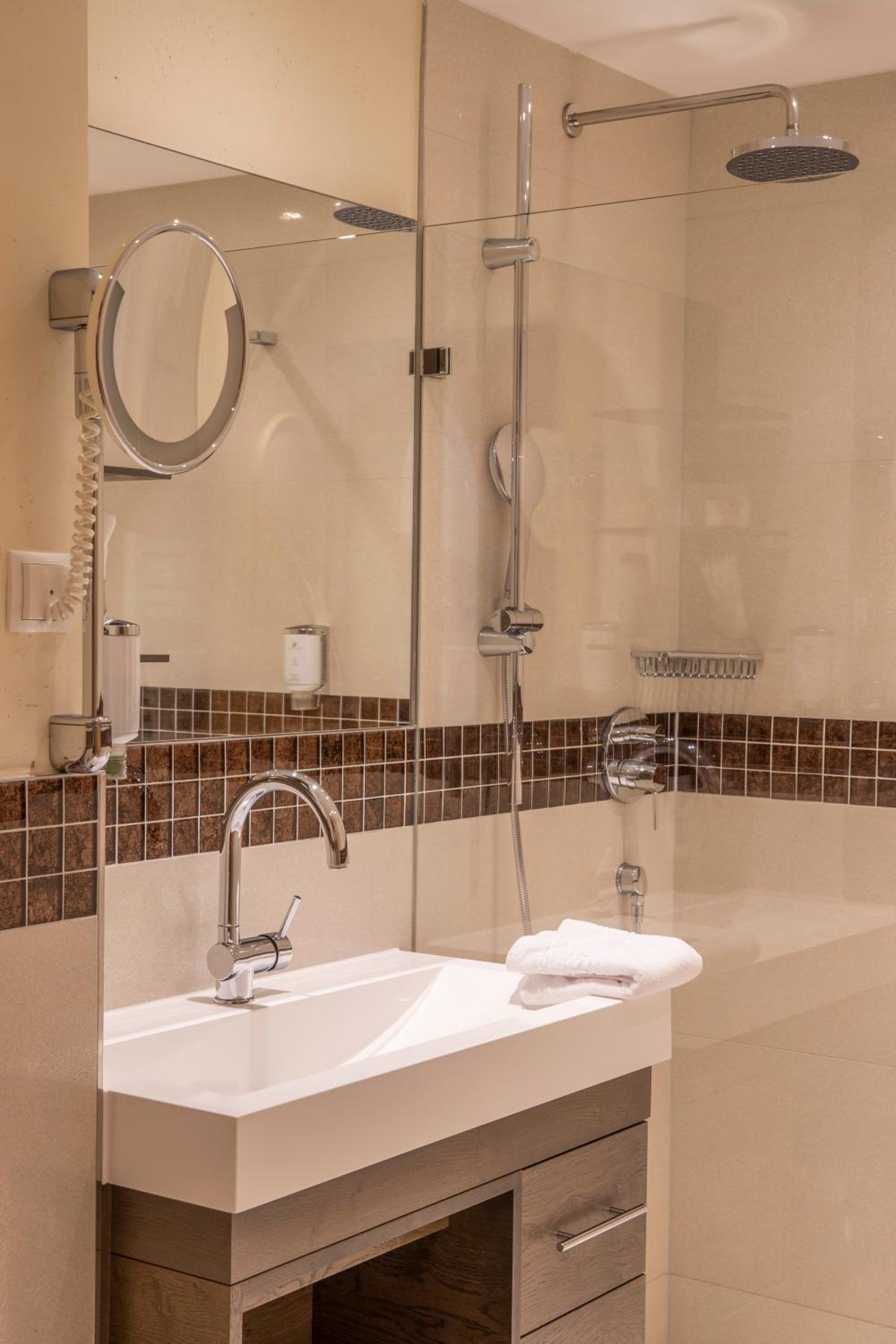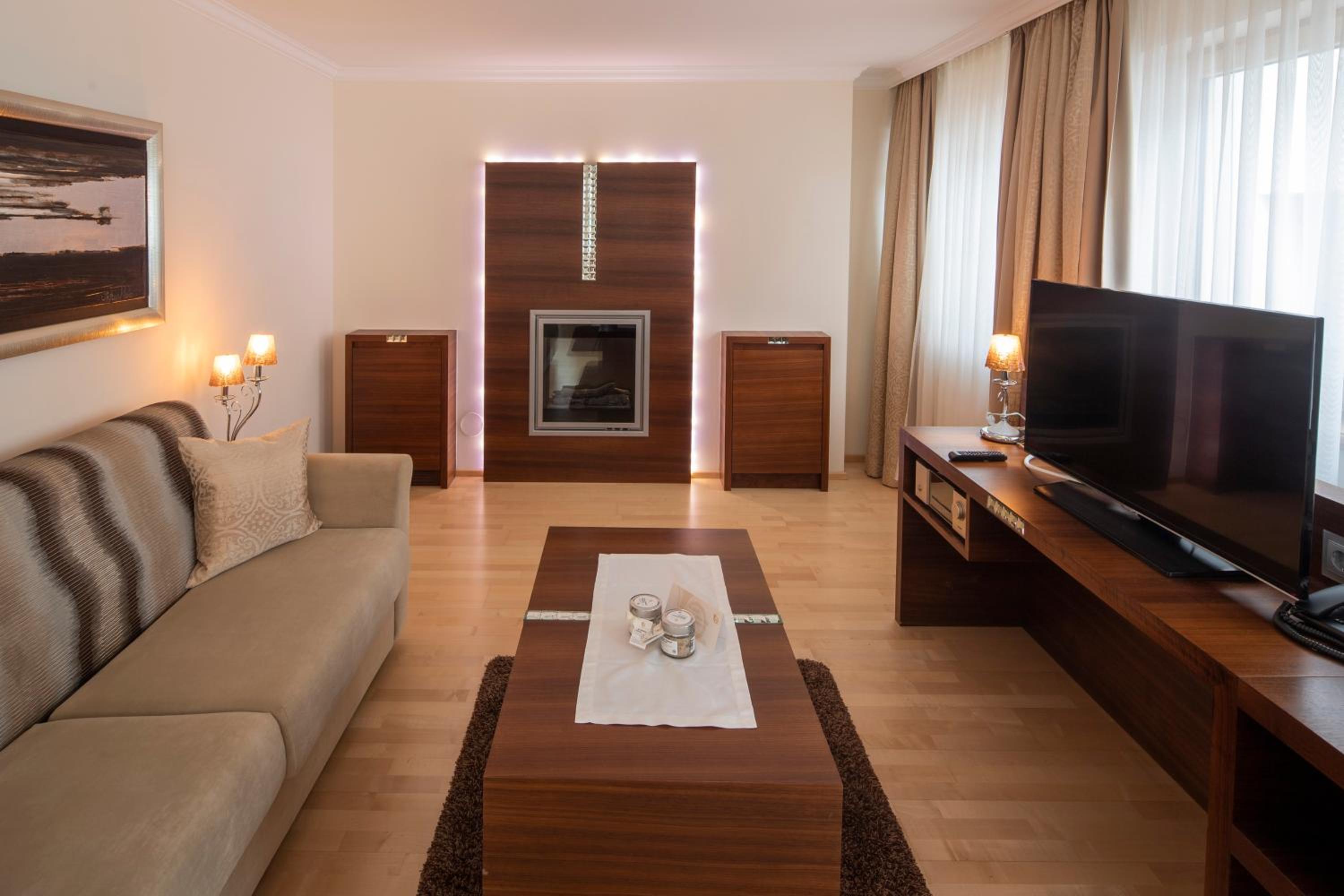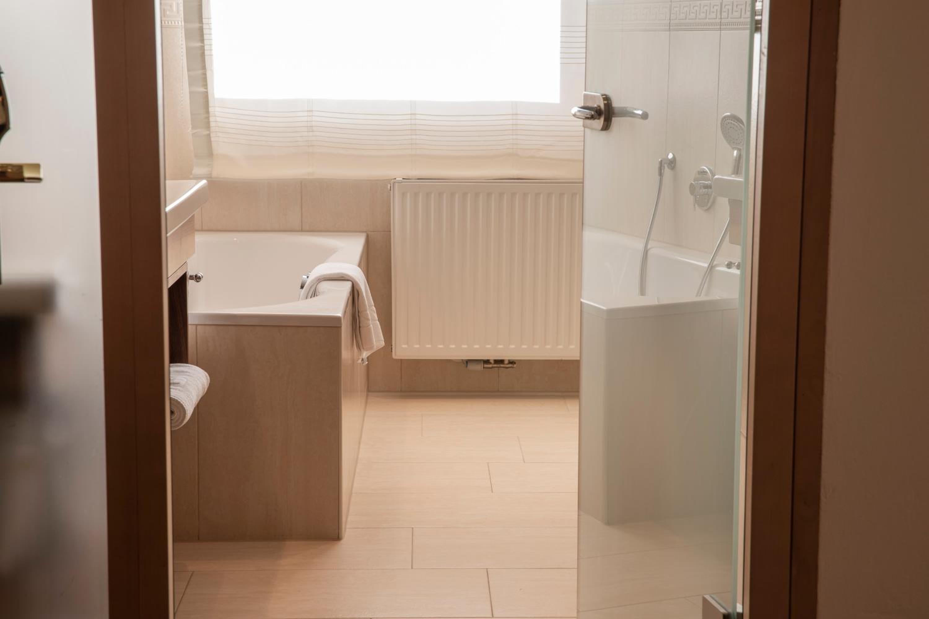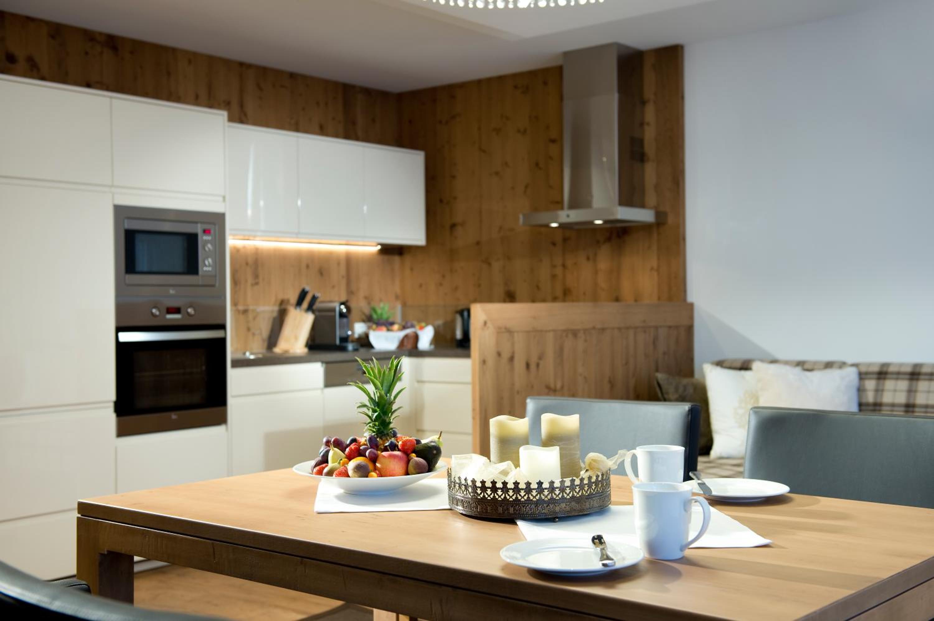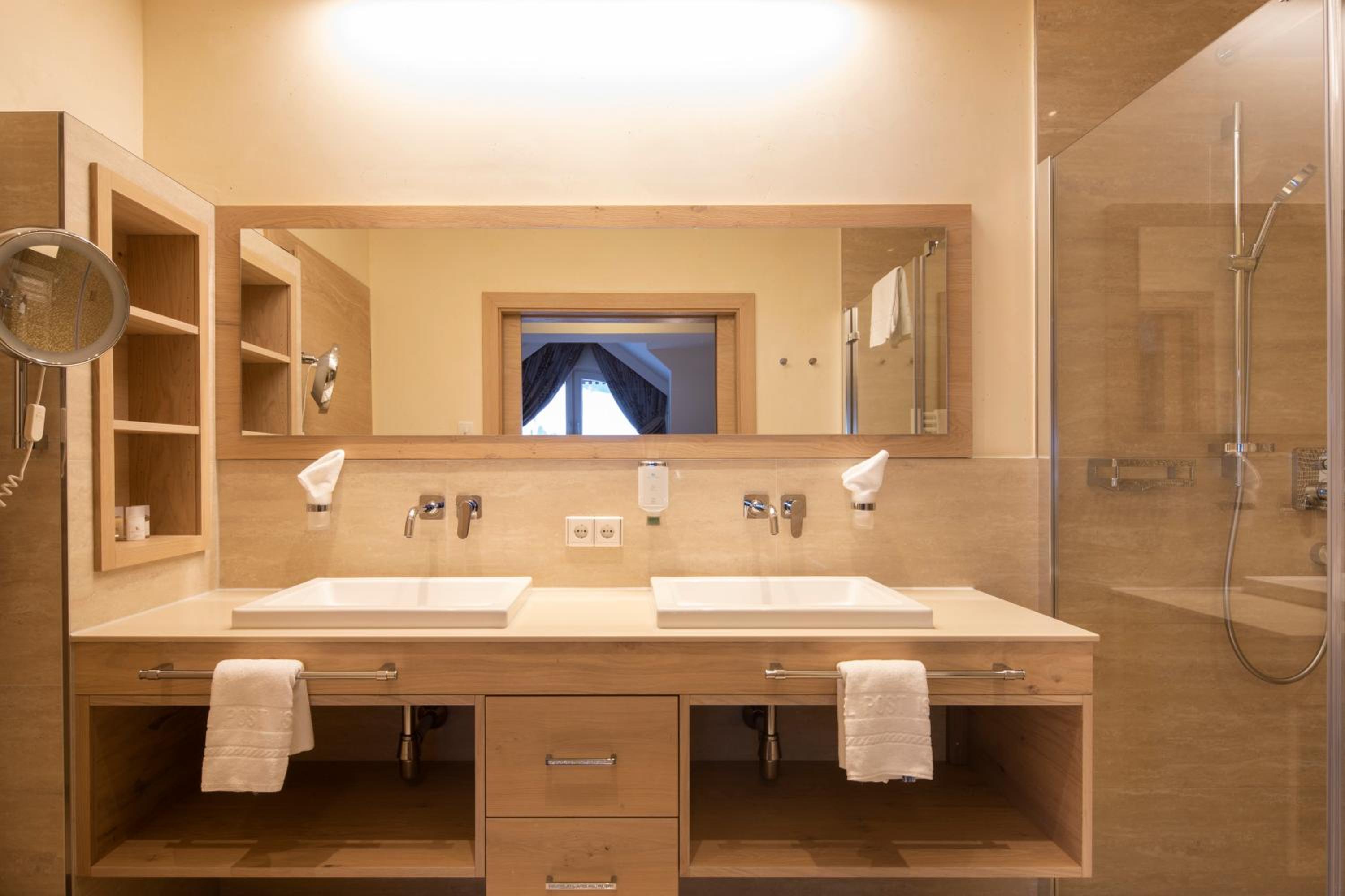 The hotel is conveniently located a few minutes walk from the gondola station. Our room was very spacious and had plenty of storage space. The bed was very comfortable and the room was spotlessly clean. The food in the restaurant was delicious and extremely well presented and all the staff members we met were very friendly, helpful and professional. The hotel bar area was comfortable and a nice area to relax in after skiing! The hotel pool was lovely and the spa area excellent. The ski/boot room was also of a very high standard and ski passes can be bought at the hotel reception. Ski equipment can be hired at Brundl Sports, opposite the hotel. The hotel even has its own ski guide!