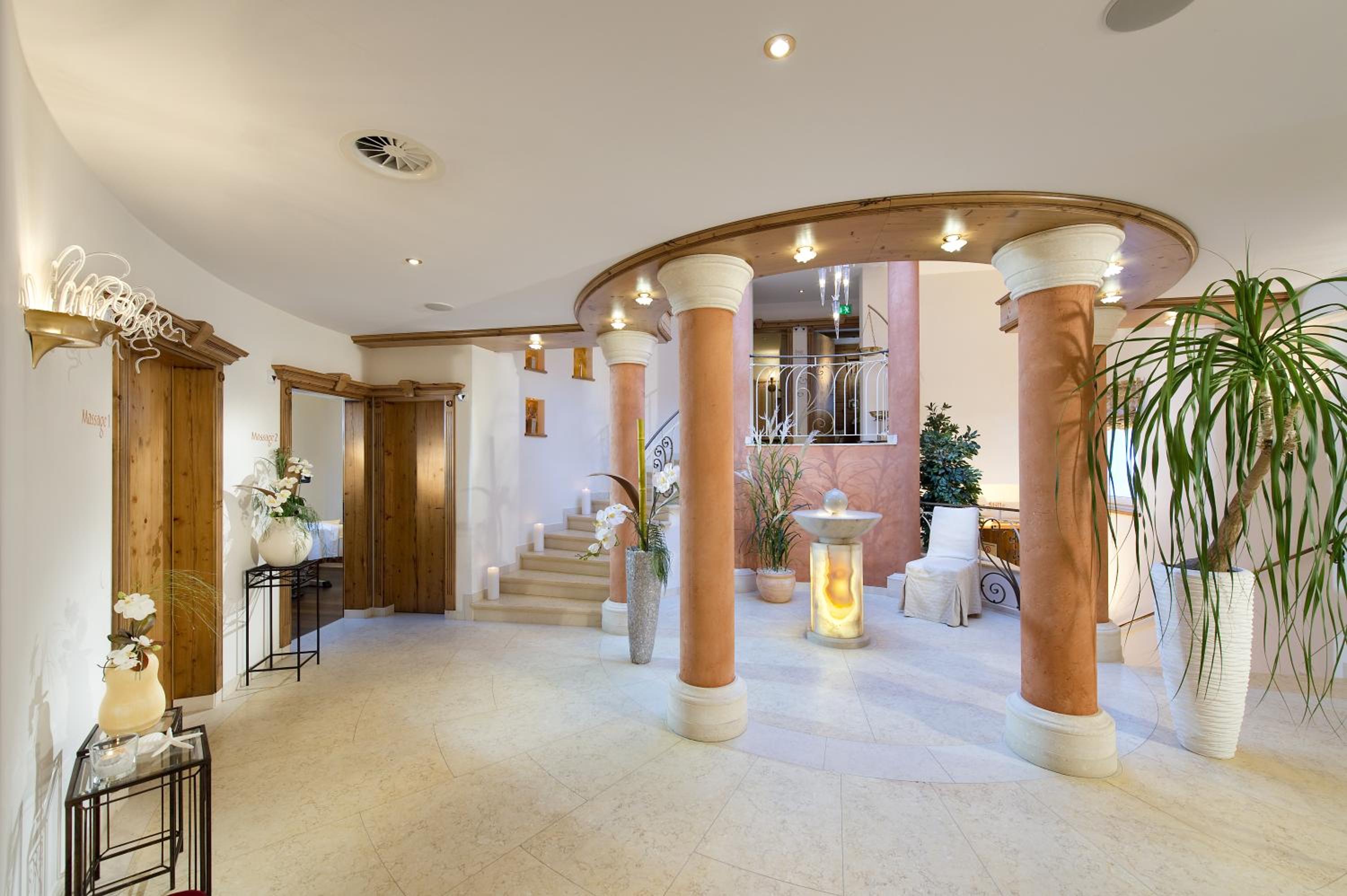 Indulge in relaxation at Hotel Post's 1500m² spa area with saunas, a gym, and massage benches. The indoor pool's whitewater canal and waterfall offer a unique experience.