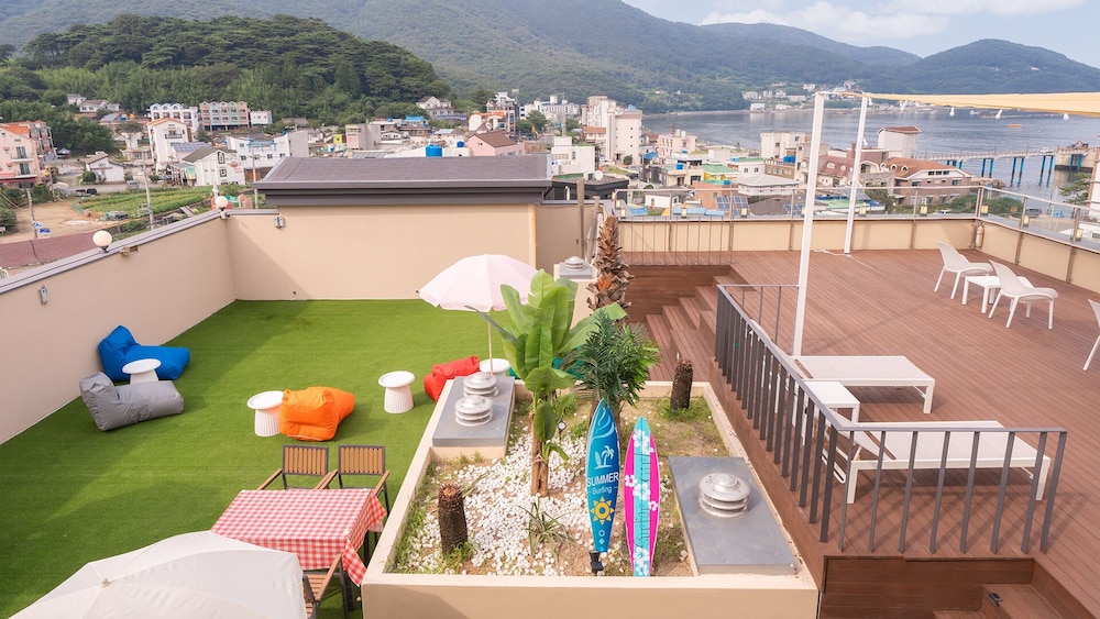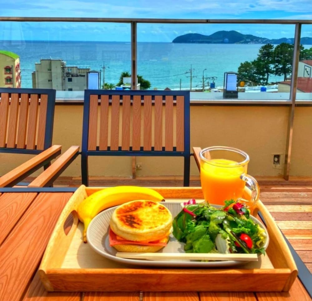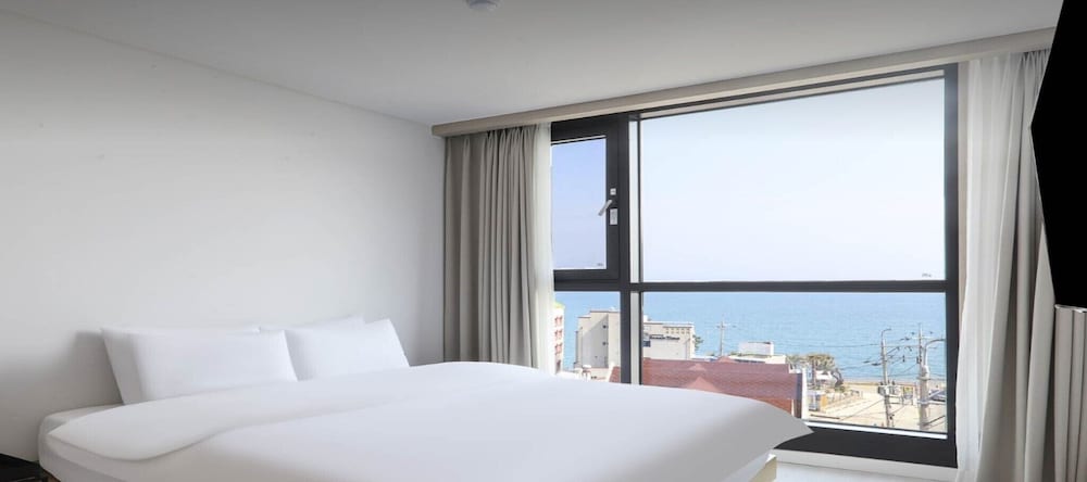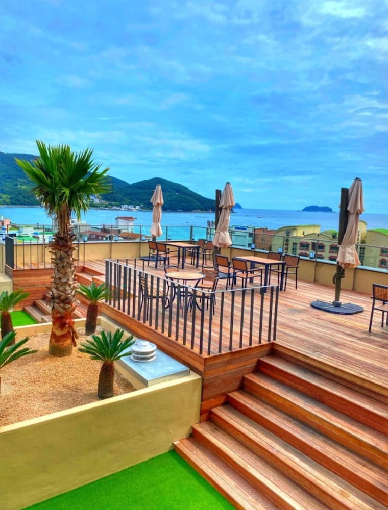 루프탑 사방으로 보이는 오션뷰에 감탄했고 침구컨디션도 깨끗하고 방도 너무 깔끔했습니다 몽돌해변앞 이라 휴식과 산책을 즐기기 넘 좋았습니다