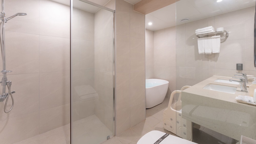 객실이 넓고 청결하며, 모던한 인테리어가 돋보였습니다