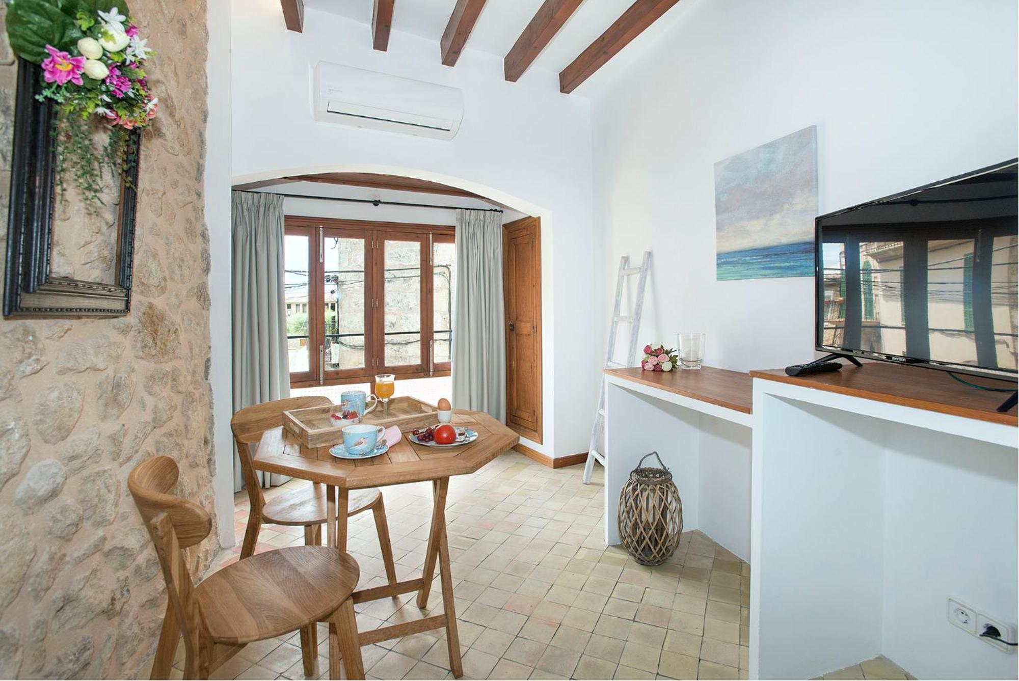 The property was just like the images which I appreciate and that the courtyard and dining areas were amazing. The rooms were cute and well taken care of with a very lovely staff member Pedro who took wonderful care for me and my friends hiking the GR221. Additionally, he provided us with a coffee shop (Cycling Place) at our destination in Alaró. Also, ran into Pedro again in Alaró the next morning while finishing our route from the Castelle d’Alaró while he was walking to his other Hotel/Hostel he runs with his family. Definitely am going to return with my family soon.
